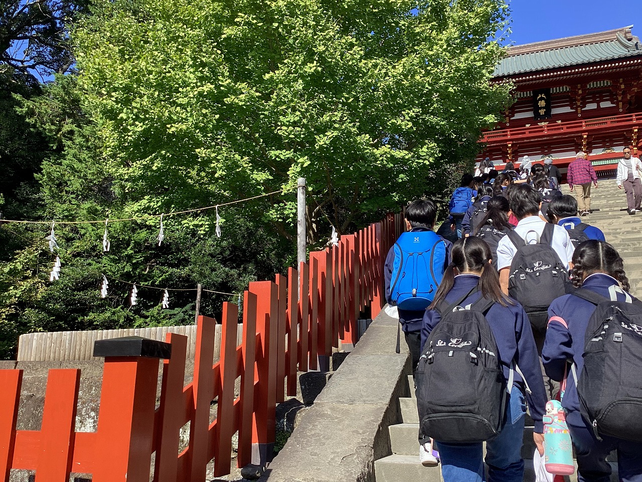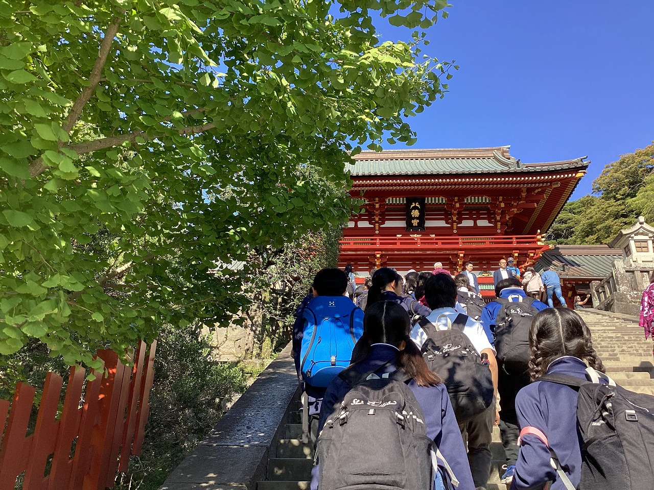 6年生は社会科の学習の一環で、鎌倉に行きました。授業で学んだ鎌倉の切通しを実際に歩いたり、七里ヶ浜で海を見たりして、鎌倉幕府が置かれた場所の様子を肌で感じるこことができました。また、鎌倉の大仏や鶴岡八幡宮を参拝したり、江ノ電に乗ったりして、神奈川県の名所を見学することもできました。