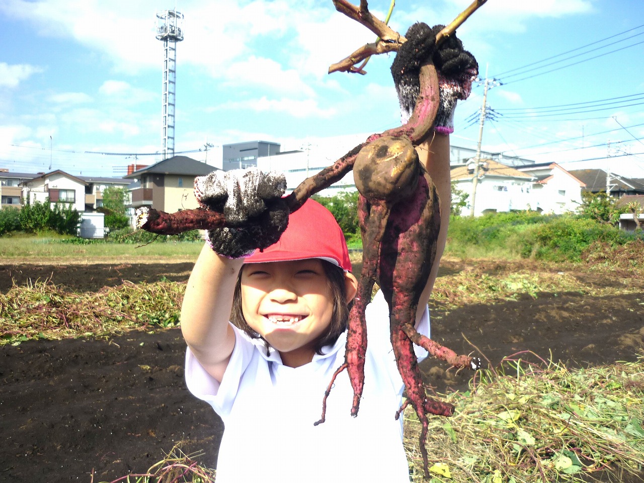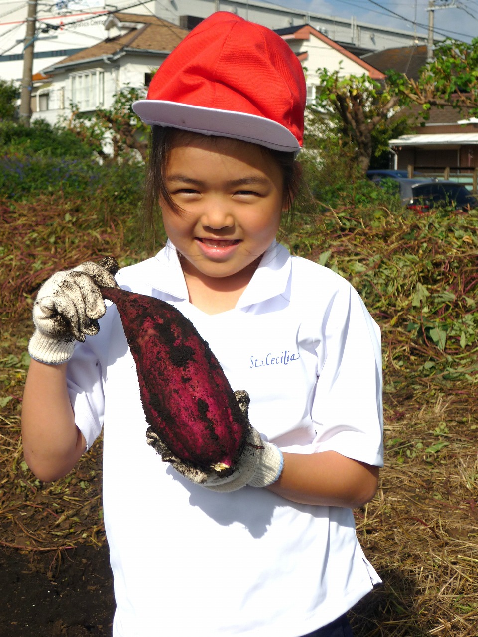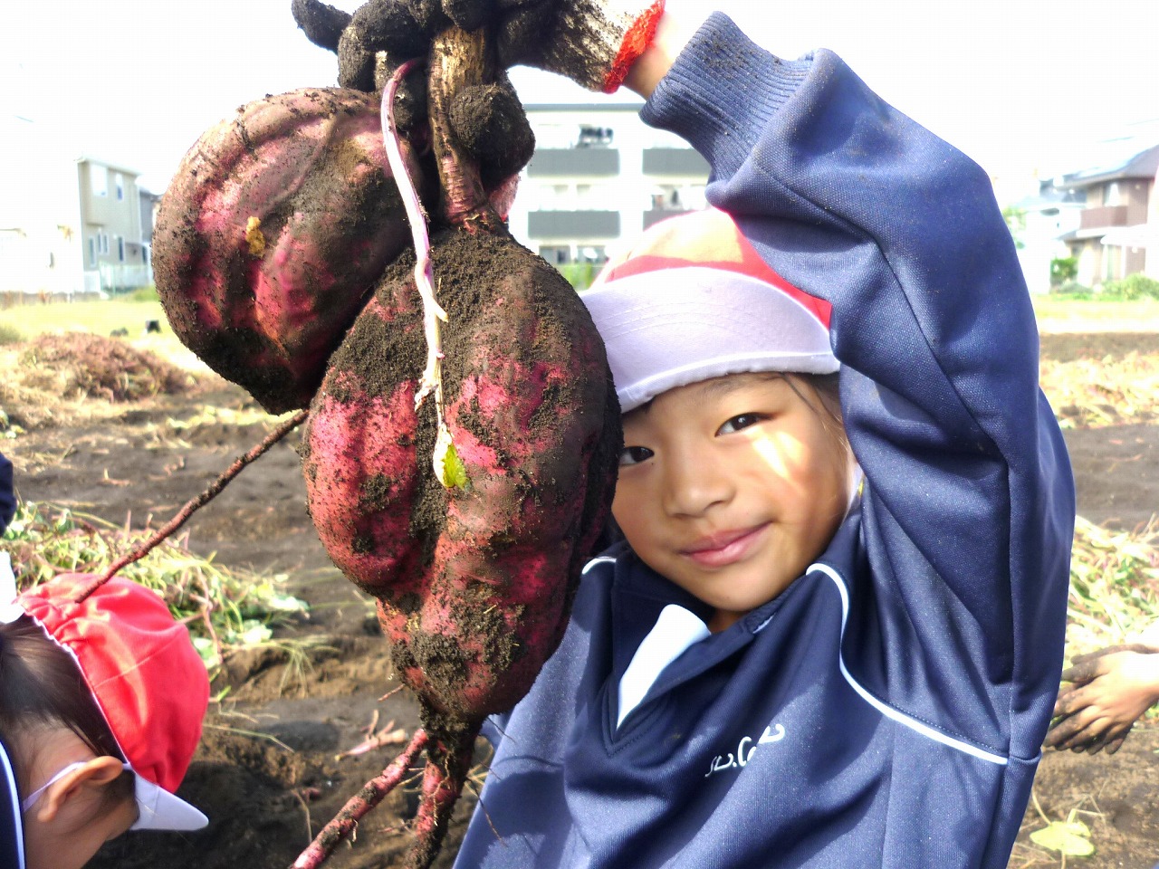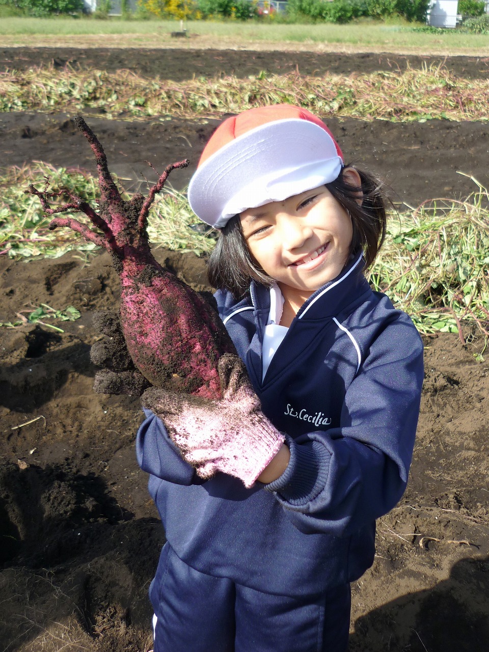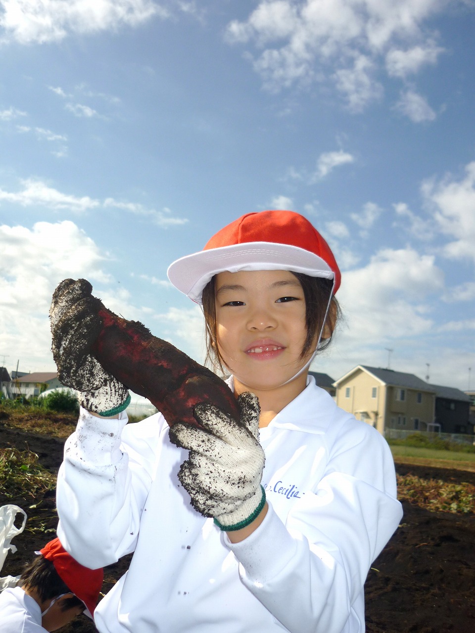 1年生は生活科の学習で「おいもほり」に行きました。農家の方から、さつまいも作りについてのお話をうかがった後、実際に自分の手でおいもを掘り起こしました。今年は、びっくりするほど大きなおいもが出てきたり、目を見開くほど小さなおいもが出てきたりと、おいもの大きさにも個性があふれていました。「わあ、大きい~」「かわいい~」など、掘り出すたびに、子どもたちの驚きの声があがっていました。収穫の喜びを味わえる体験となりました。