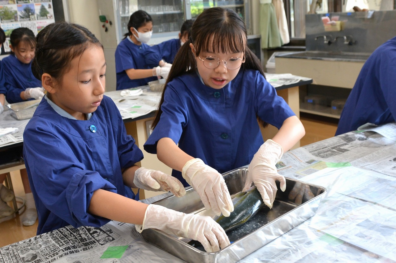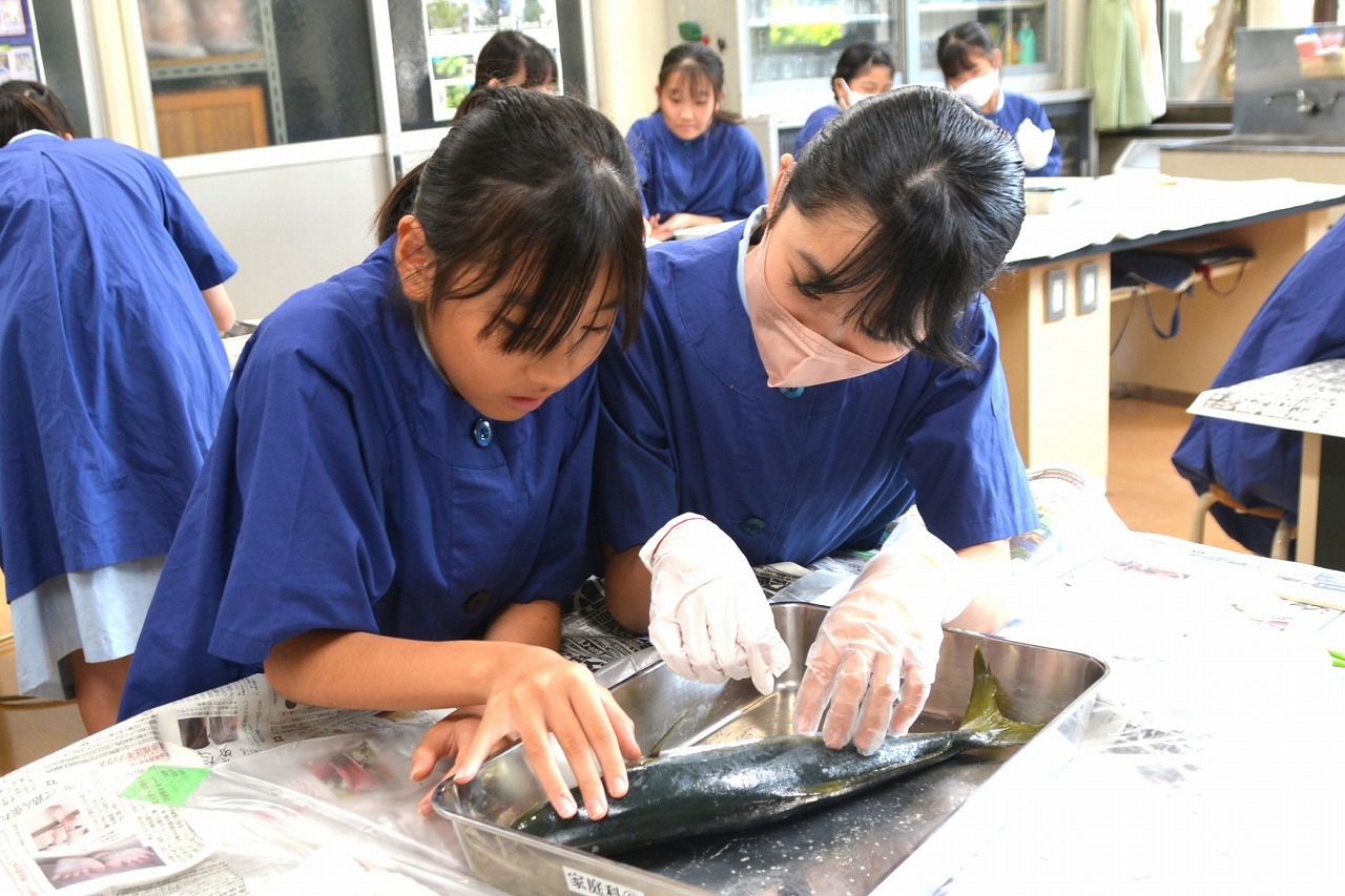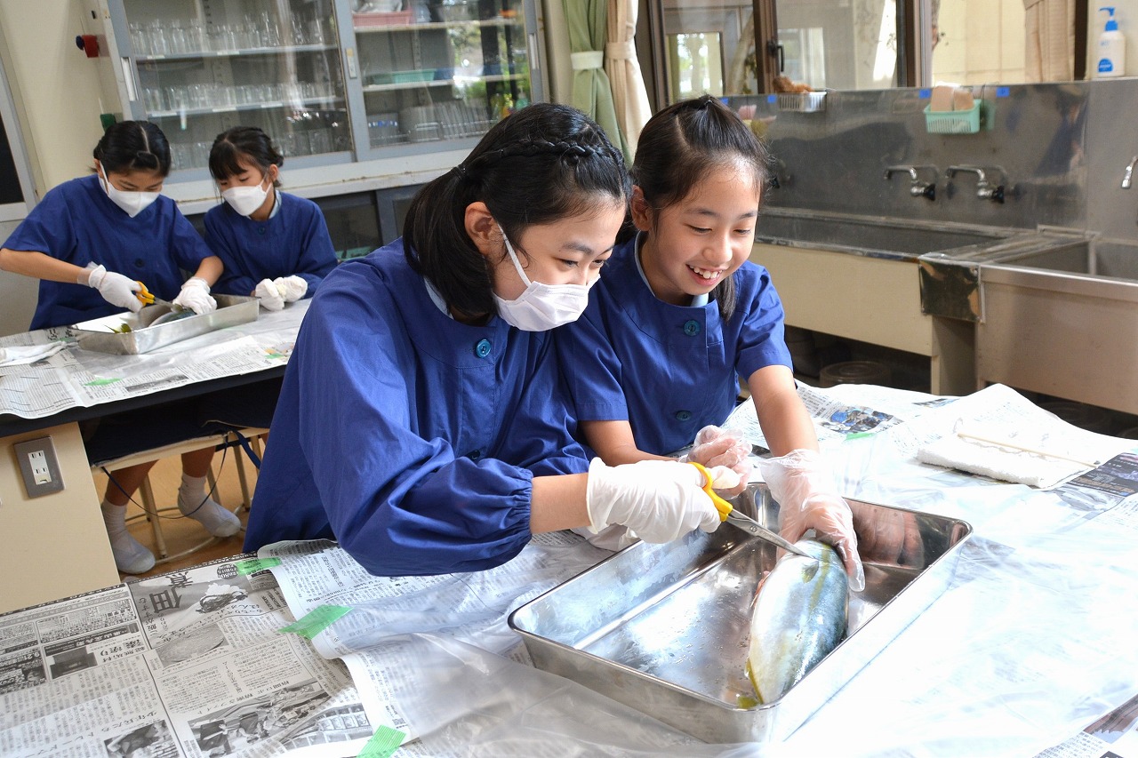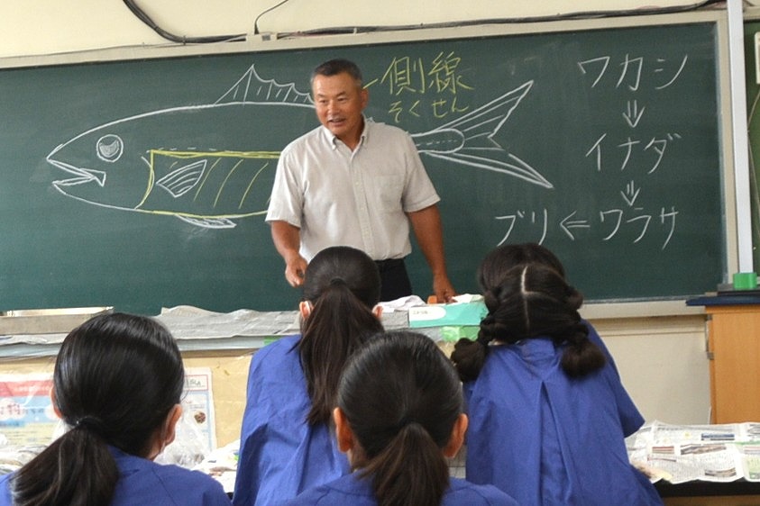 今年も6年生が、校長先生の名物授業を受けました。その授業とは、校長先生が自ら船に乗って釣ってきた「イナダ」を使って行う「魚の観察」です。