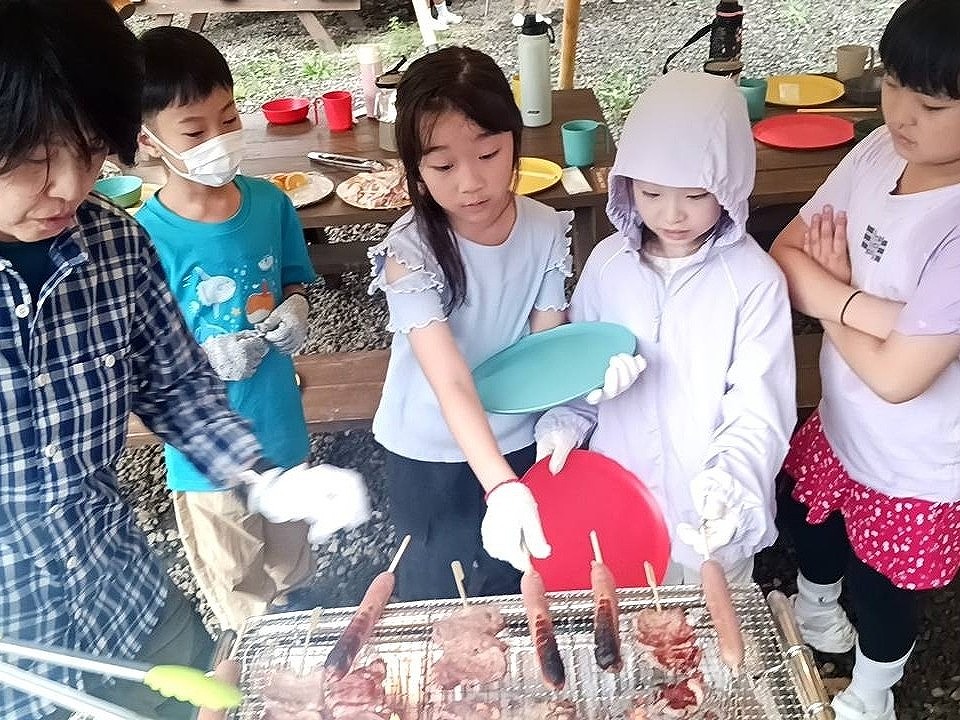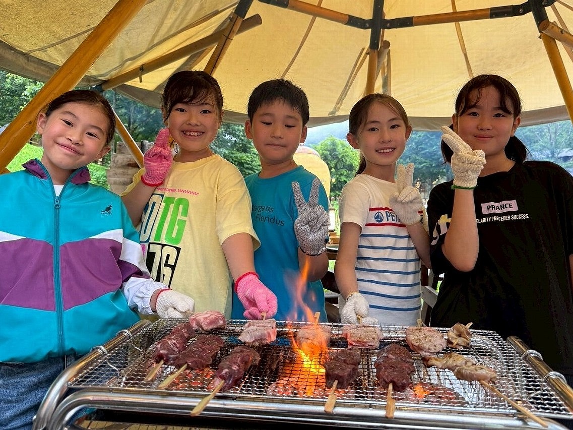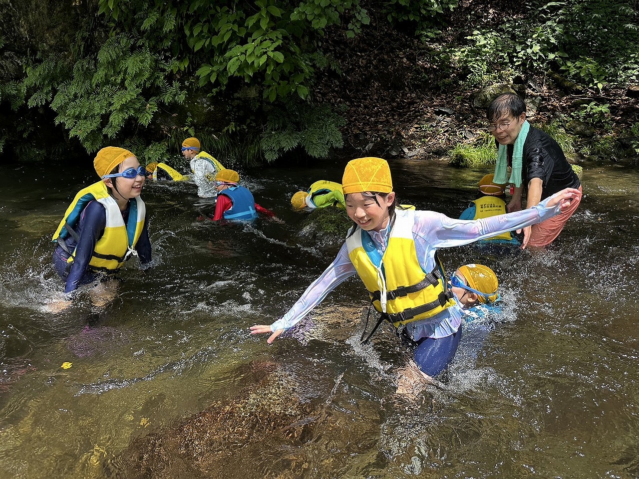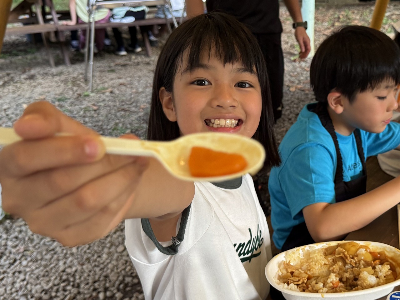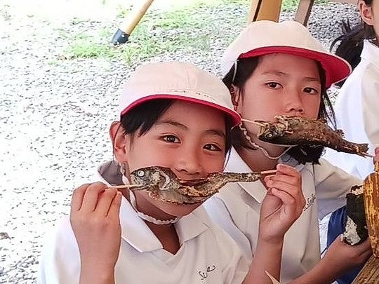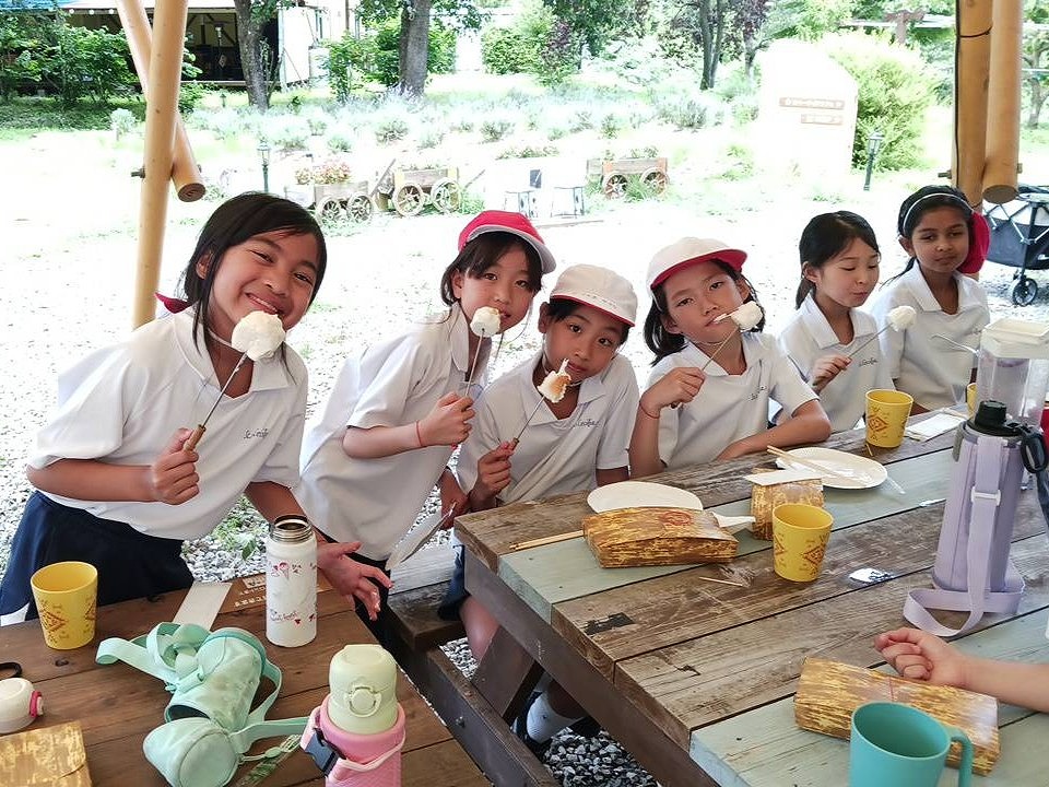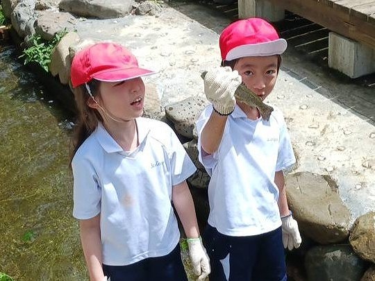 3年生はOutdoor School、4年生はNature Campをそれぞれ2泊3日で実施しました。川では、水遊びはもちろんのこと、天然のウォータースライダーや沢登りにもチャレンジしました。また、オタマジャクシやヤゴ、川虫などの生き物探しをしたり、ヤマメやアユ、ハヤなどを釣ったりと、清流ならではの貴重な体験も楽しみました。自分の手で捕まえたニジマスを自分の手でさばき、マッチを使って、火をおこし、塩焼きにしておいしくいただいたり、夕食のバーベキューやカレーライス、朝食のホットサンドやベーコンエッグマフィンなども、自分たちの手で作ったりするなどの体験も行いました。その他、昆虫採集や暗闇体験、スイカ割り、キャンプファイアー、花火など、子どもたちの五感をフルに刺激する3日間でした。