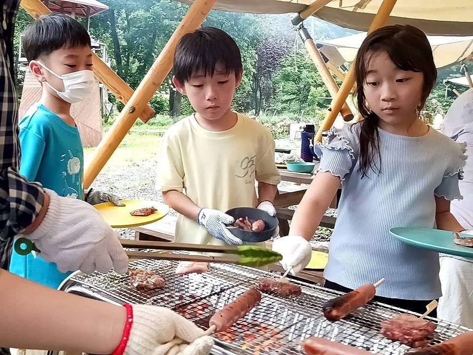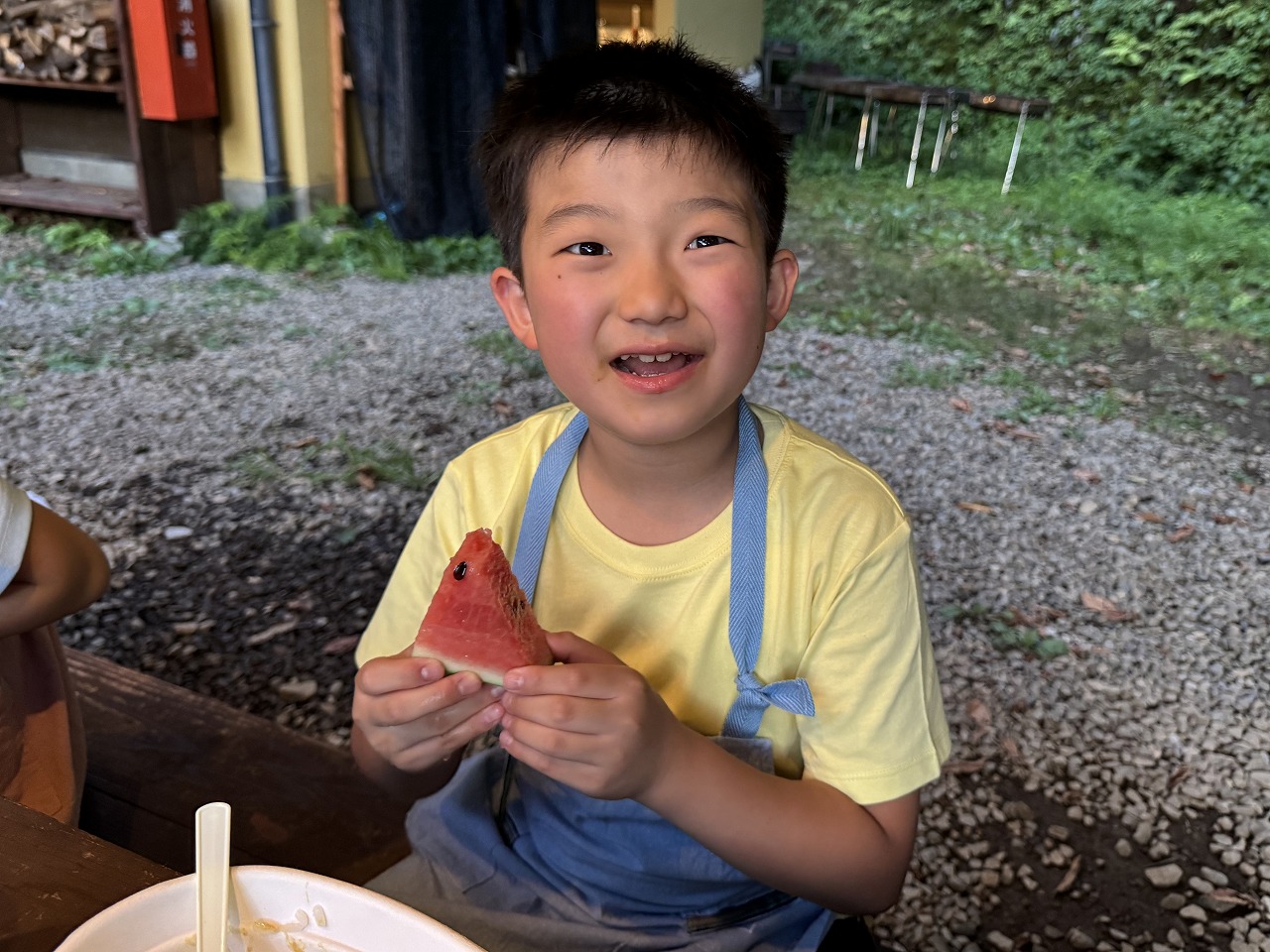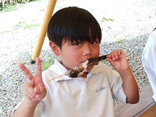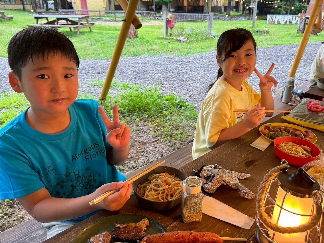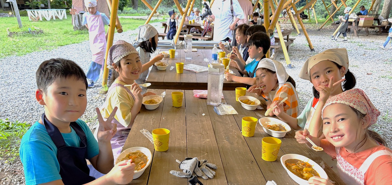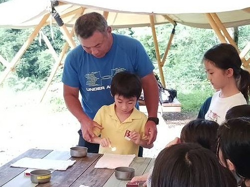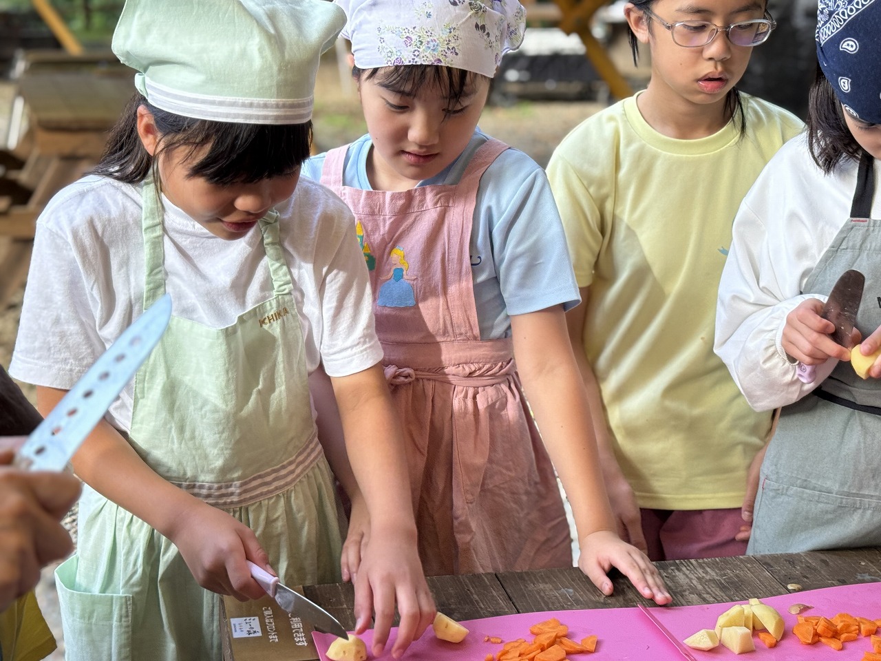 3年生はOutdoor School、4年生はNature Campをそれぞれ2泊3日で実施しました。川では、水遊びはもちろんのこと、天然のウォータースライダーや沢登りにもチャレンジしました。また、オタマジャクシやヤゴ、川虫などの生き物探しをしたり、ヤマメやアユ、ハヤなどを釣ったりと、清流ならではの貴重な体験も楽しみました。自分の手で捕まえたニジマスを自分の手でさばき、マッチを使って、火をおこし、塩焼きにしておいしくいただいたり、夕食のバーベキューやカレーライス、朝食のホットサンドやベーコンエッグマフィンなども、自分たちの手で作ったりするなどの体験も行いました。その他、昆虫採集や暗闇体験、スイカ割り、キャンプファイアー、花火など、子どもたちの五感をフルに刺激する3日間でした。