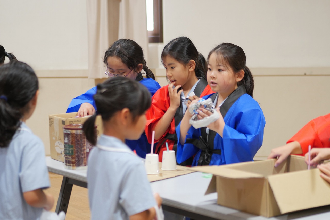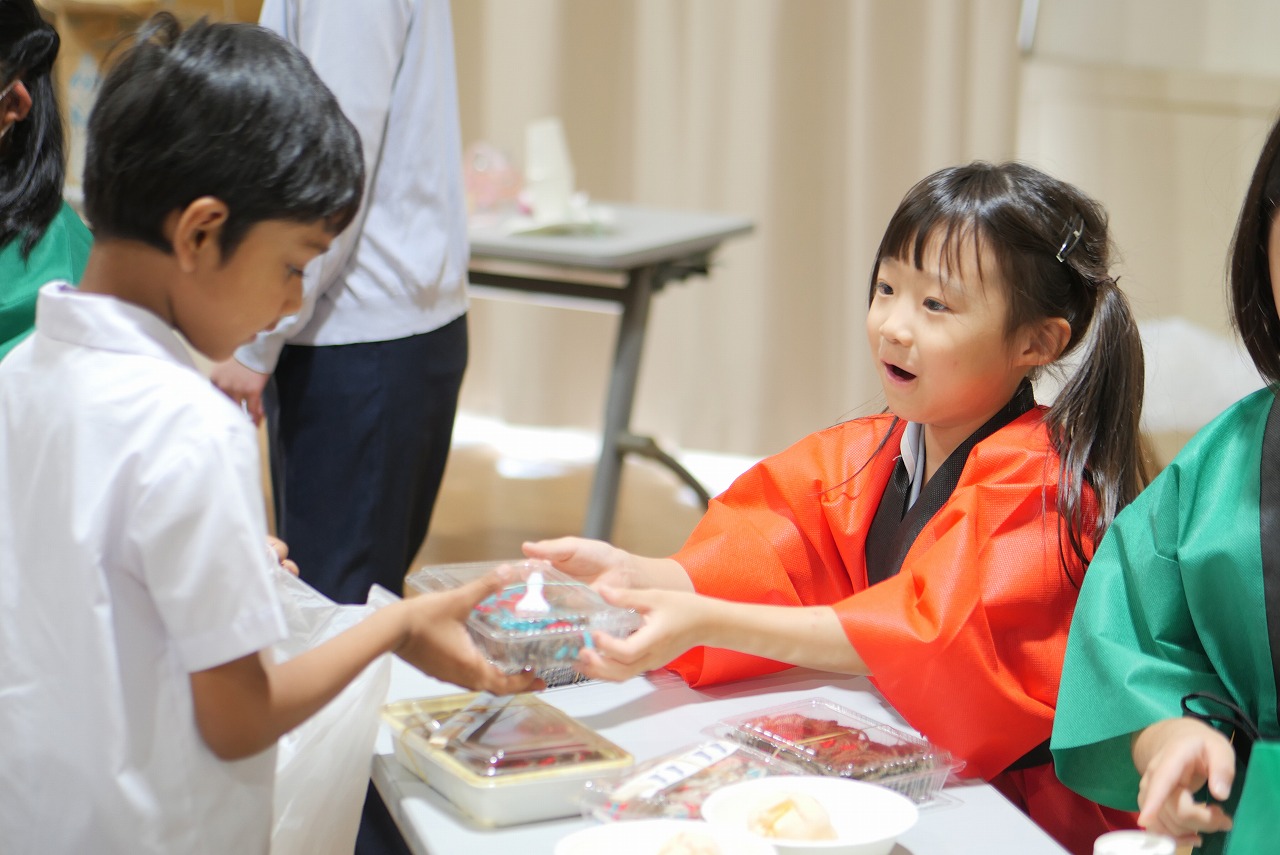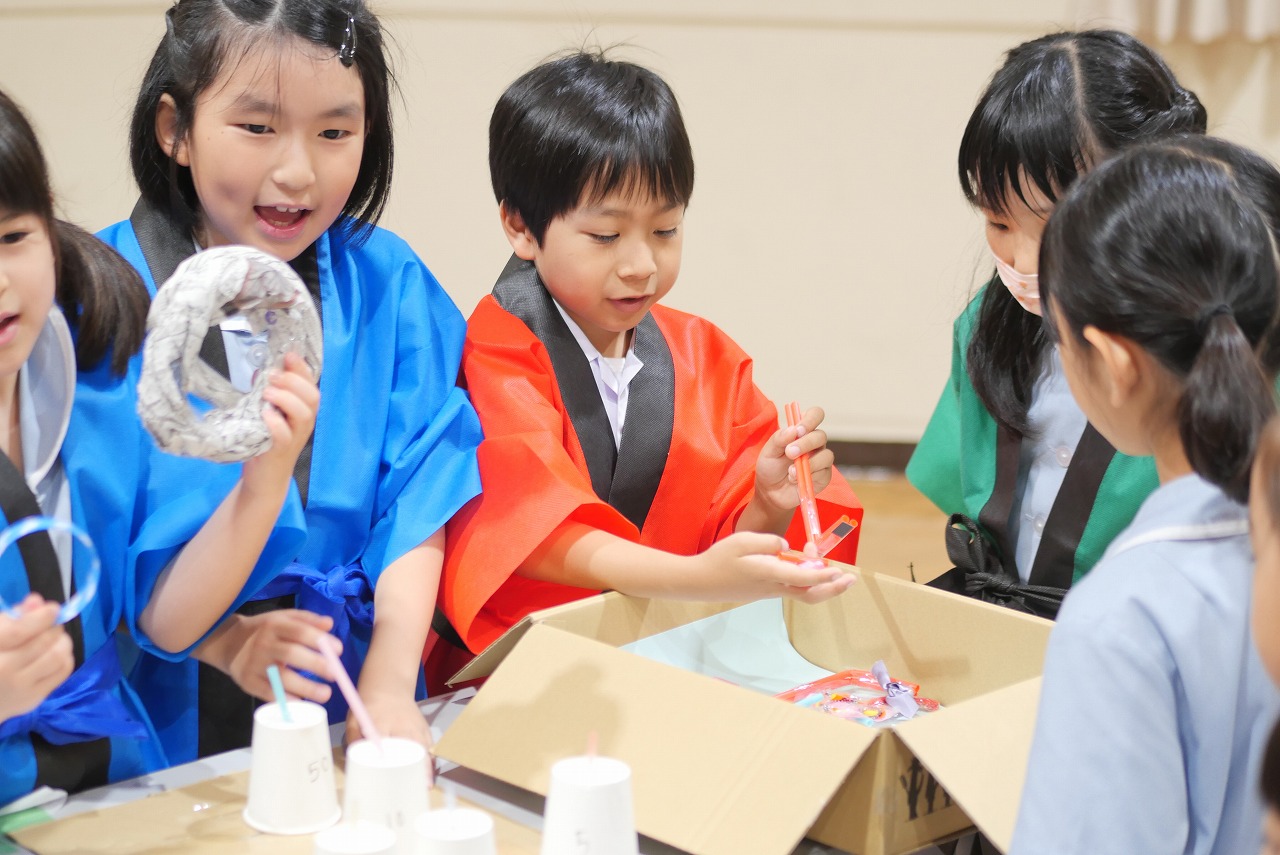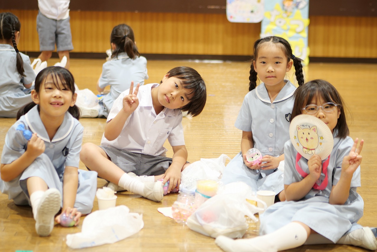 2年生が1年生を招待して、「夏まつり」を実施しました。当日は、みんなで一緒にソーラン節を踊ったり、2年生が準備したお店でお買い物をしたり、ゲーム屋さんで楽しく遊んだりしました。準備はたいへんでしたが、1年生が喜んでくれて、何よりもうれしいごほうびだと感じた2年生たちでした。