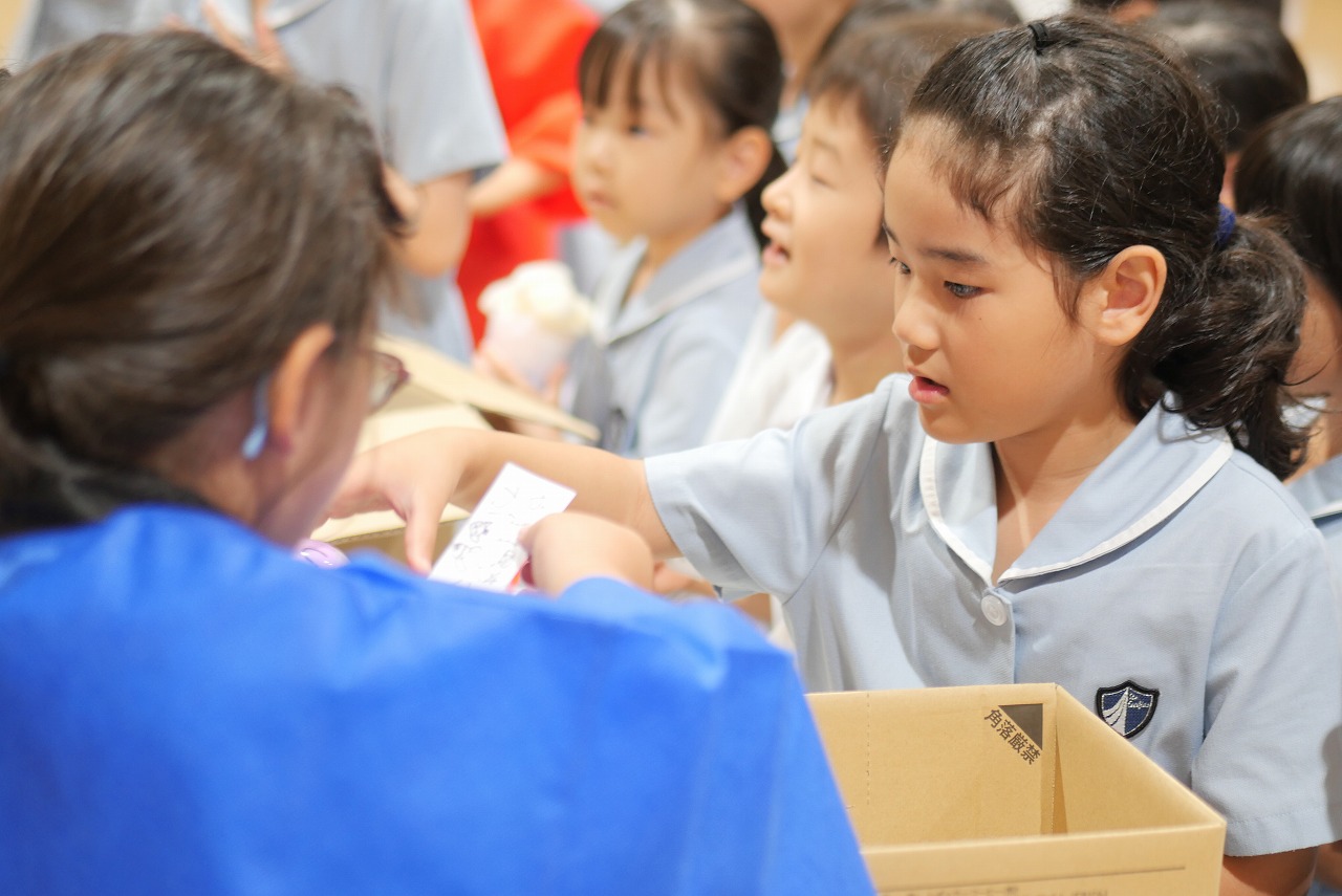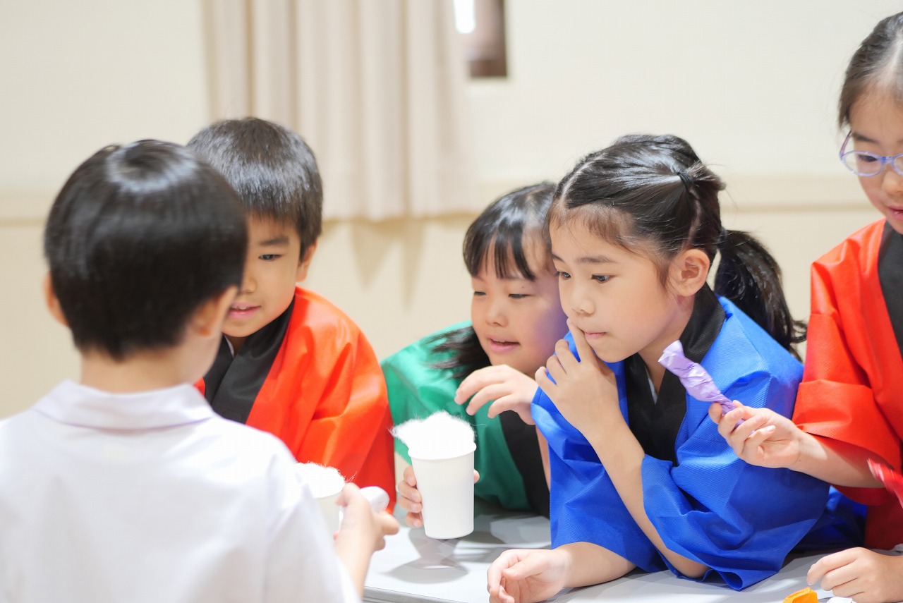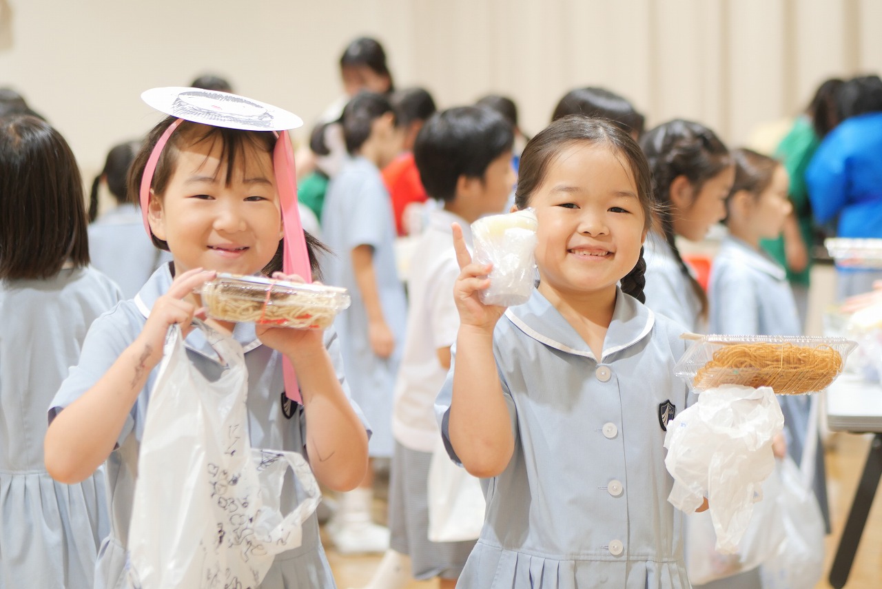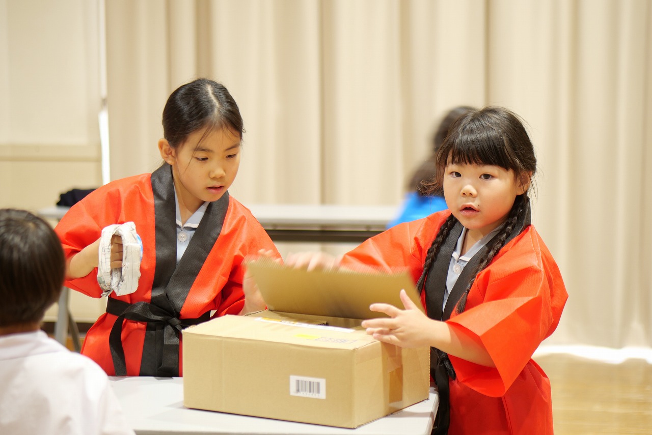 2年生が1年生を招待して、「夏まつり」を実施しました。当日は、みんなで一緒にソーラン節を踊ったり、2年生が準備したお店でお買い物をしたり、ゲーム屋さんで楽しく遊んだりしました。準備はたいへんでしたが、1年生が喜んでくれて、何よりもうれしいごほうびだと感じた2年生たちでした。