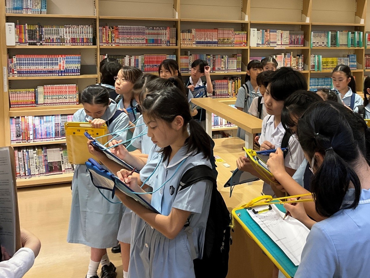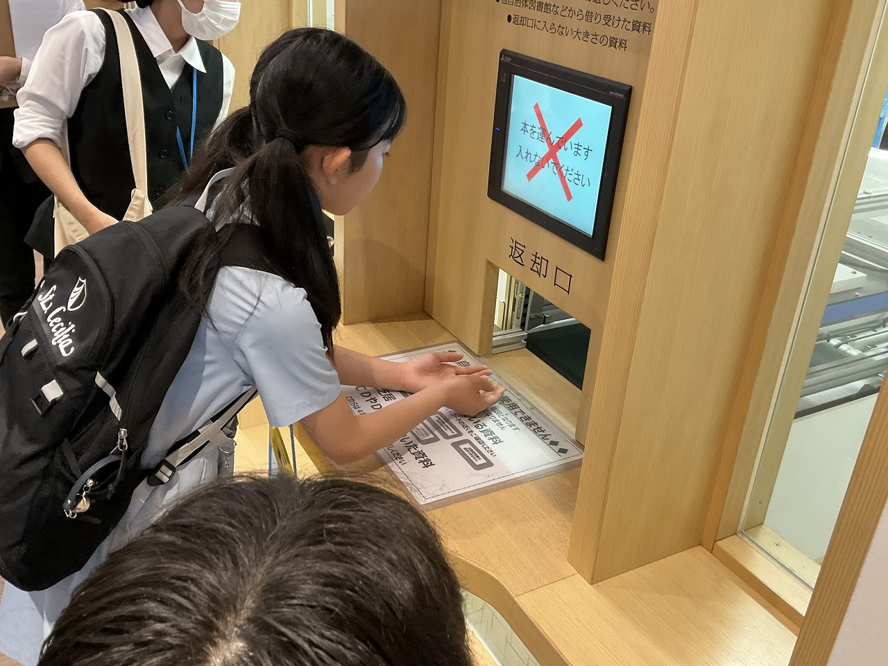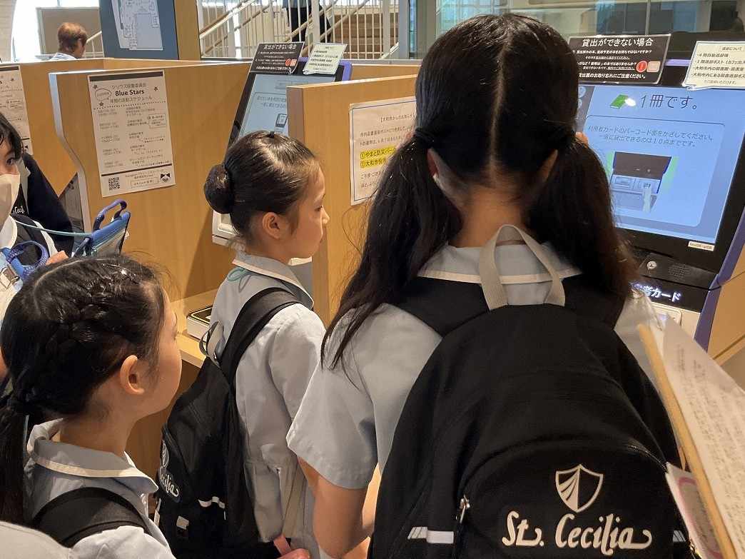 6年生が国語科の学習の一環で、『大和市文化創造拠点シリウス子ども図書館』に行きました。図書館員の方に館内を案内していただき、図書館の利用の仕方を学びました。普段読んでいる文庫や絵本の他に、大型絵本や点字絵本なども見せていただくことができました。自動貸出機や自動返却機、本の除菌機を体験したり、図書館のディスプレイの工夫や、破れてしまった本を特殊なテープを使って修理していることなど、本の貸し出しだけではなく、様々なサービスについても学ぶことができました。