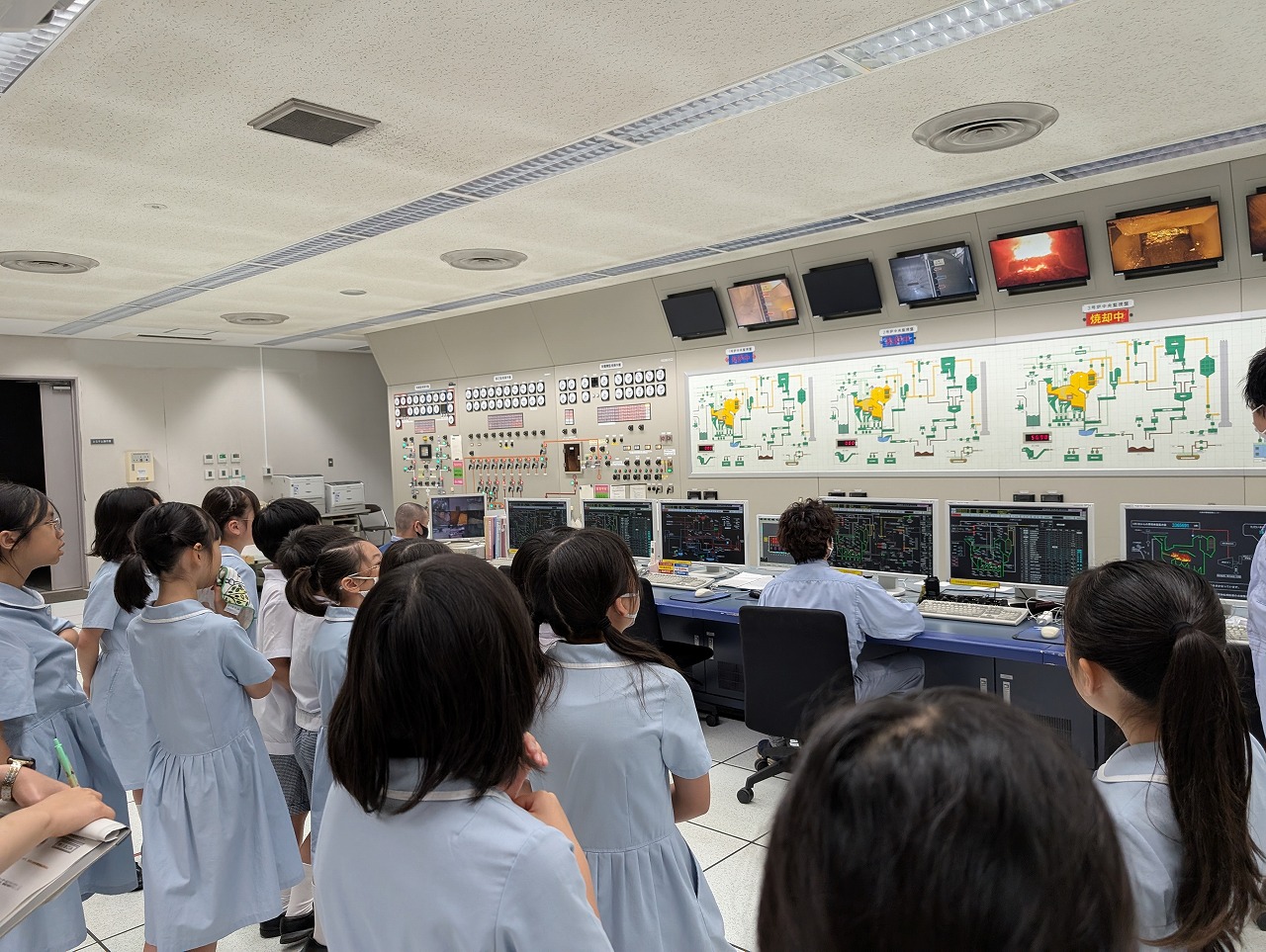 4年生の社会の体験学習の一環で「環境管理センター」への見学に行きました。不燃ごみに紛れ込んだ異物を手で仕分けしている様子や、中央制御室で焼却炉やクレーンが正常に動作していることを確認している様子を見せていただいたりすることで、清掃工場の方々の仕事のことを知り、自分たちにできることを考える機会となりました。大きなごみクレーンで焼却炉にごみを運ぶ様子の見学では、UFOキャッチャーを連想した子どもたちのリクエストの通り、傘のごみをねらってつかんでくださったり、特別にブザーを鳴らしてくださったりして、迫力のある特別な体験に大喜びでした。