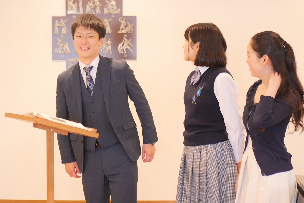 先日の学校説明会では「卒業生によるパネルディスカッション」を行いました。現在は、企業で人事の仕事をしている卒業生と、カナダのトロント大学在学中の卒業生、そして聖セシリア女子中学校・高等学校でコンピュータ部の部長をしている卒業生が、それぞれ、小学校での思い出や小学校で学んだことが現在にどう生かされているかなどを、壇上で生き生きと話してくれました。また、来校のついでに、懐かしい図書室や聖堂なども見て回り、子どものころと変わらない景色を楽しんでいました。