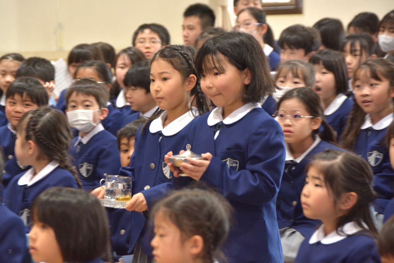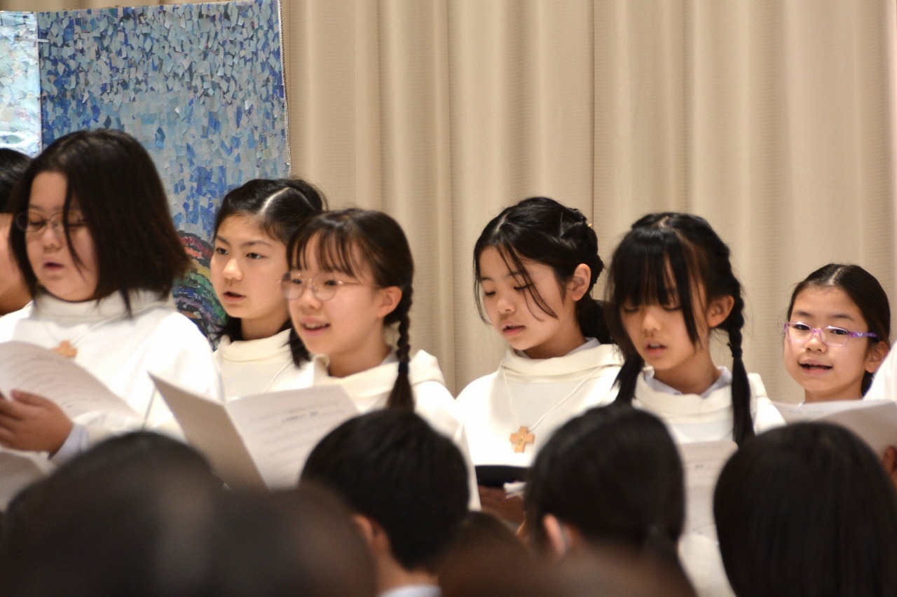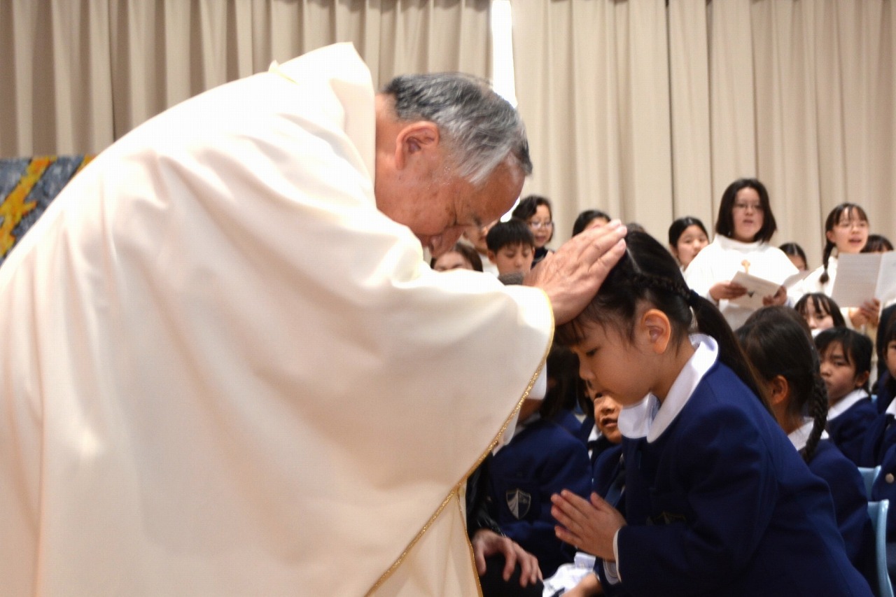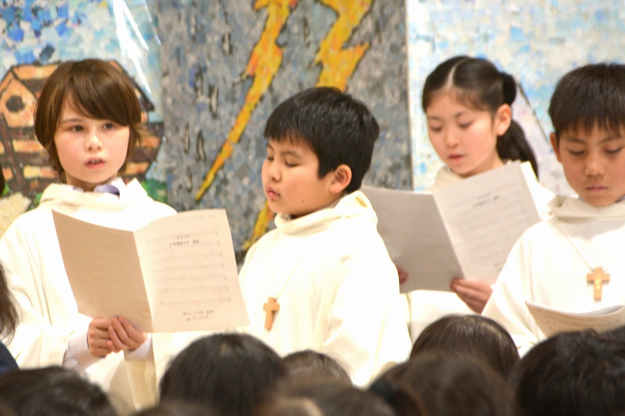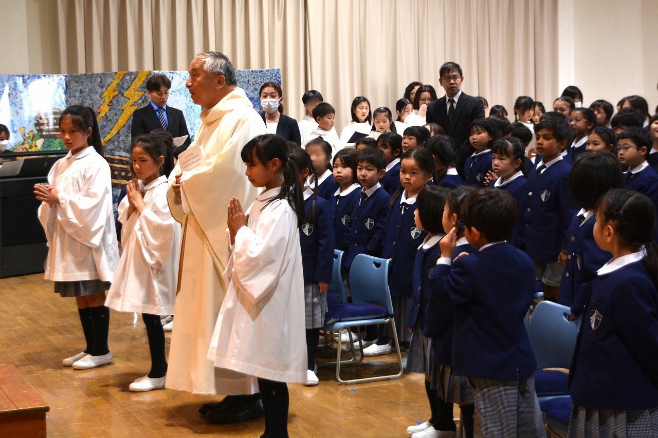 新1年生の入学をお祝いする入学感謝ミサに与りました。新入生を迎え、新しい友達がたくさんできたことに感謝しました。また、新1年生と保護者の方々は、神父様からひとり一人ご祝福もいただきました。