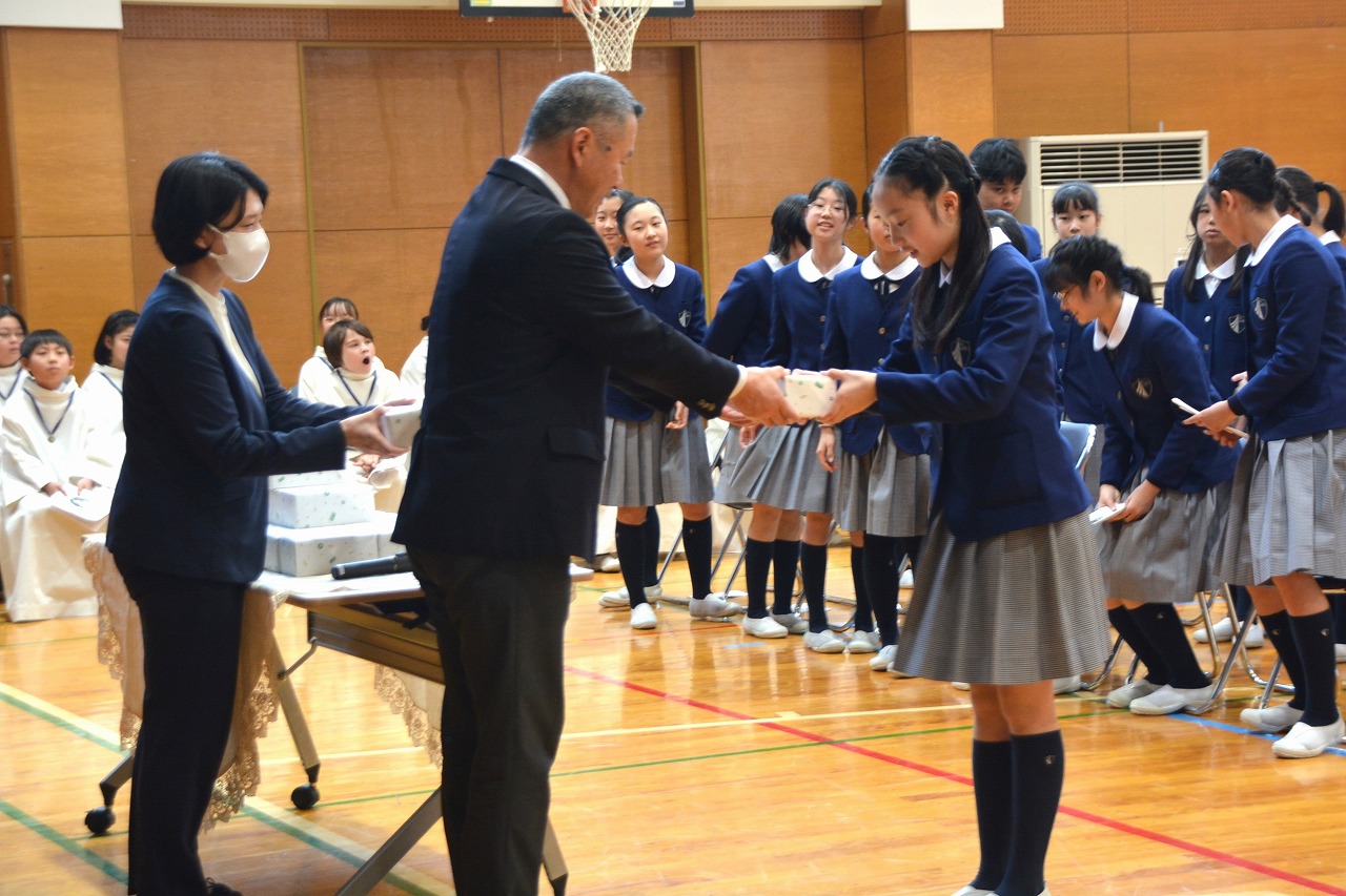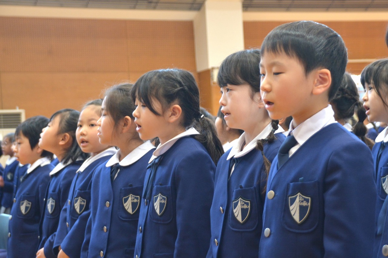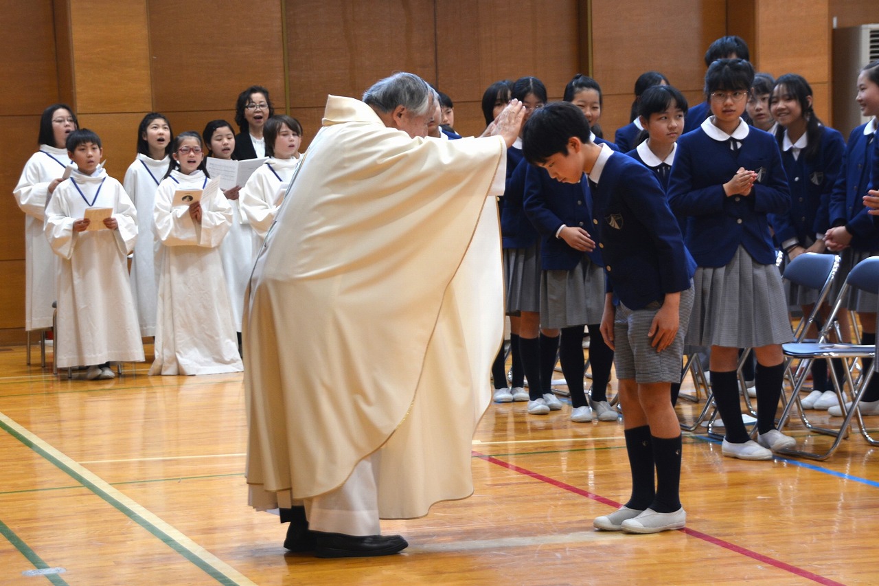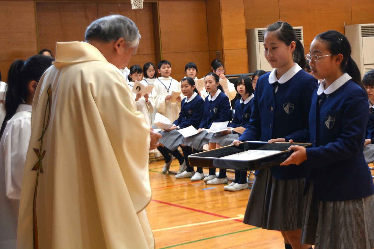 6年生が無事に卒業できることの喜びと、6年間無事に過ごせたことを感謝する気持ちを込めて、卒業感謝ミサに与りました。6年生は、神父様からの祝福を一人ずついただき、校長先生からは卒業記念の品をいただきました。そして、感謝の気持ちを歌に込めて伝えました。