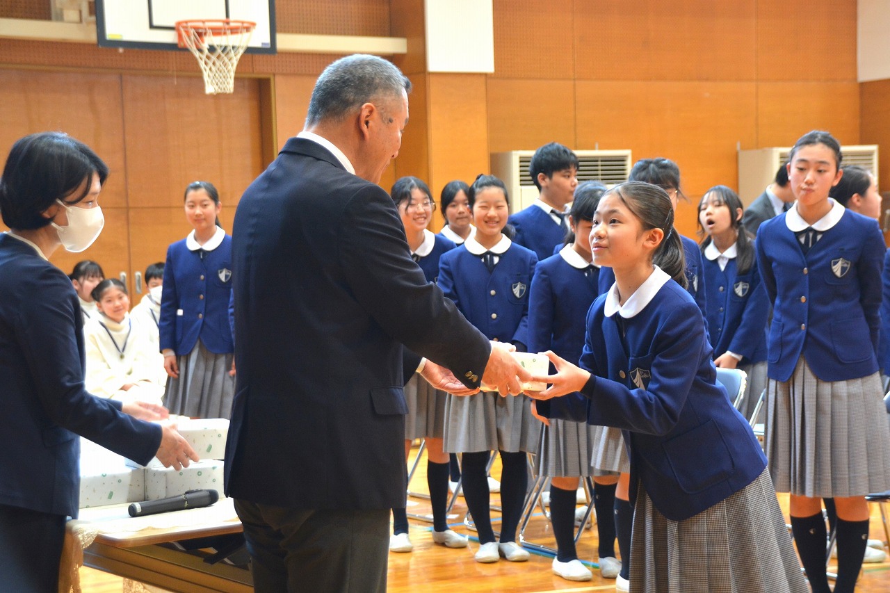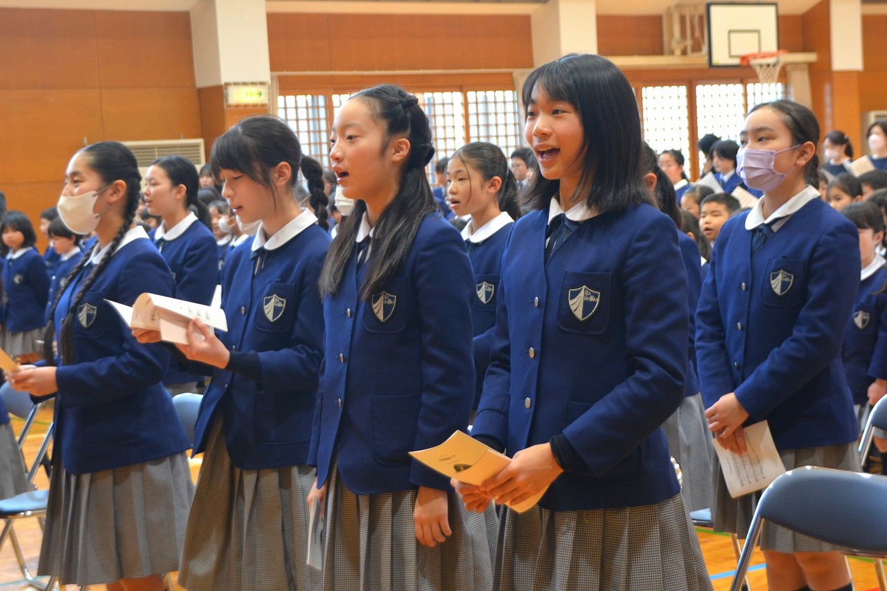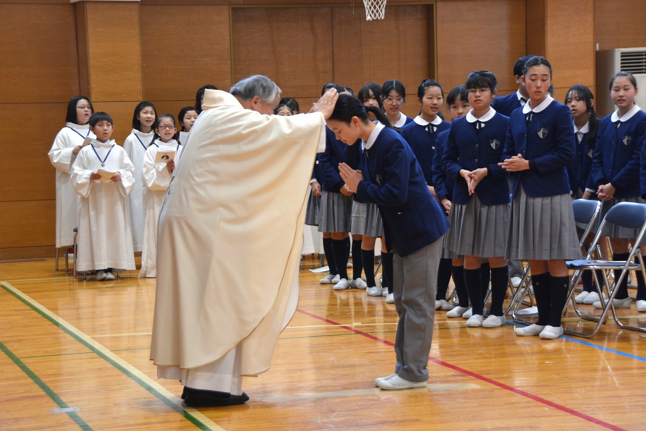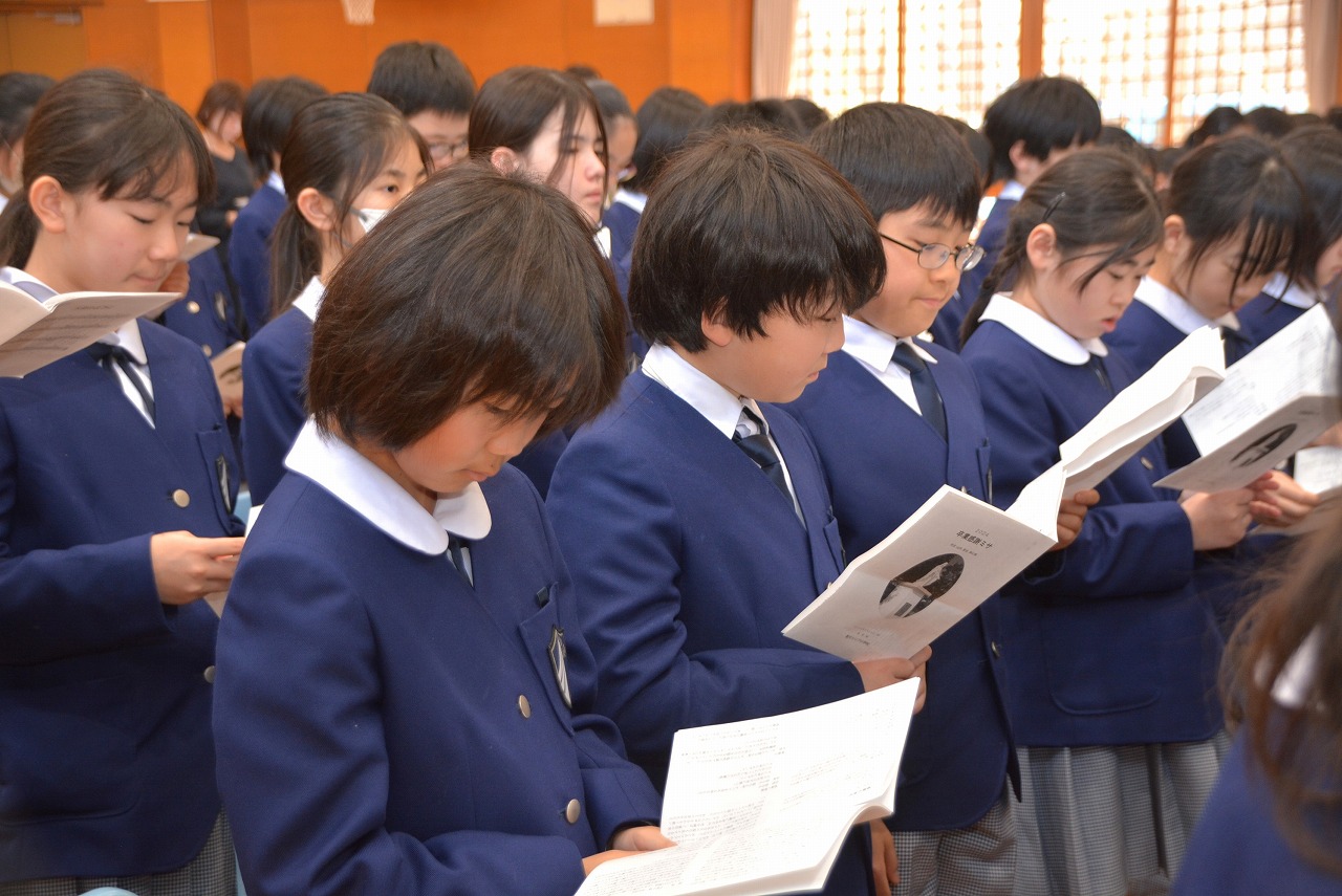 6年生が無事に卒業できることの喜びと、6年間無事に過ごせたことを感謝する気持ちを込めて、卒業感謝ミサに与りました。6年生は、神父様からの祝福を一人ずついただき、校長先生からは卒業記念の品をいただきました。そして、感謝の気持ちを歌に込めて伝えました。