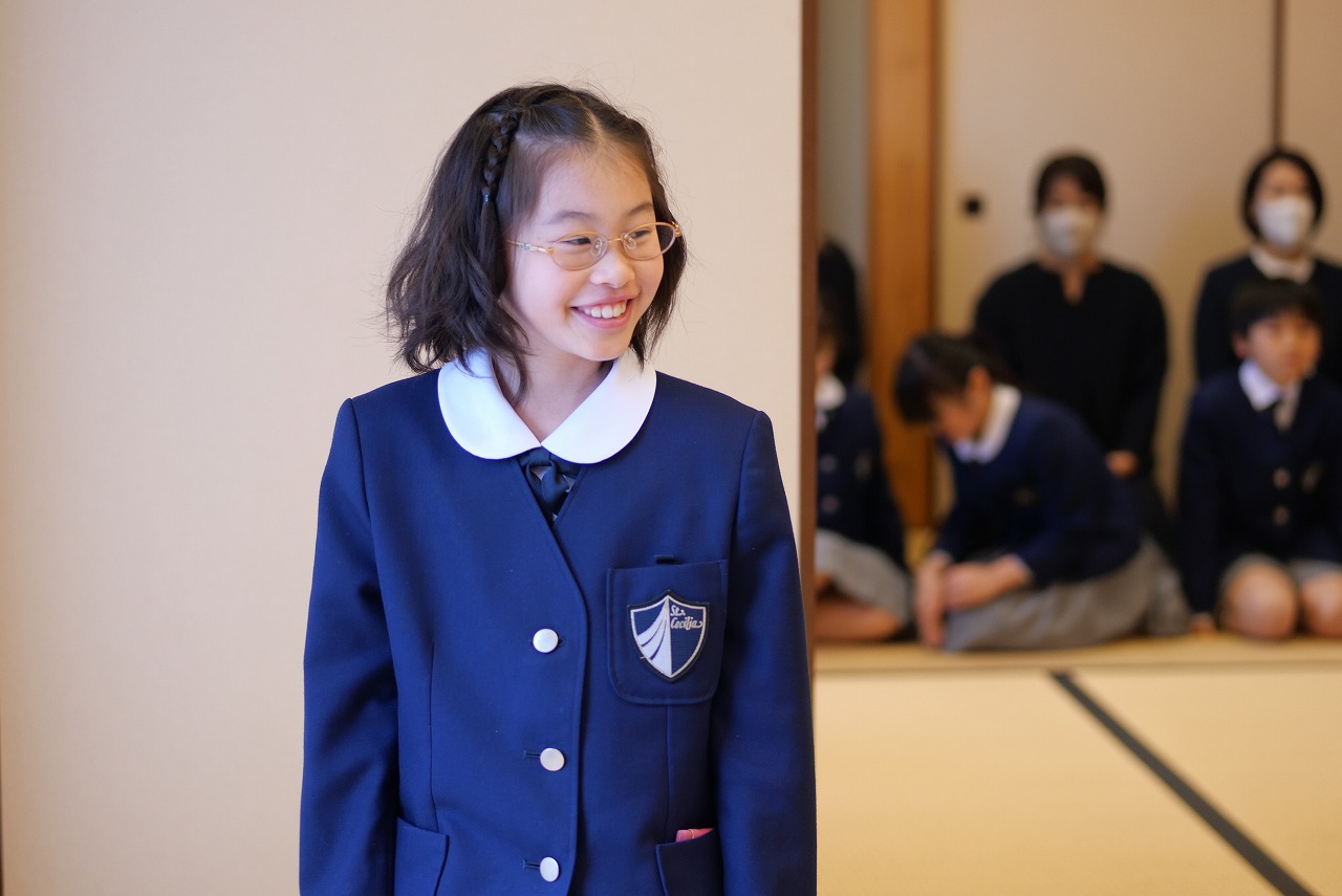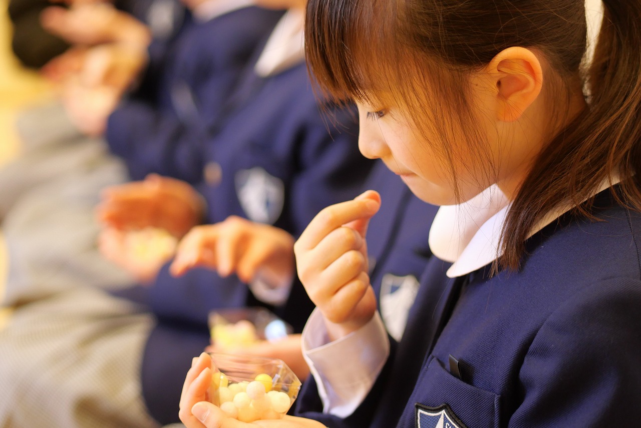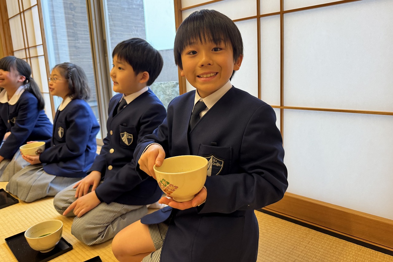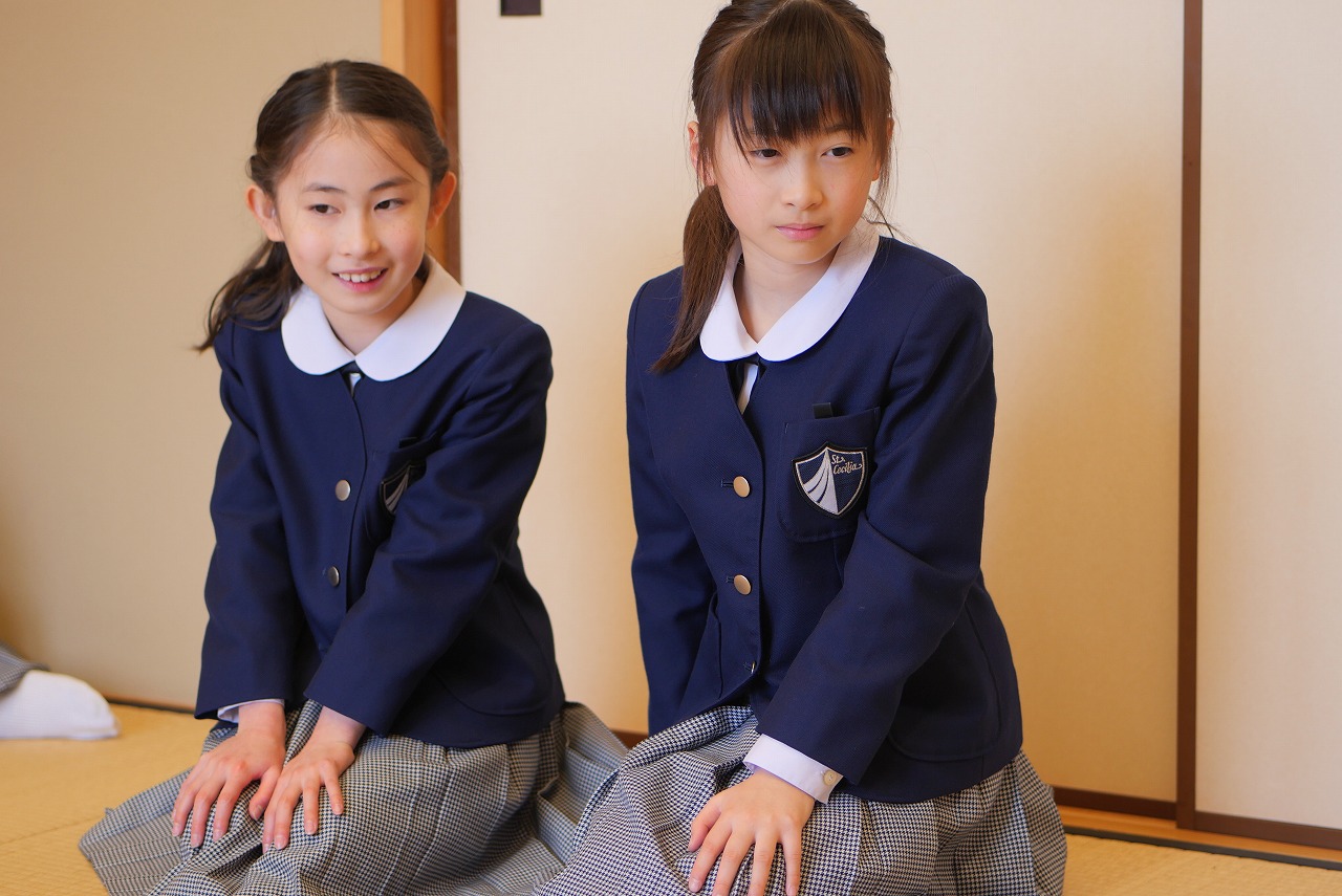 3年生の「マナー講座」を実施しました。講師の先生は本校の卒業生です。今回の講座では、前回教えていただいた和室への入り方、畳の歩き方、床の間の拝見のしかたなどを実践した後に「お茶の点て方」を学びました。「子どもにこそ本物を」という講師の先生の想いから、京都の高級な抹茶とお雛様の季節に合わせて特別につくっていただいた和菓子を用意していただきました。子どもたちは、お茶の苦さに驚きながらも、最後までしっかりとお茶を飲み切っていました。