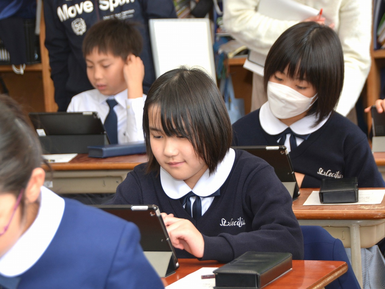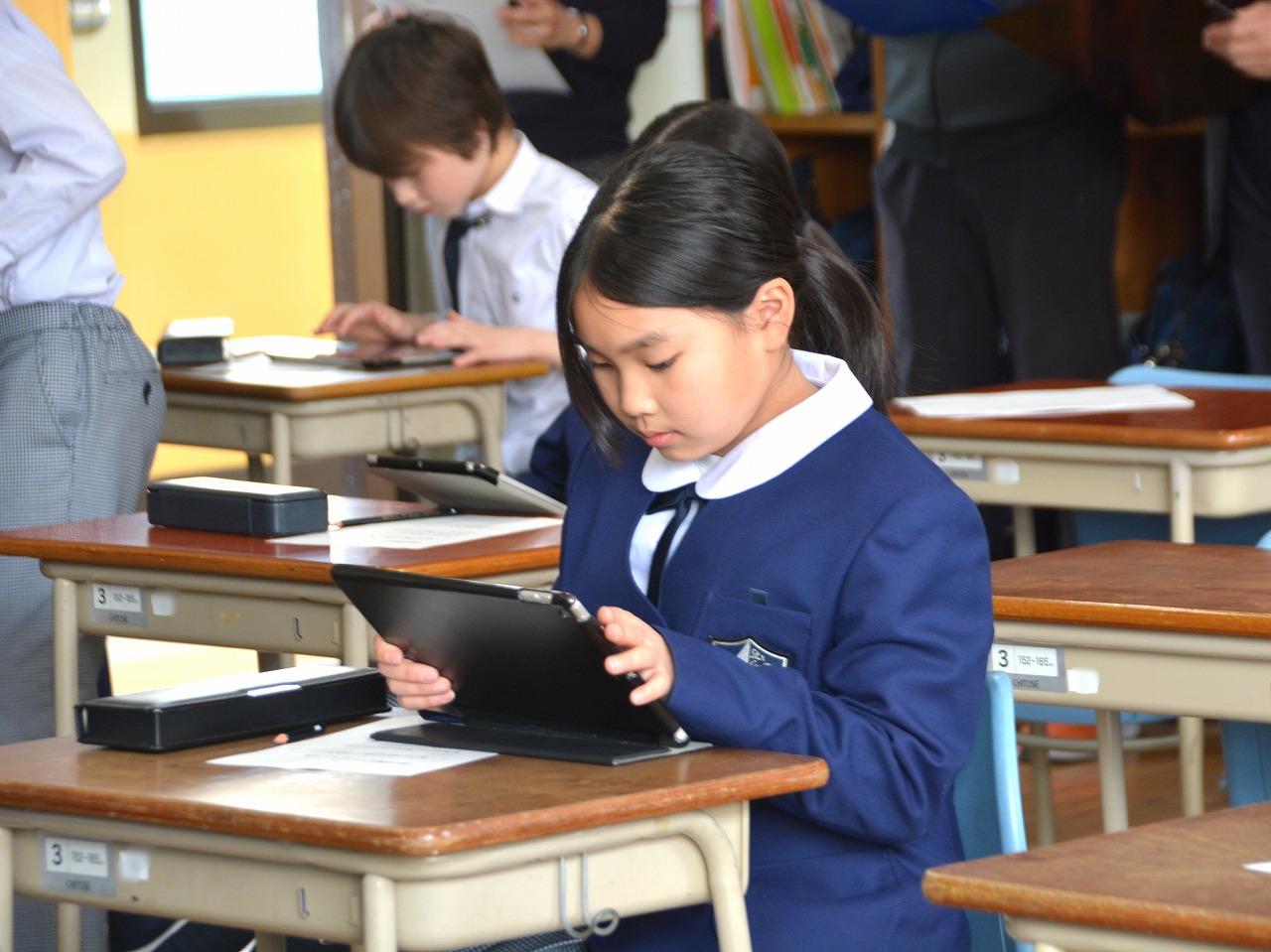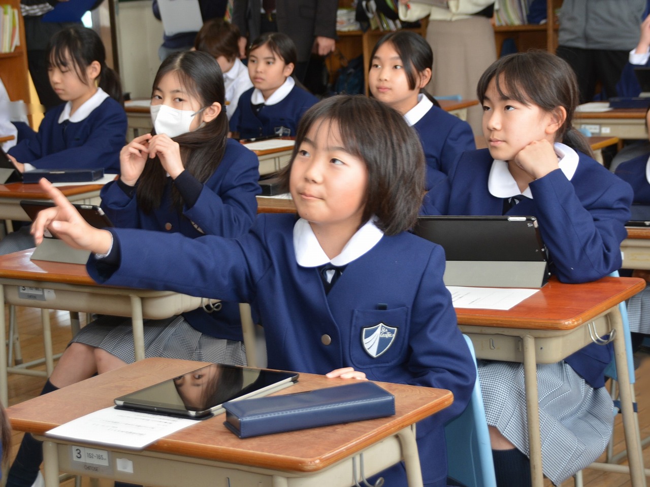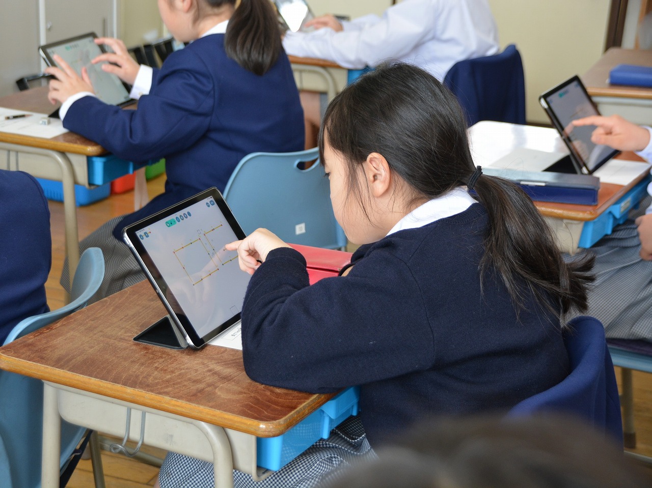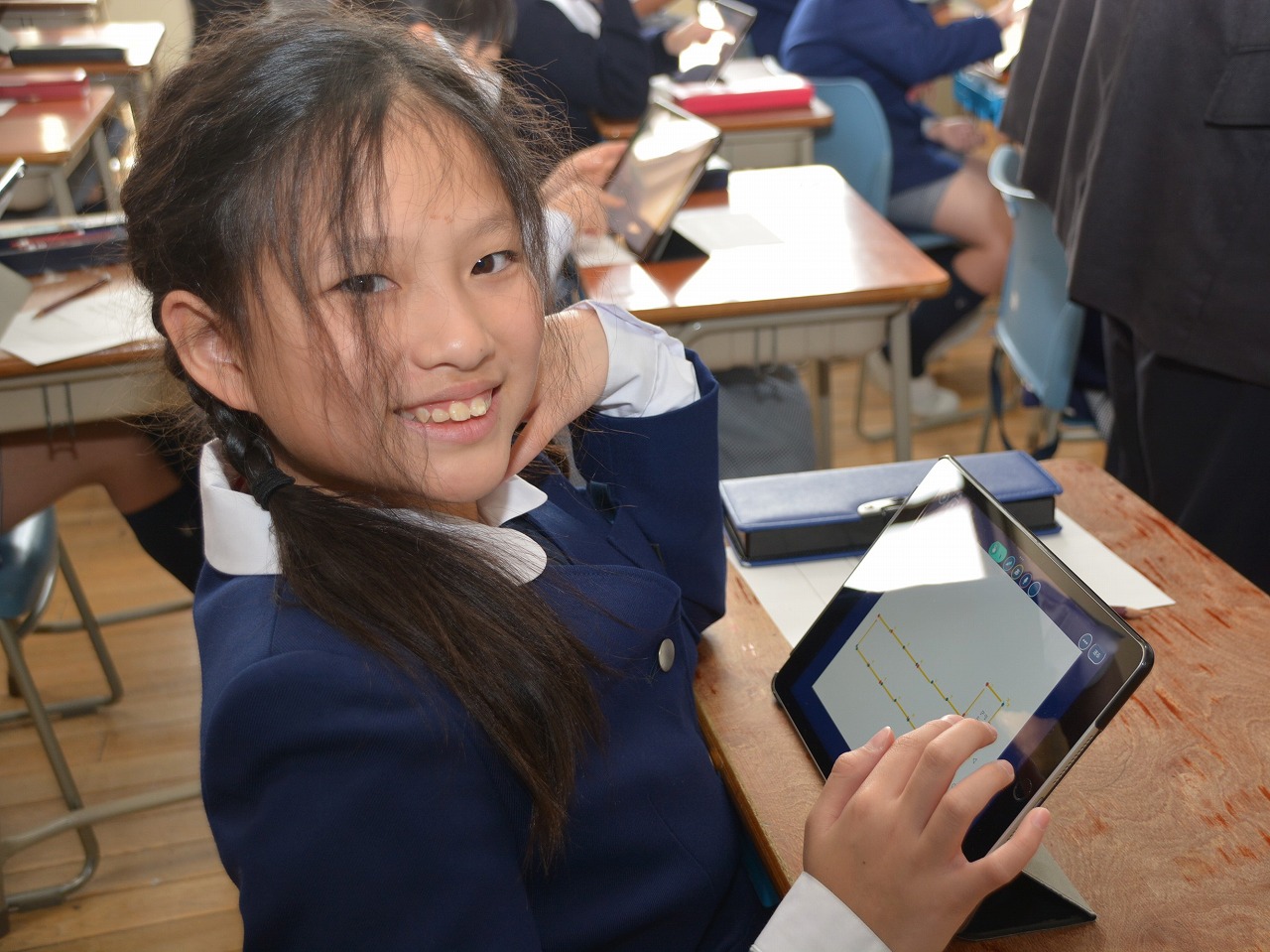 全教職員が参加して、4年生算数の研究授業を行いました。授業では、図形の大きさについて、iPadを使って考えました。18本の棒を使って作った図形はどれも同じ大きさに見えましたが、工夫して考えていくと図形によって大きさが違っていることに気がつきました。子どもたちはみんな楽しそうに授業に取り組んでいました。