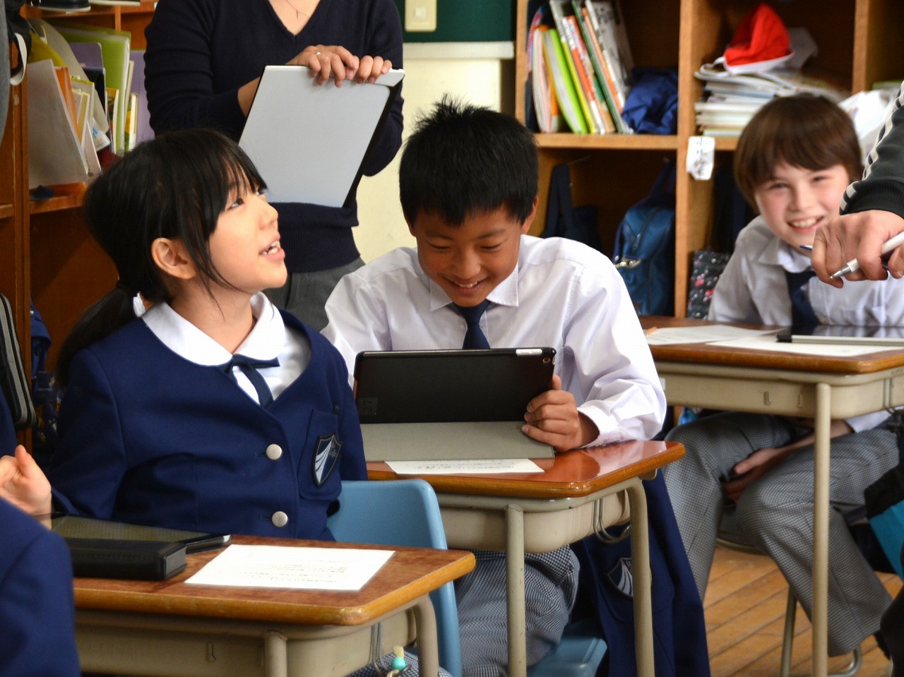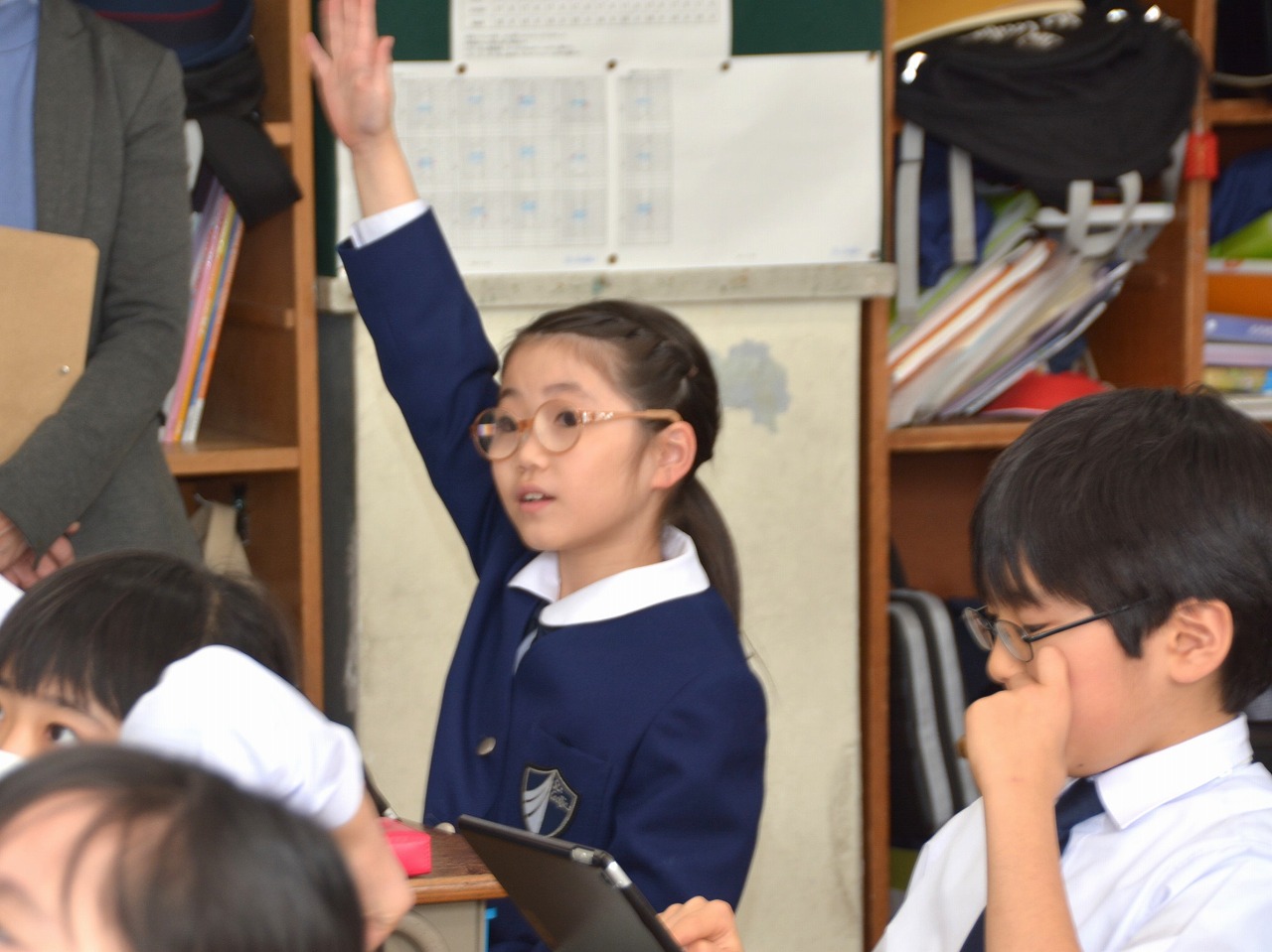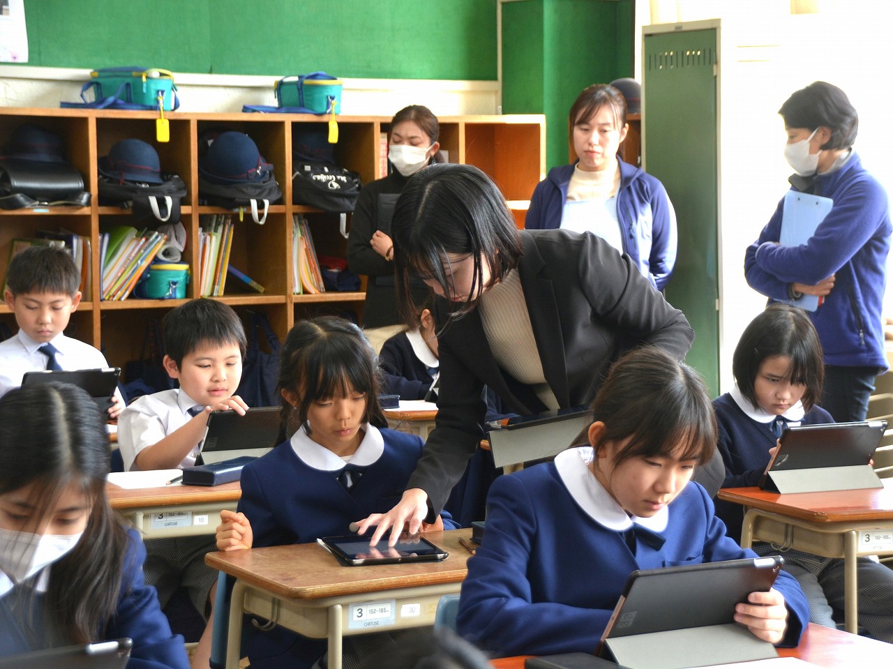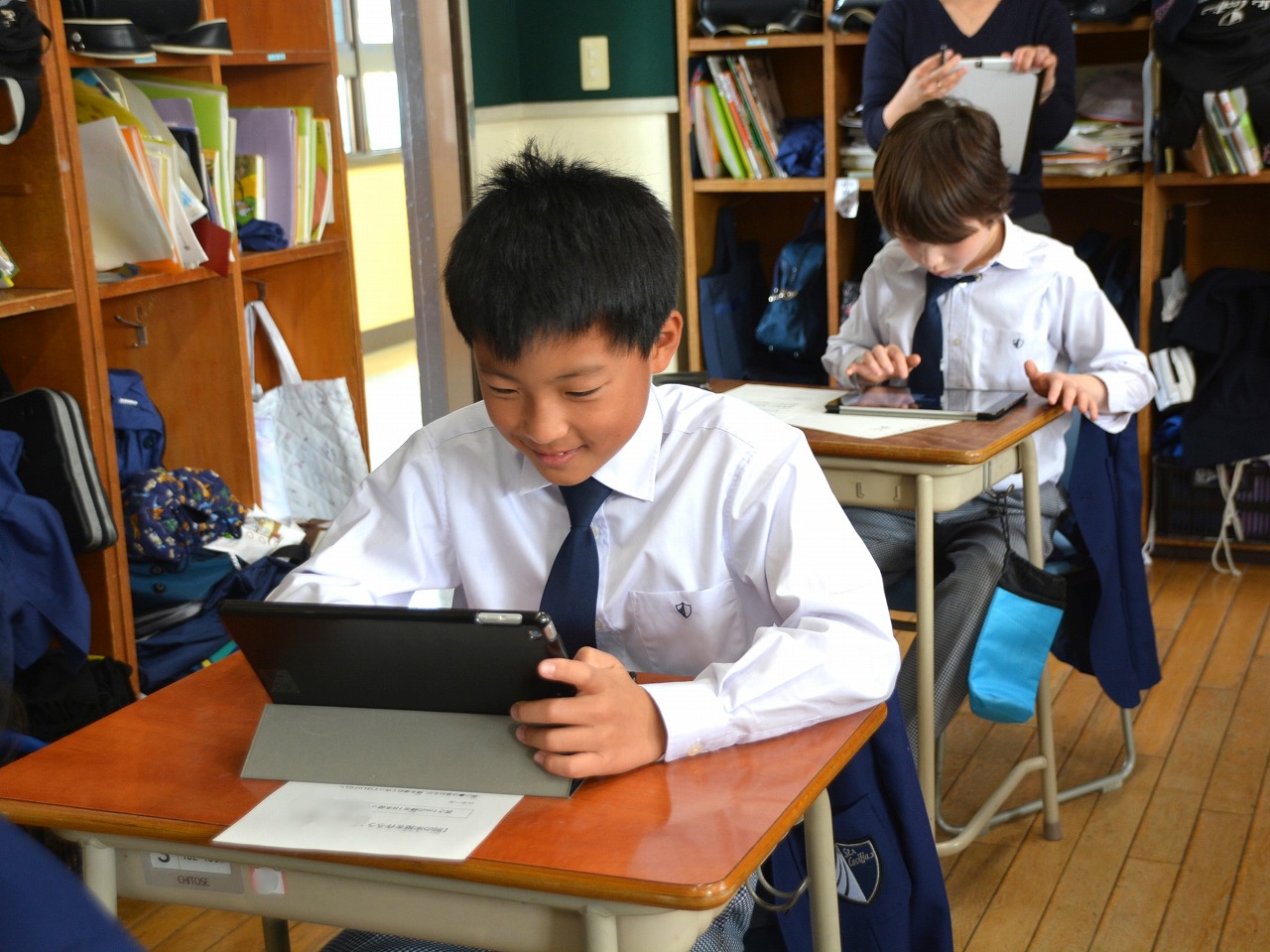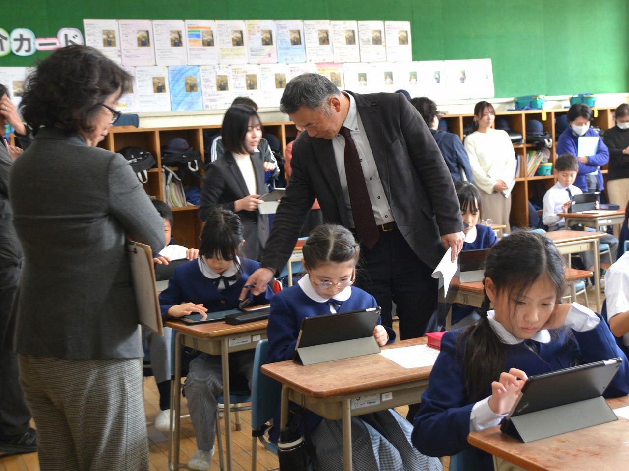 全教職員が参加して、4年生算数の研究授業を行いました。授業では、図形の大きさについて、iPadを使って考えました。18本の棒を使って作った図形はどれも同じ大きさに見えましたが、工夫して考えていくと図形によって大きさが違っていることに気がつきました。子どもたちはみんな楽しそうに授業に取り組んでいました。