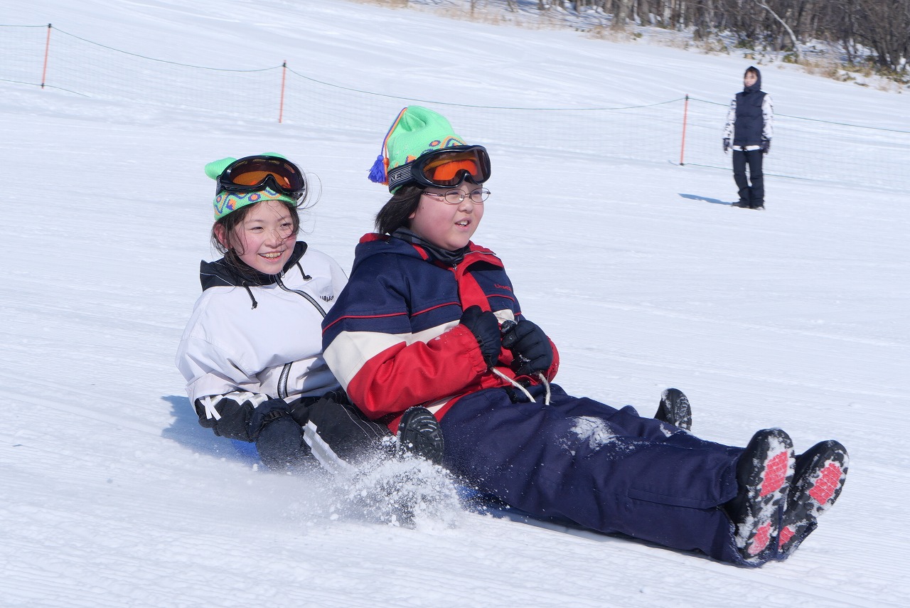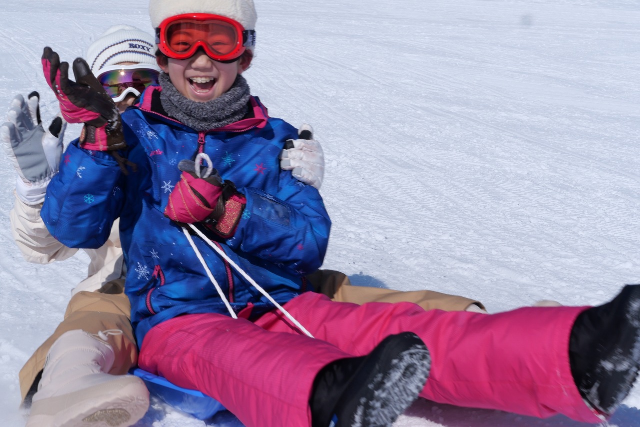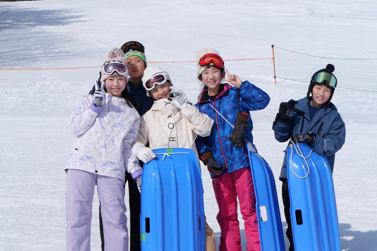 雪の学校の最後のイベントは、「そり体験」です。天気は快晴! 始めはおそるおそるだった子も、すぐにそりをコントロールすることができるようになり、そのスピードと爽快感を満喫していました。