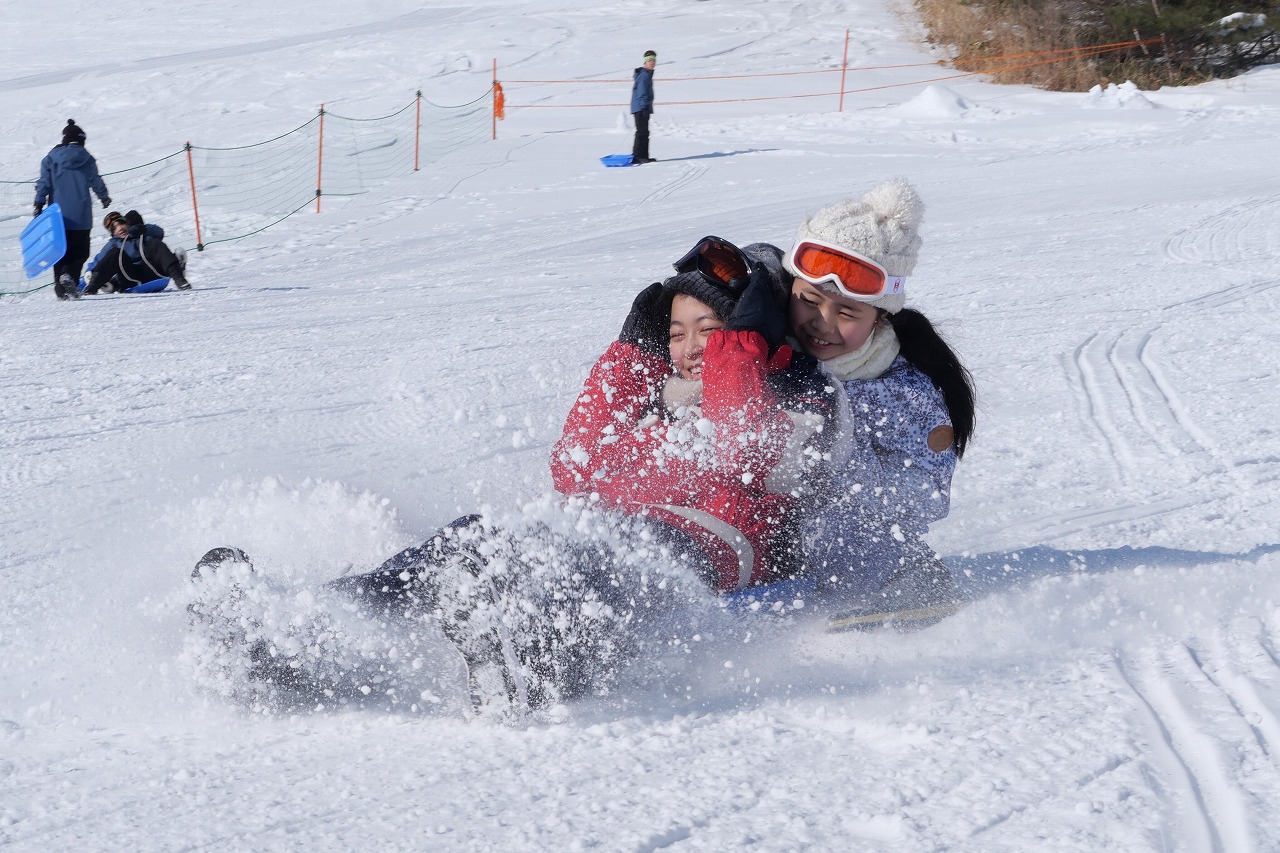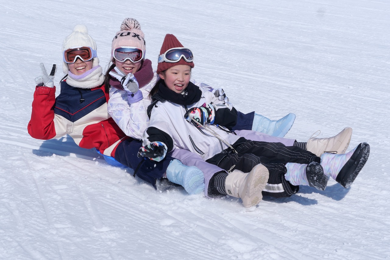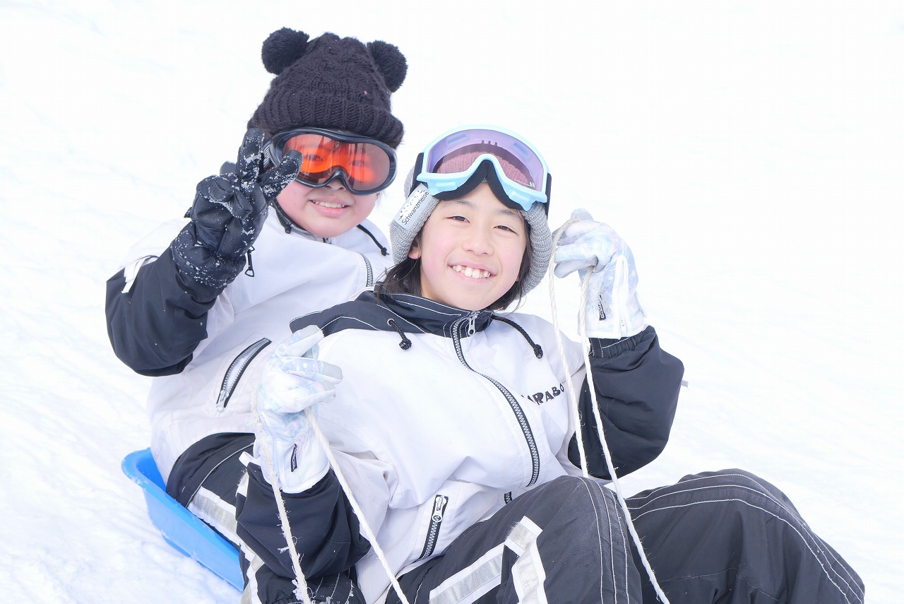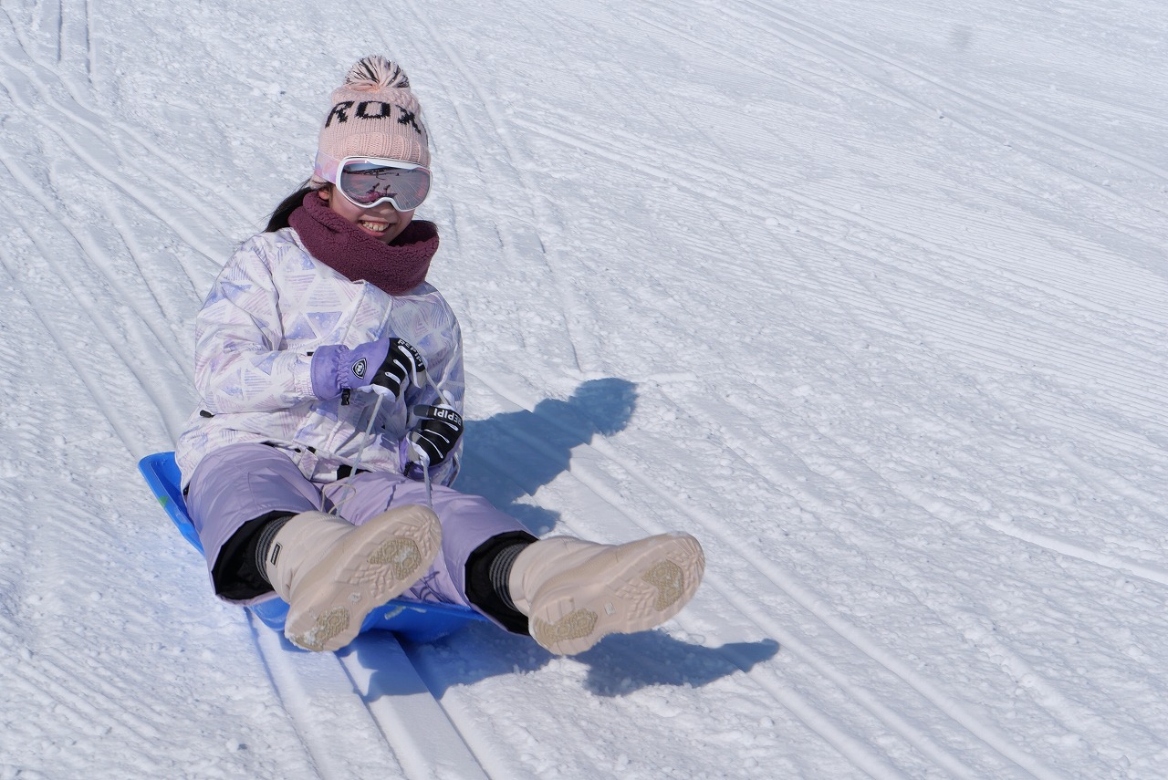 雪の学校の最後のイベントは、「そり体験」です。天気は快晴! 始めはおそるおそるだった子も、すぐにそりをコントロールすることができるようになり、そのスピードと爽快感を満喫していました。