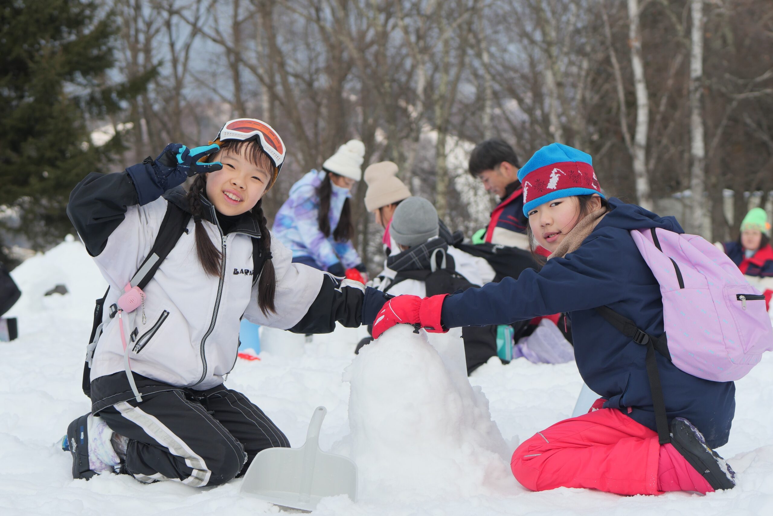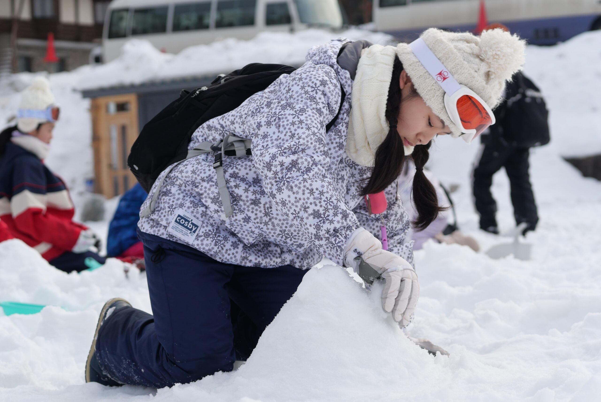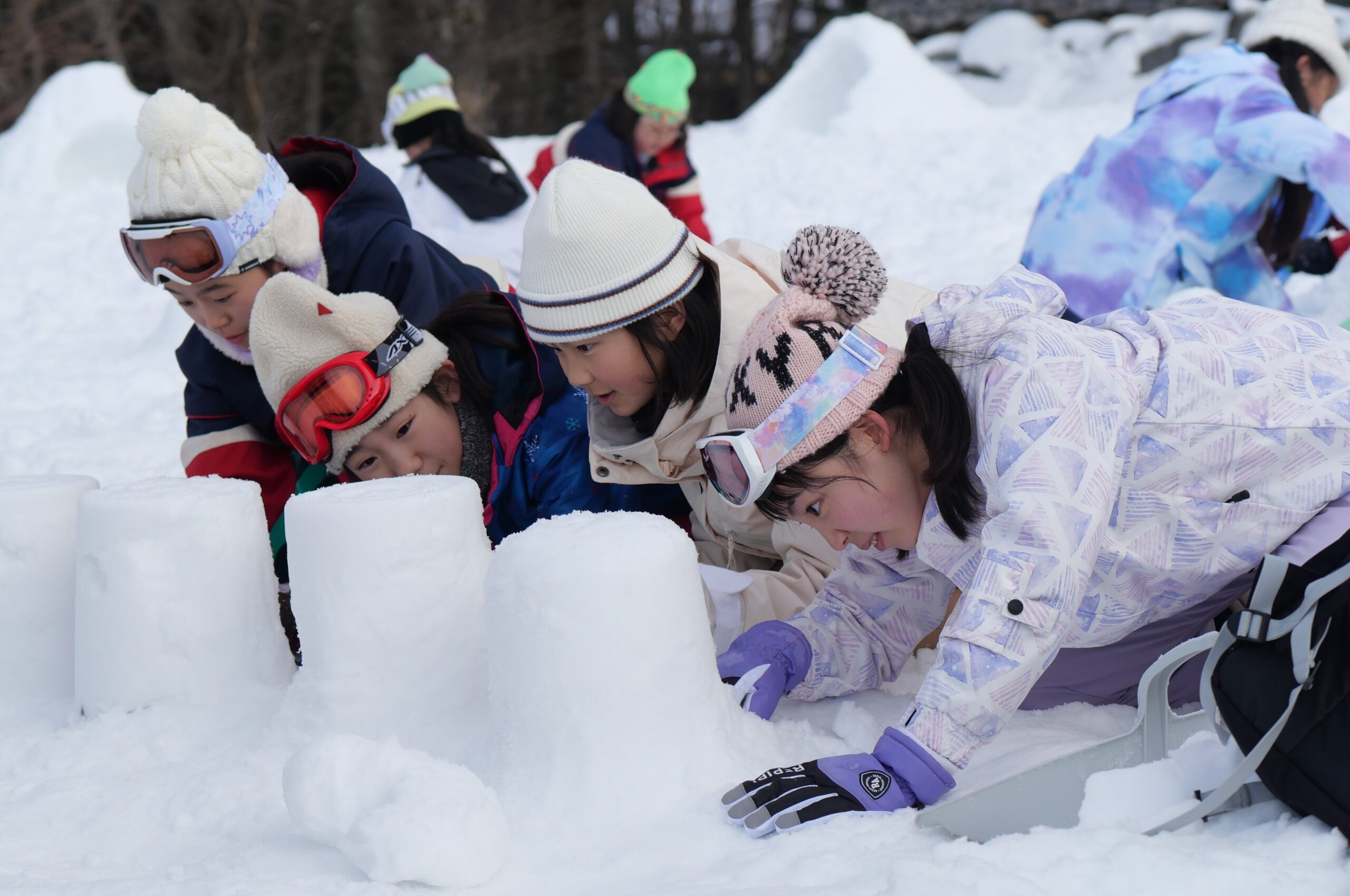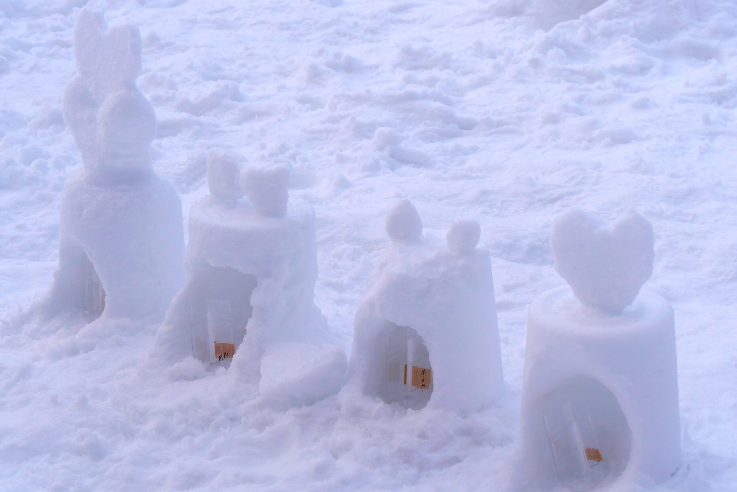 夜のキャンドルサービスに向けて、キャンドル台と小さなかまくらを作りました。