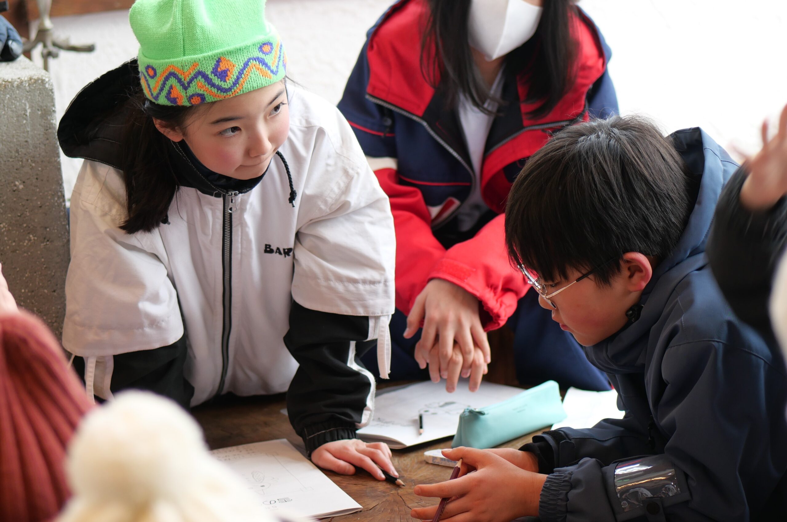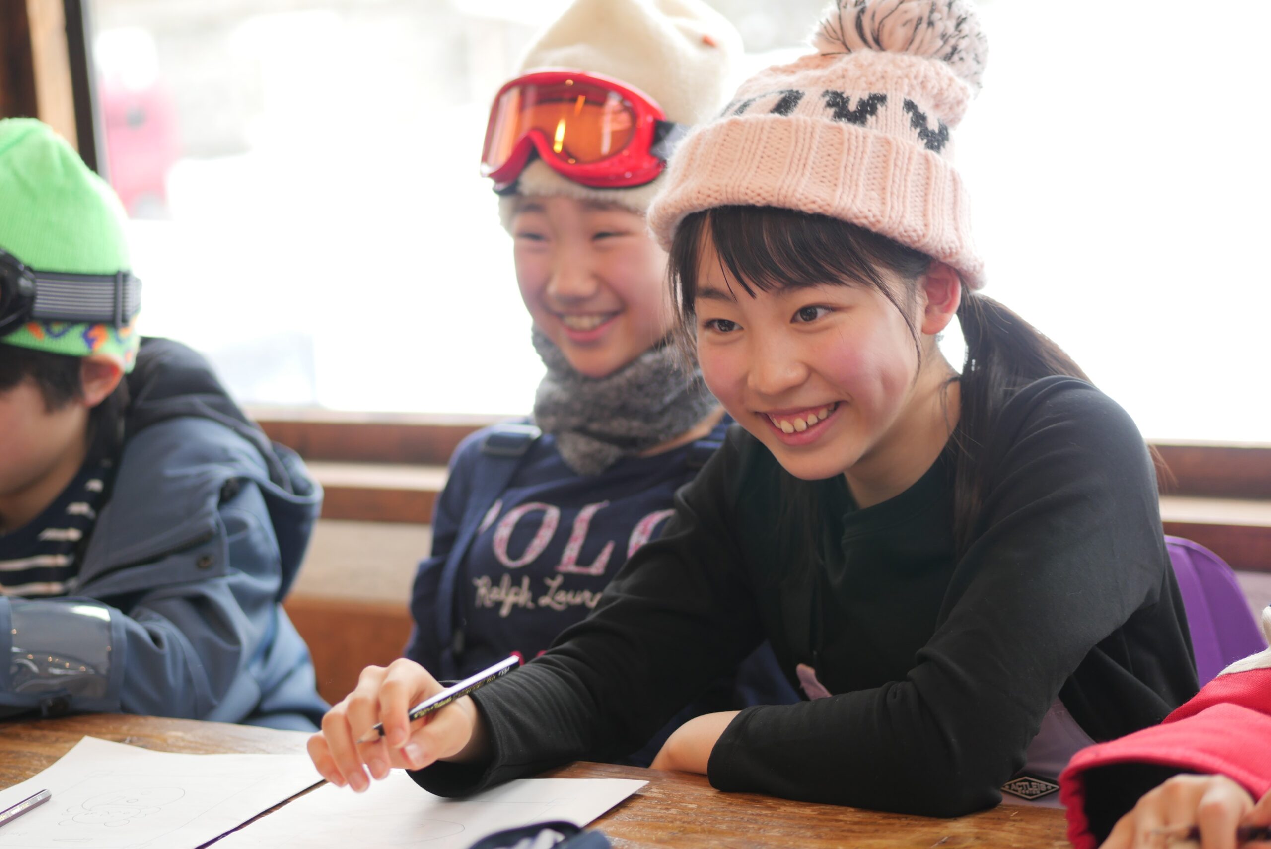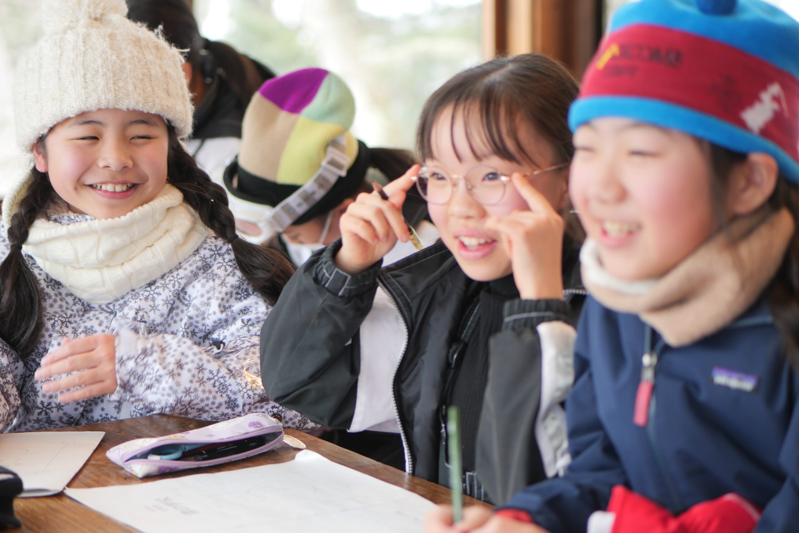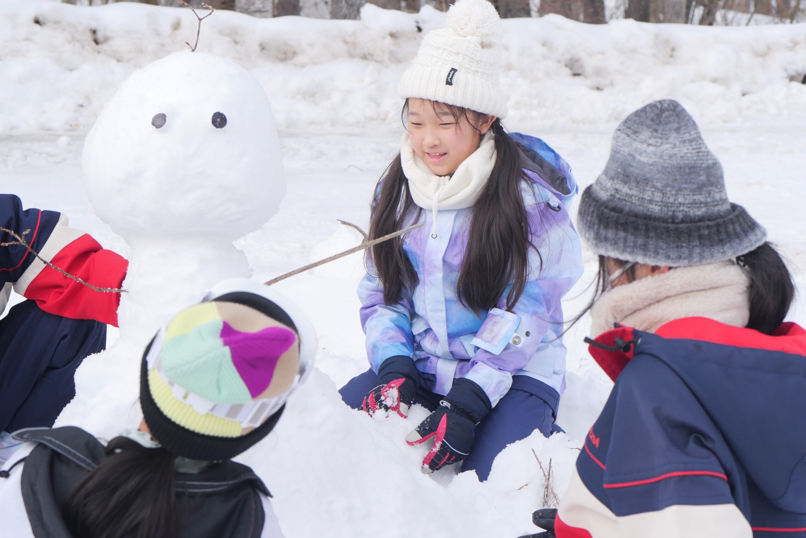 雪だるまコンテストを行いました。まずは班ごとに相談し、雪だるまのデザインを考えました。デザインが決まった後は、制限時間内に班のみんなで協力して雪だるまを完成させます。どの班もみんなで協力し、完成度が高い作品が出来上がりました。