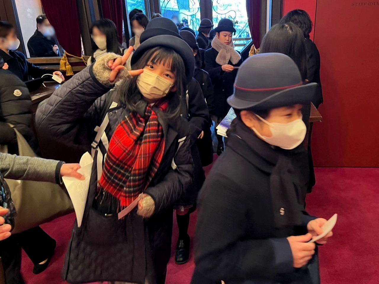 全校で劇団四季のミュージカル『赤毛のアン』を鑑賞しました。子どもたちは、大きな舞台装置の仕掛けに驚いたり、ユーモアあふれる演技に大笑いしたり、小道具の演出に感心したり、はっきりとした発音のセリフにすっかり引き込まれていました。お話の内容もよく理解して楽しんでおり、帰り道には劇中の歌を口ずさんでいました。