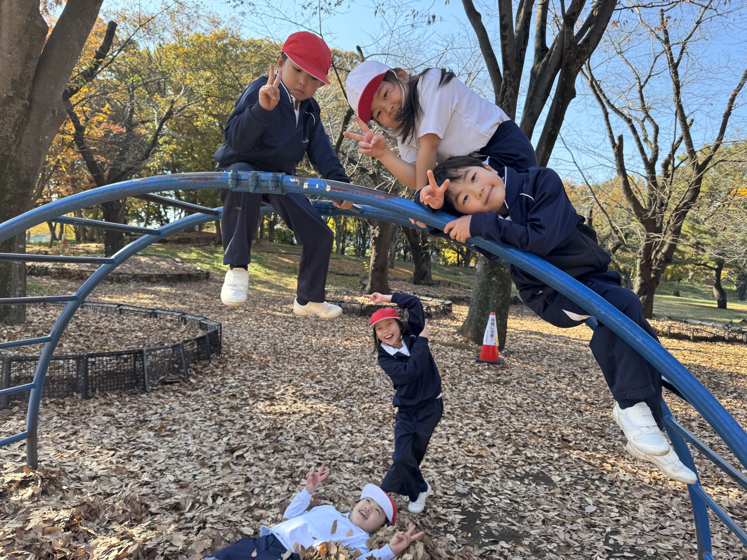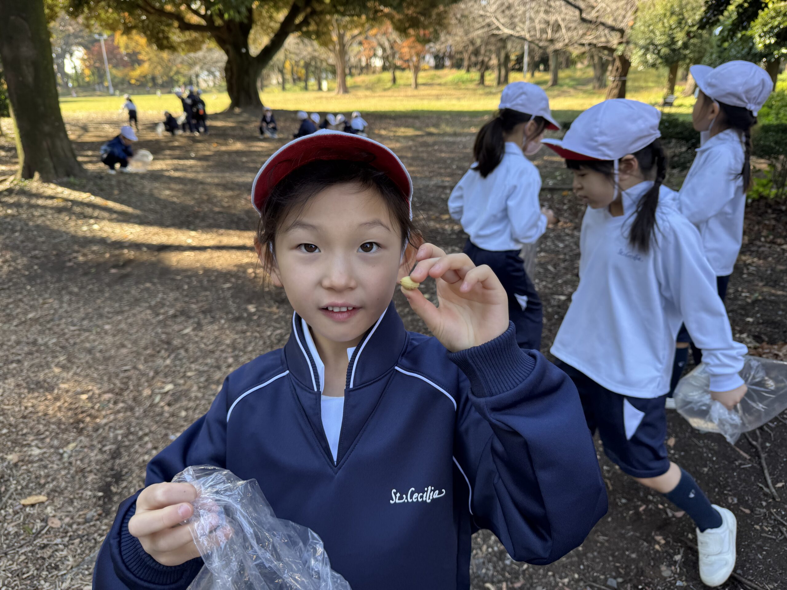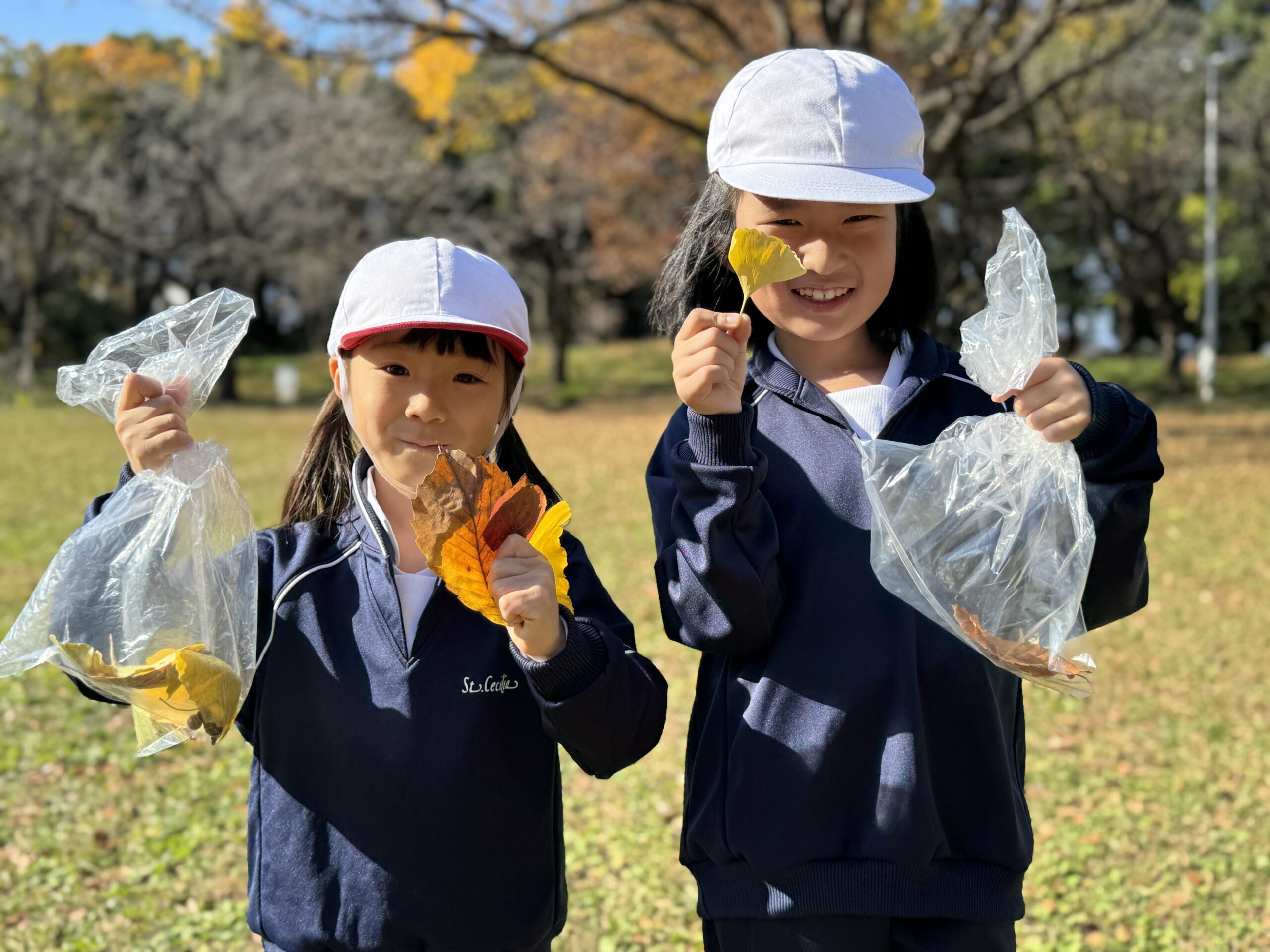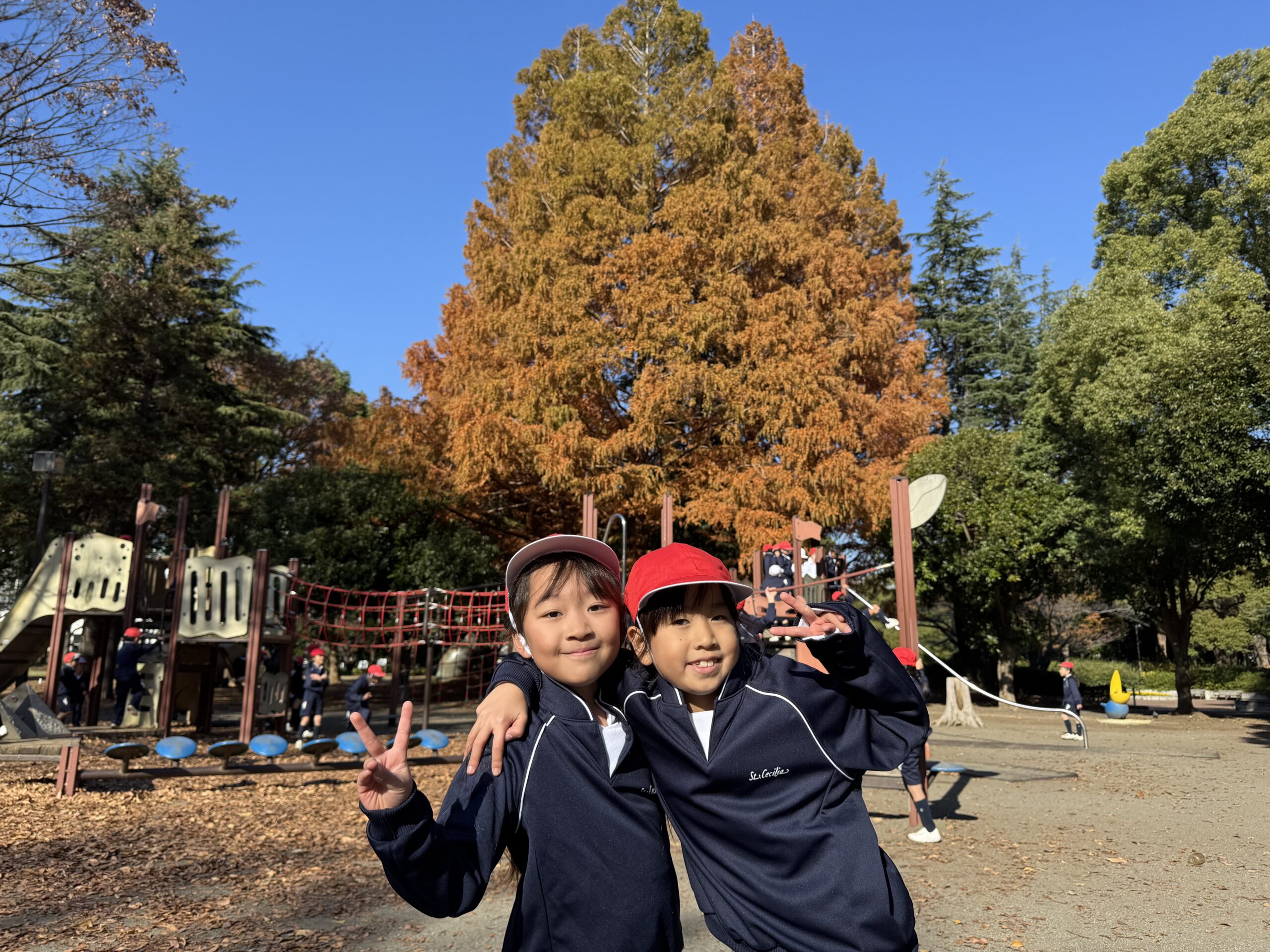 1~2年生が生活科の学習で引地台公園に行きました。1年生は公園で秋探し。公園は自然豊かで、どんぐりの実や黄色く色づいた葉など、多くのものを発見しました。2年生は引地台公園管理事務所の所長さんにインタビュー。引地台公園のことや、公園でのルール、公園で働く方々についてお話をしていただきました。