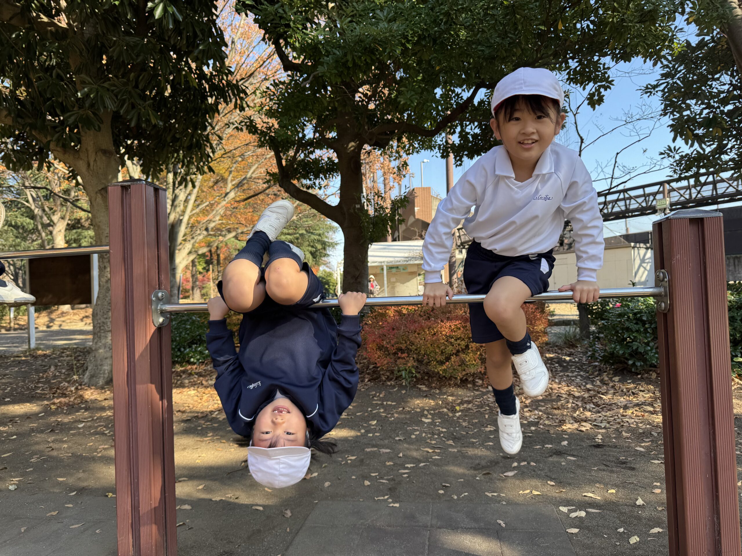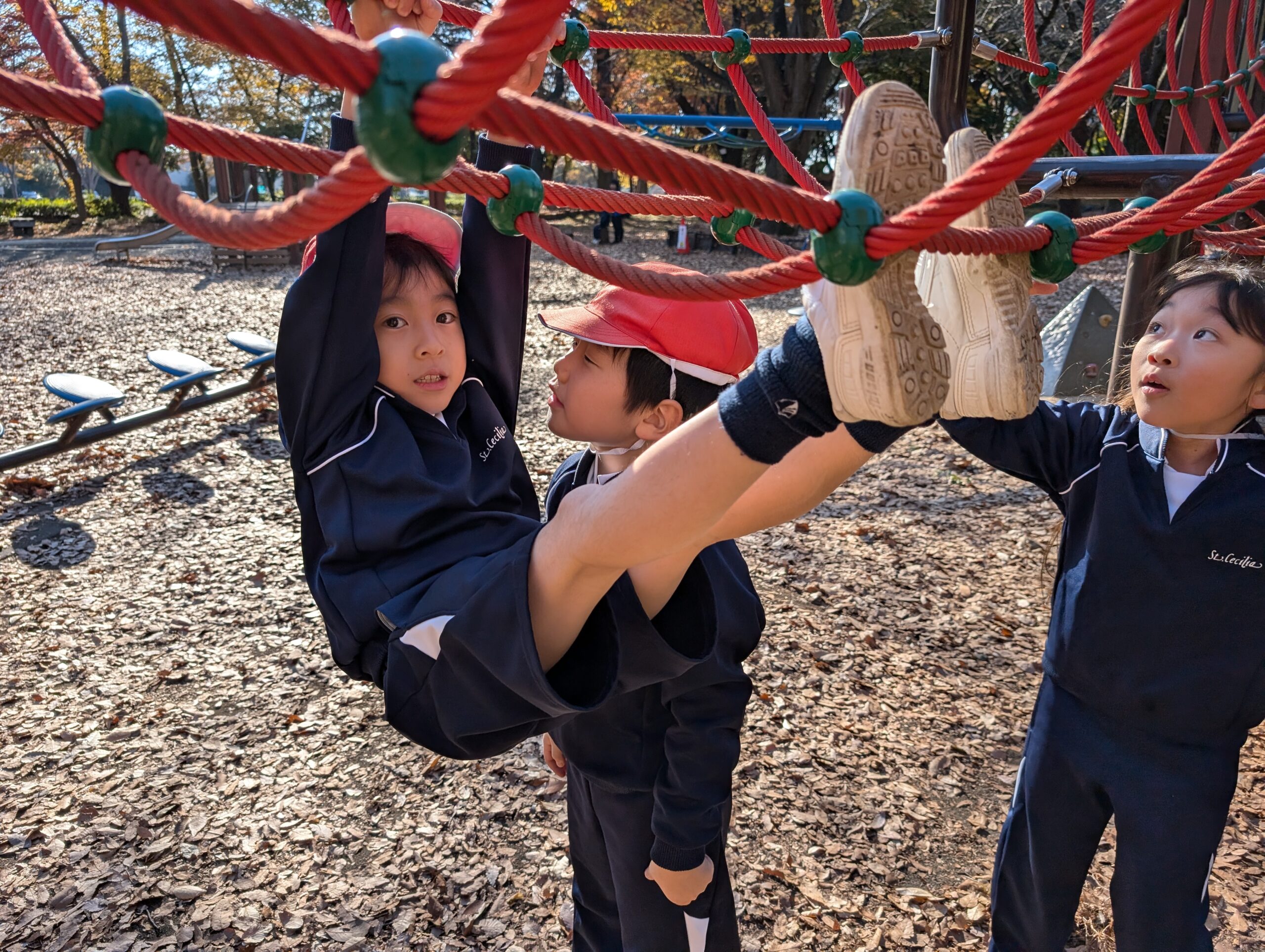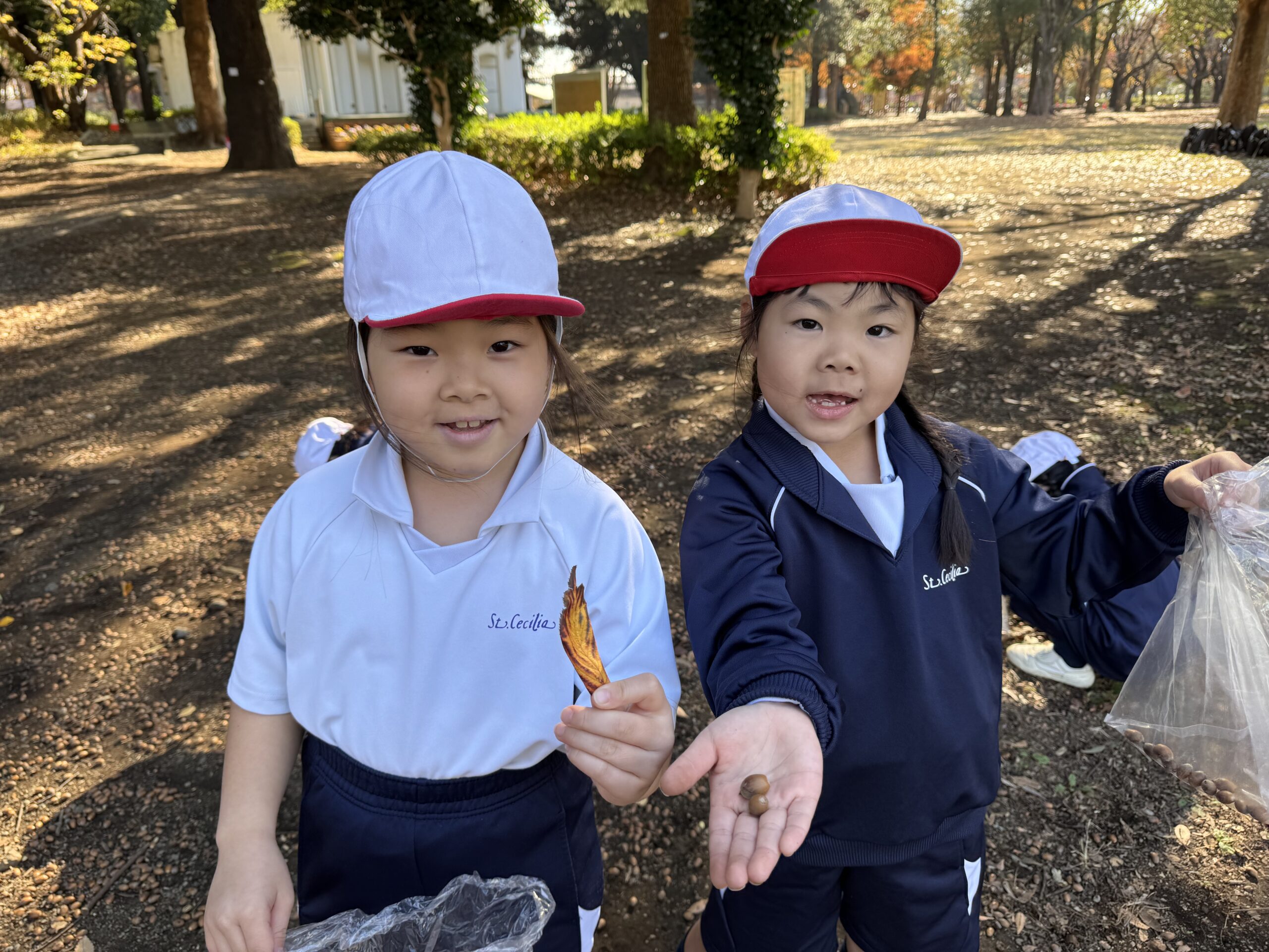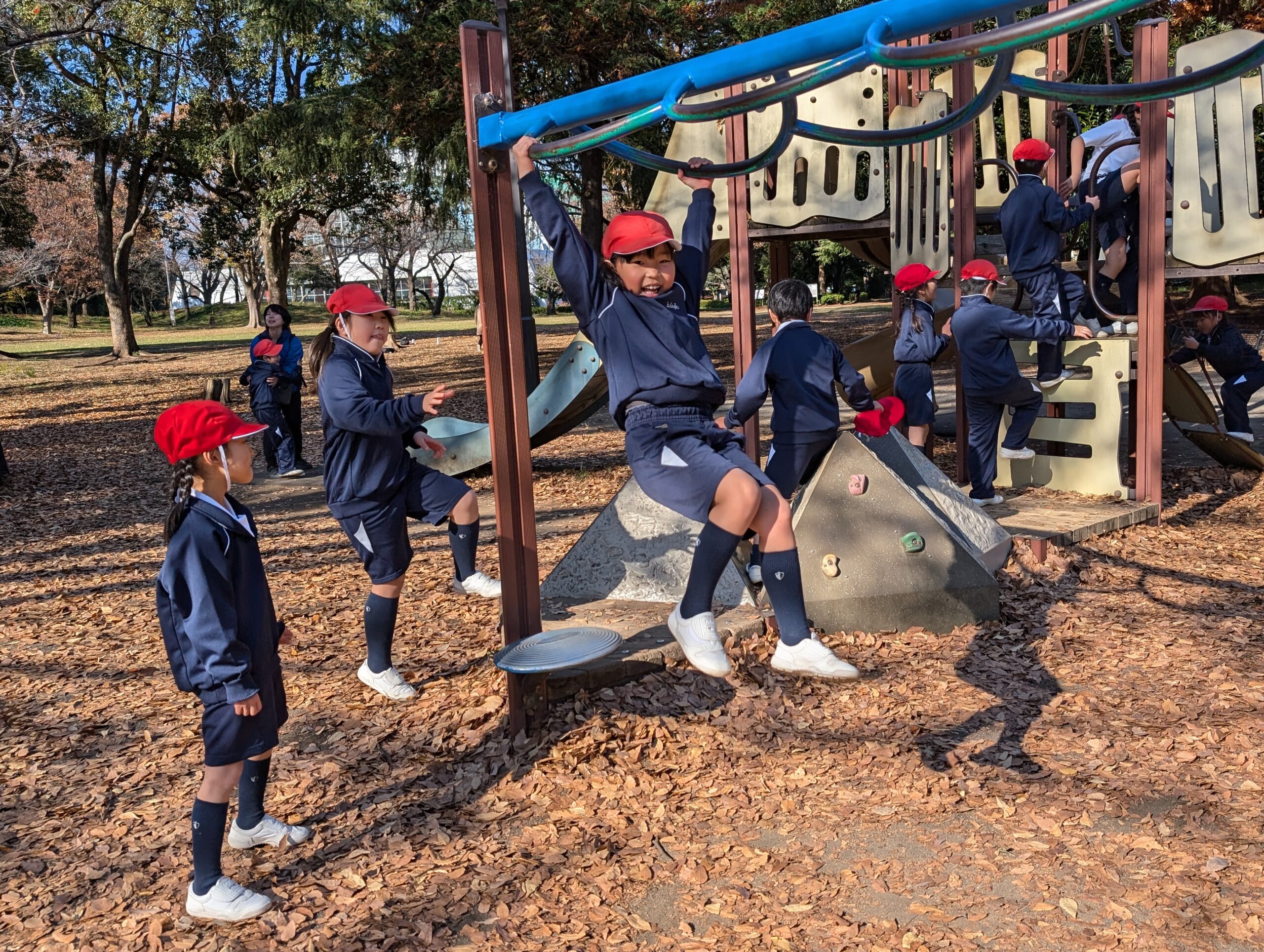 1~2年生が生活科の学習で引地台公園に行きました。1年生は公園で秋探し。公園は自然豊かで、どんぐりの実や黄色く色づいた葉など、多くのものを発見しました。2年生は引地台公園管理事務所の所長さんにインタビュー。引地台公園のことや、公園でのルール、公園で働く方々についてお話をしていただきました。