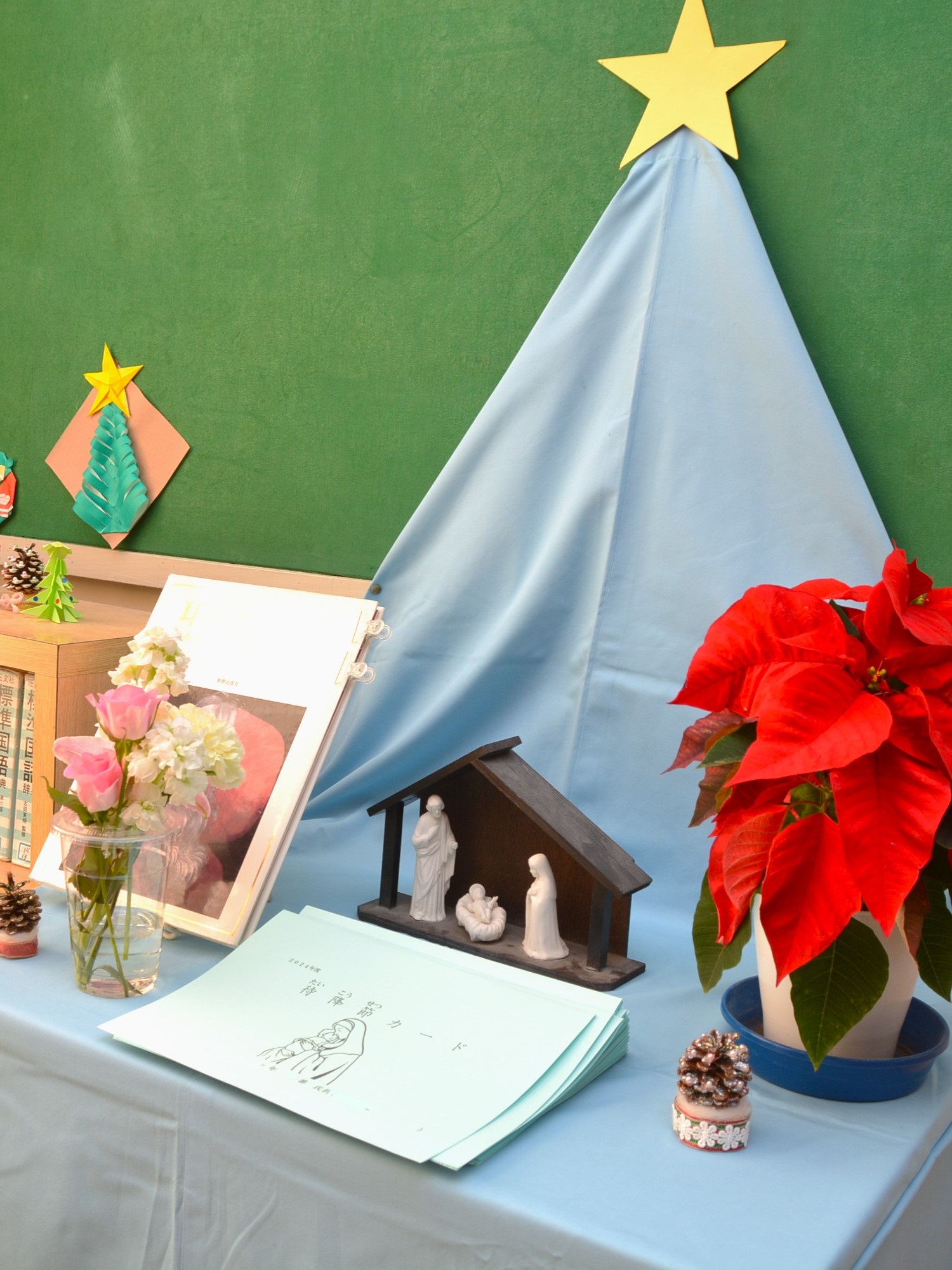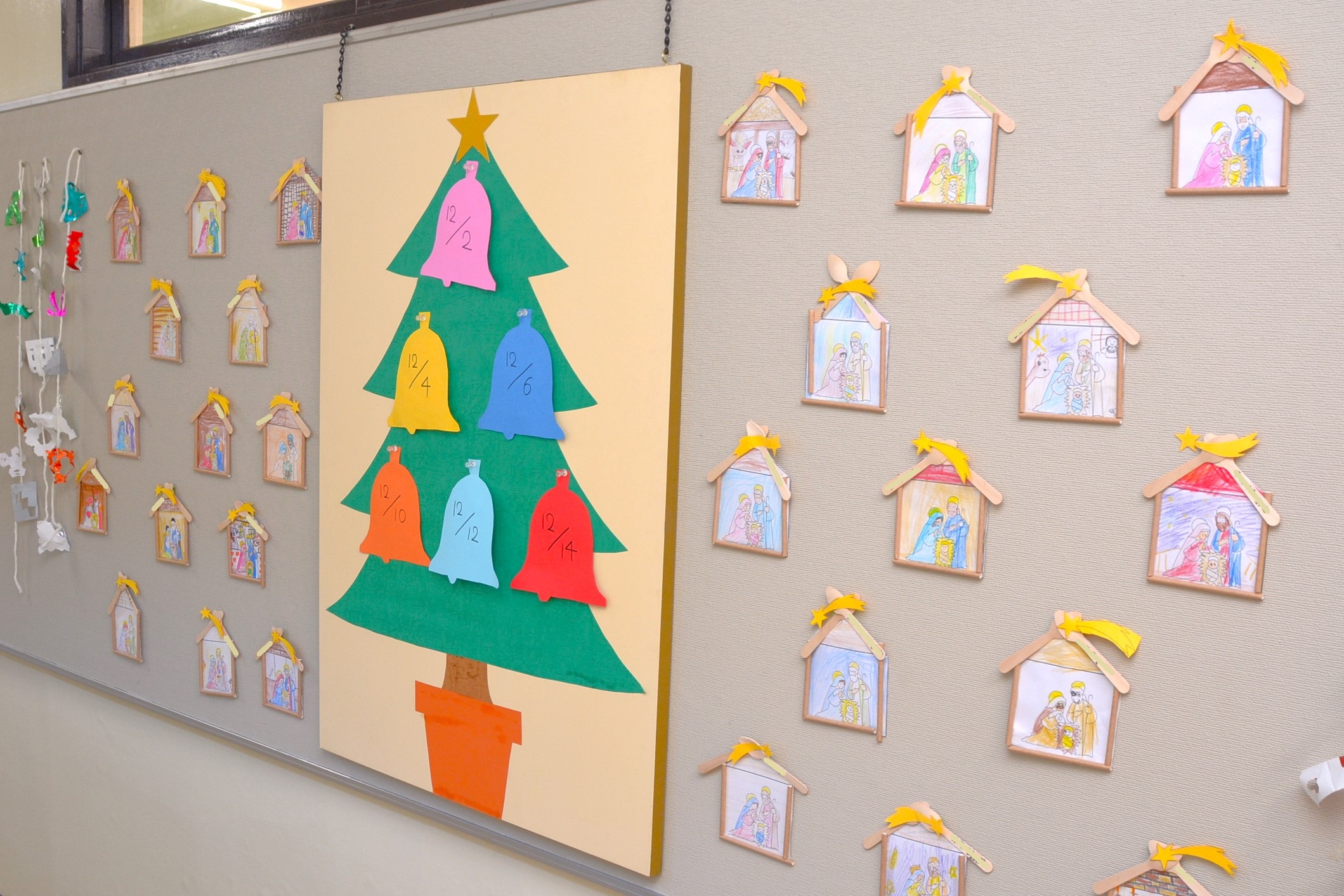 教会では、クリスマスの4つ前の日曜日からクリスマスを準備する期間に入ります。カトリックでは、この期間を「待降節」と呼んでいます。今年は12月1日(日)からです。本校でもこの待降節に合わせ、校内に馬小屋やツリー、リースなどの飾り付けを行いました。子どもたちは、一人ひとり「待降節カード」を作り、人のためにできることや喜んでもらえることを考え、記入しました。そして、記入したことを意識して学校生活を送っています。また家に帰ってからも、世界の恵まれない「会ったことのない友だち」の幸せのために、お手伝いやちょっとした我慢して少しずつ貯めたお金を献金箱に入れています。
