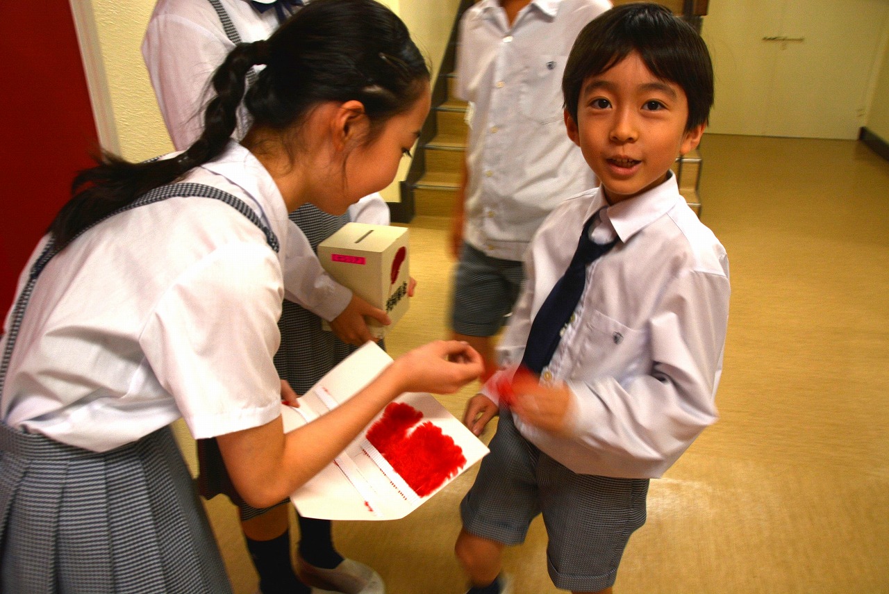 代表委員会の児童が中心になり、校内で「赤い羽根共同募金」を実施しました。募金活動が始まると、すぐにたくさんの児童が集まってきました。「みんなが楽しく幸せに暮らせますように」という願いを込めて募金をしていました。
