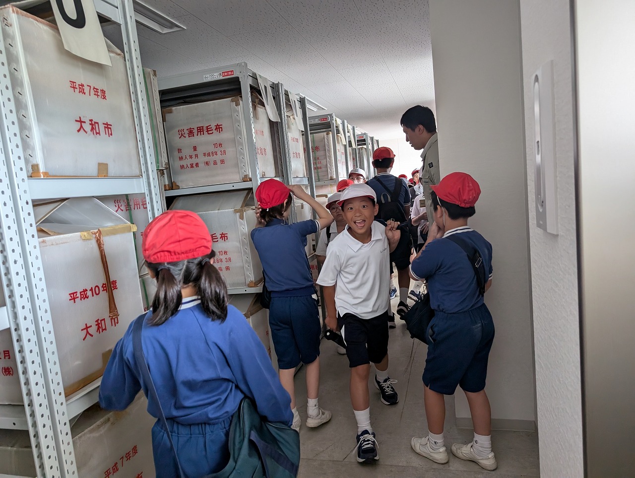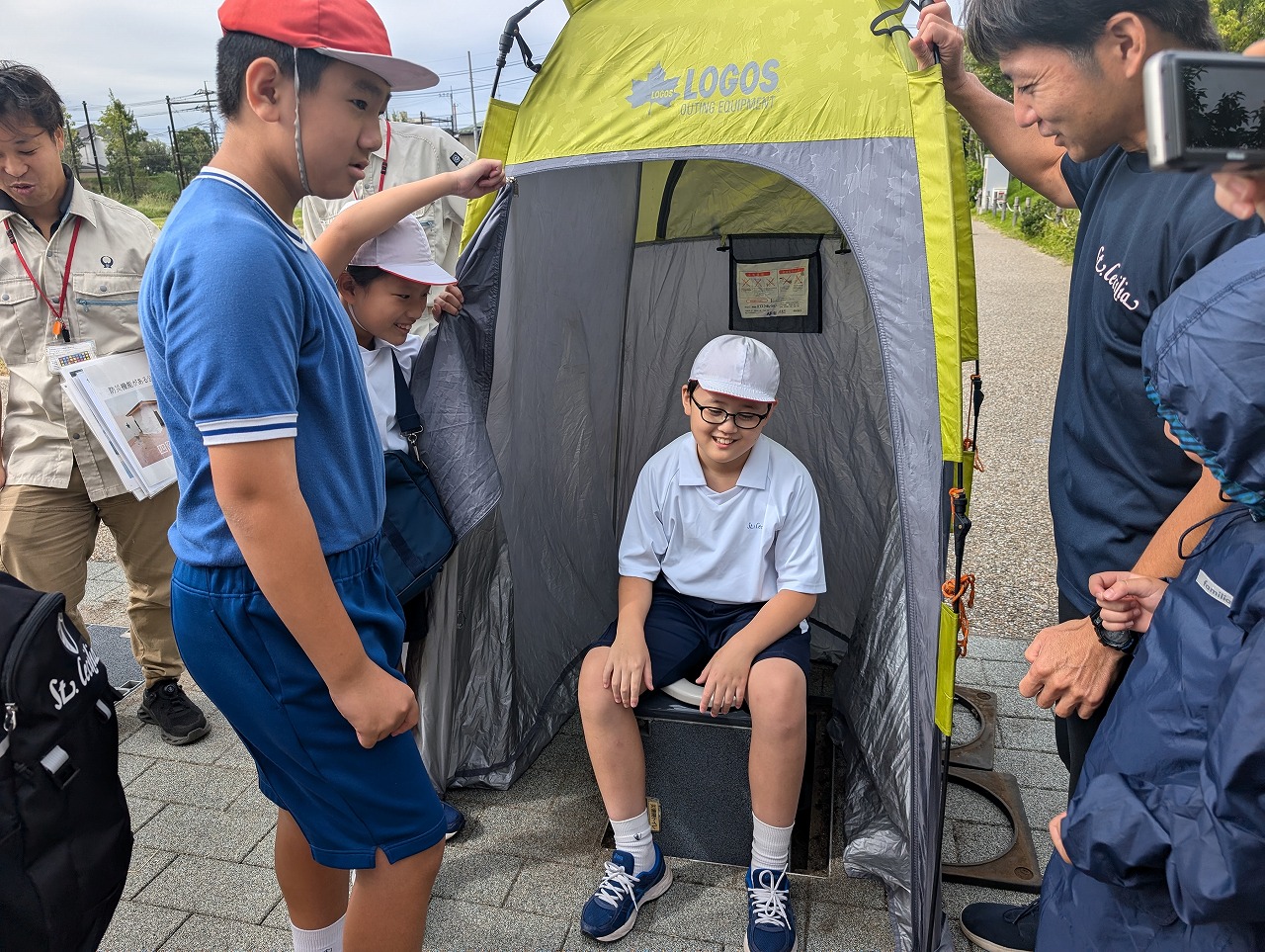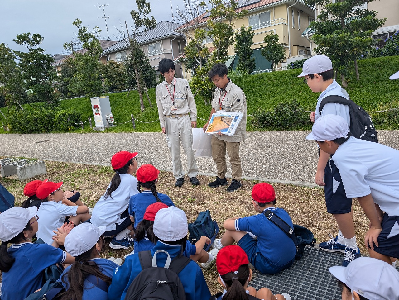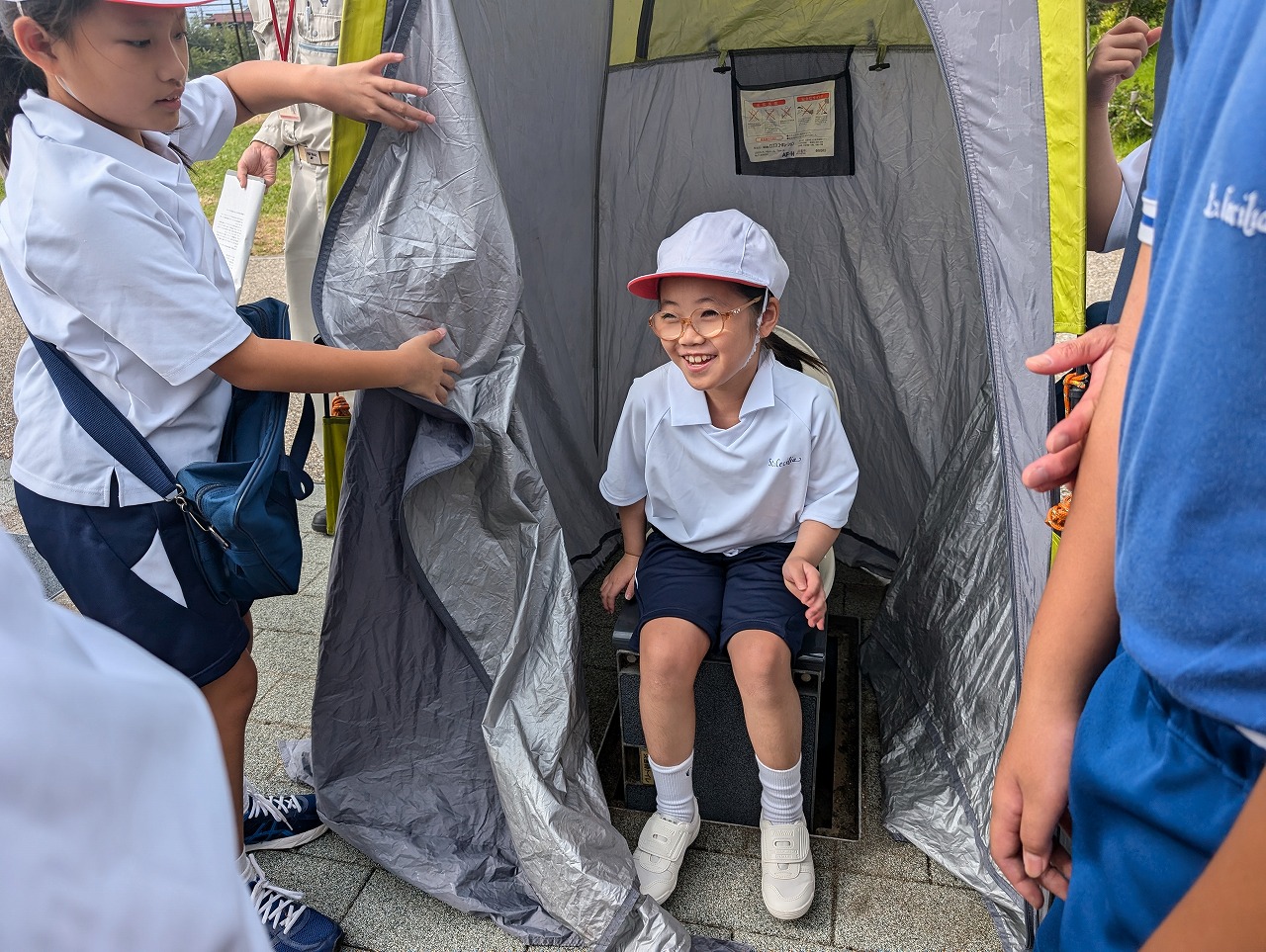 4年生は、社会科の学習で、大和市防災パークに行きました。大和市役所の方々から、普段は遊具として使っている公園の様々な工夫のお話を聞き、ベンチが災害時にかまどに変化する工夫に驚いたり、災害時用のトイレを体験したり、防災倉庫の備蓄品を見せていただいたりして、災害への備えについて考えました。