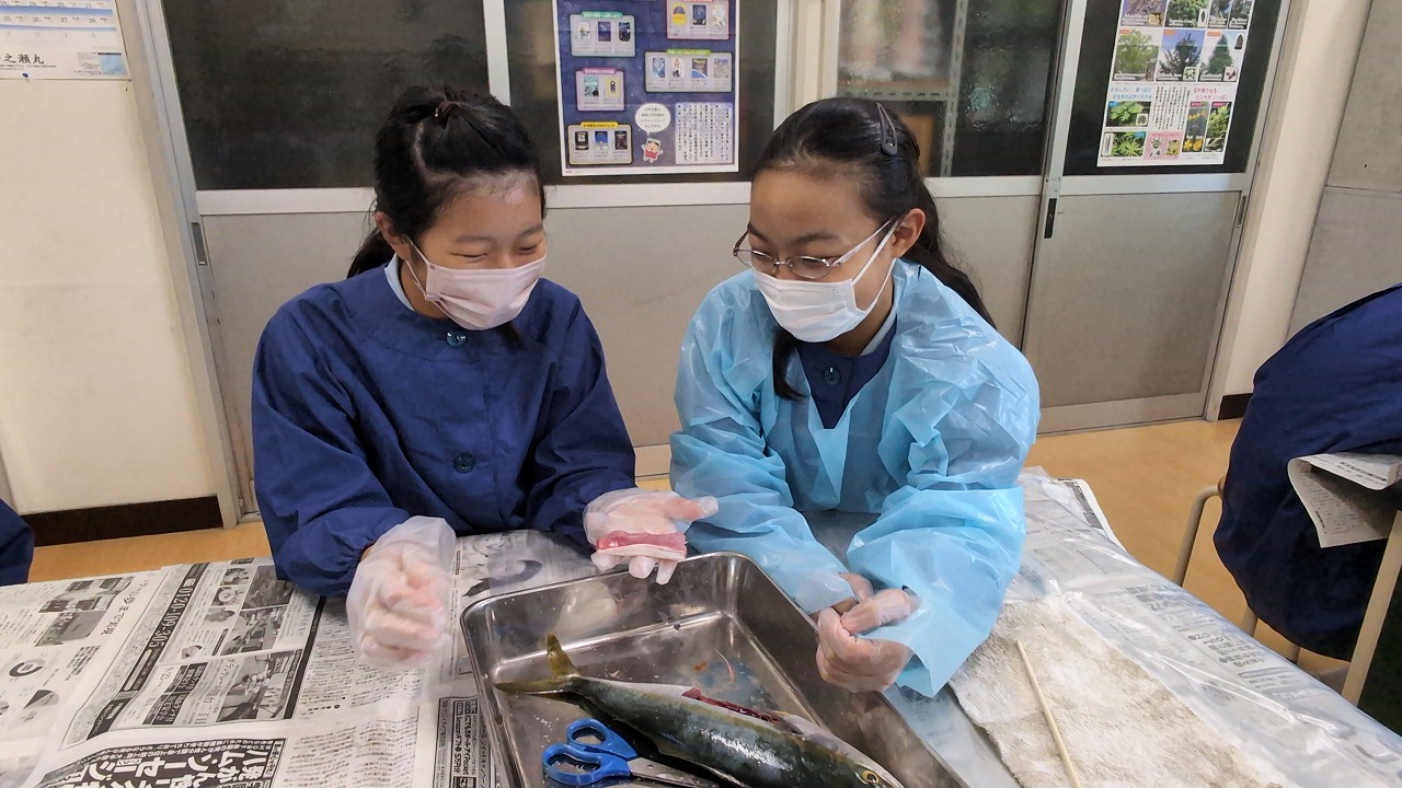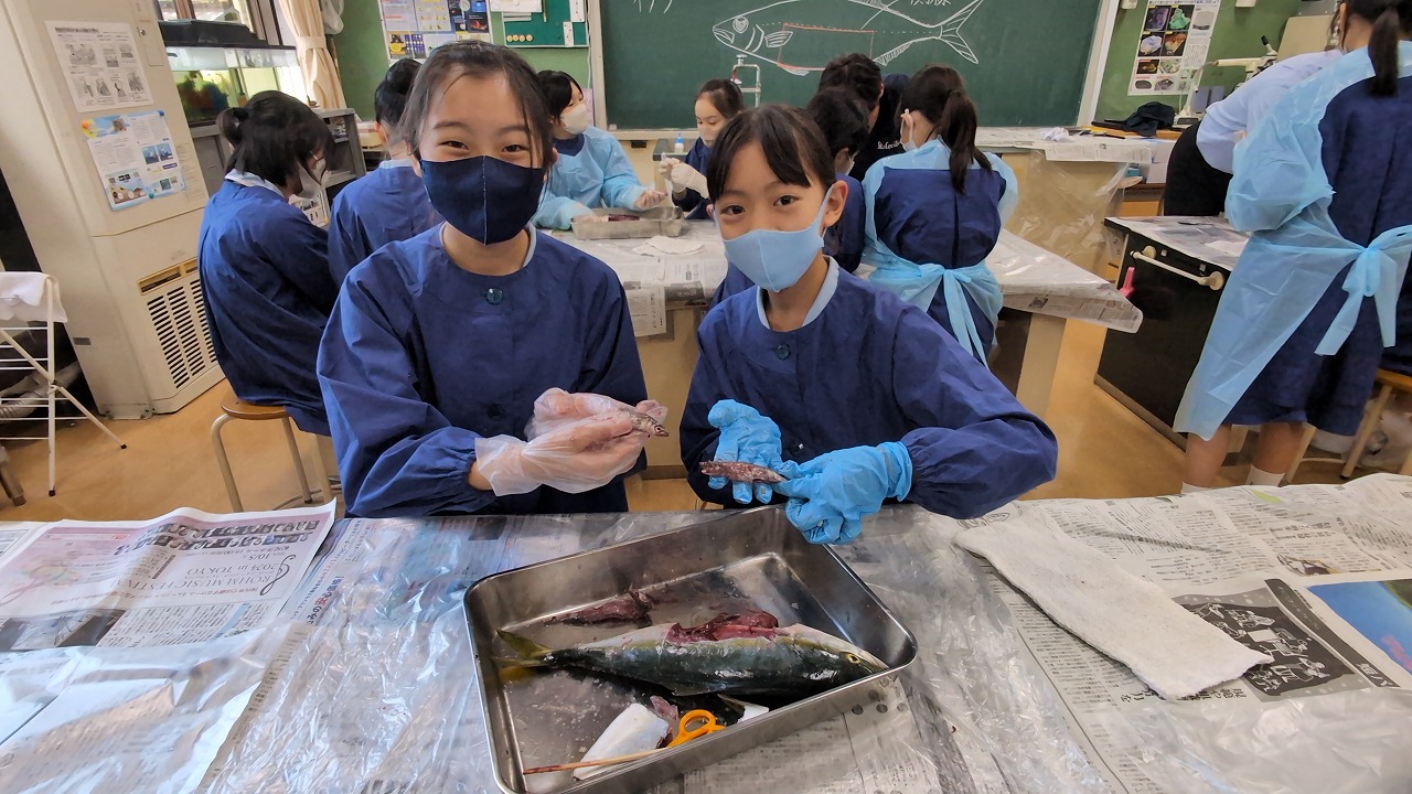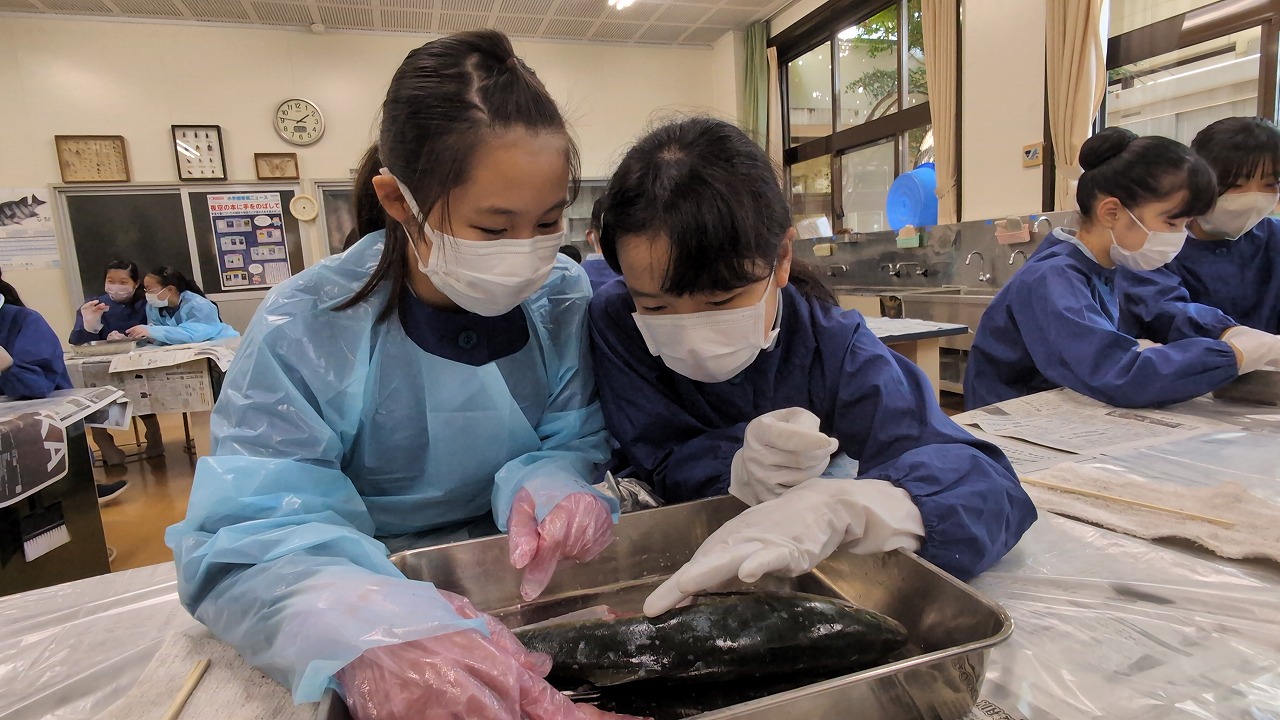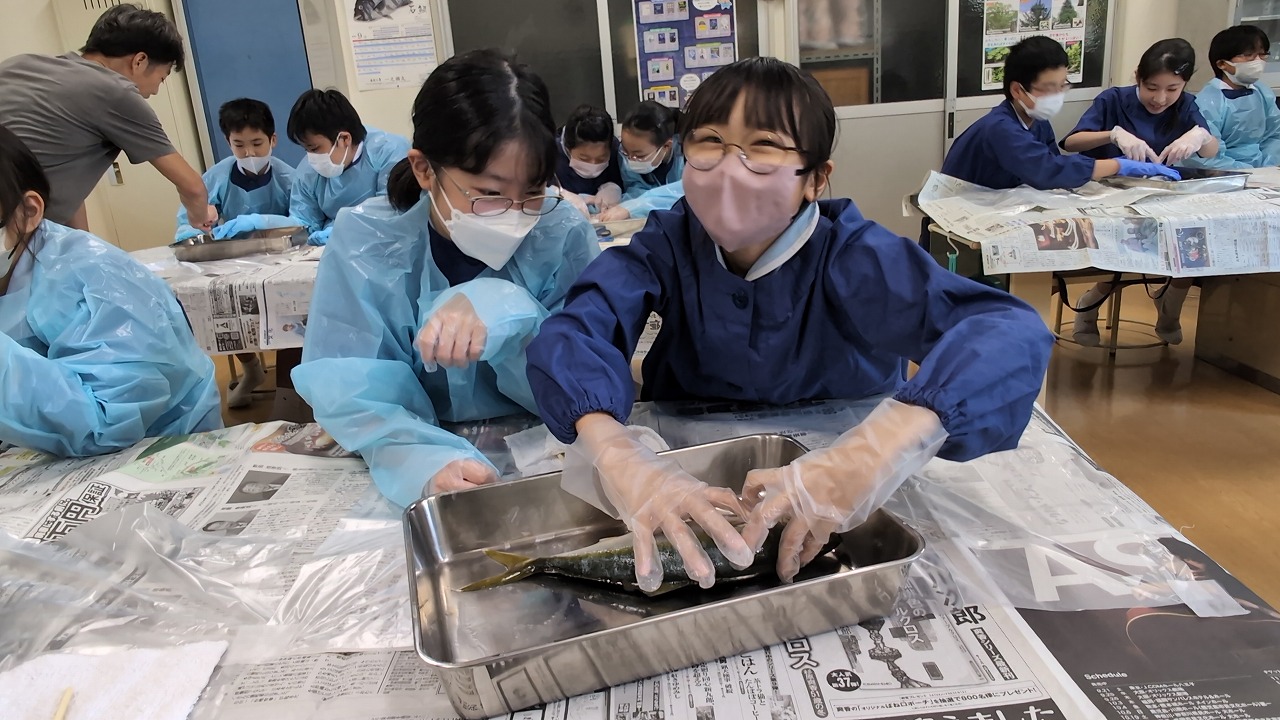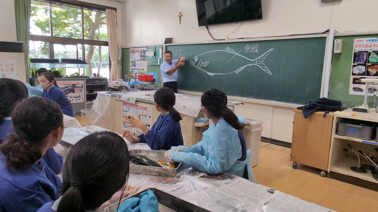 6年生が理科の学習の一環で「魚の観察」を行いました。校長先生の名物授業で、毎年この授業のために、校長先生自ら船に乗って相模湾でイナダを釣ってきます。