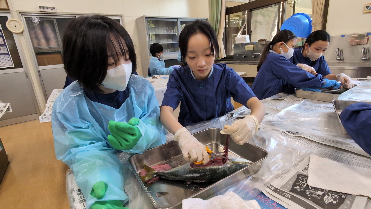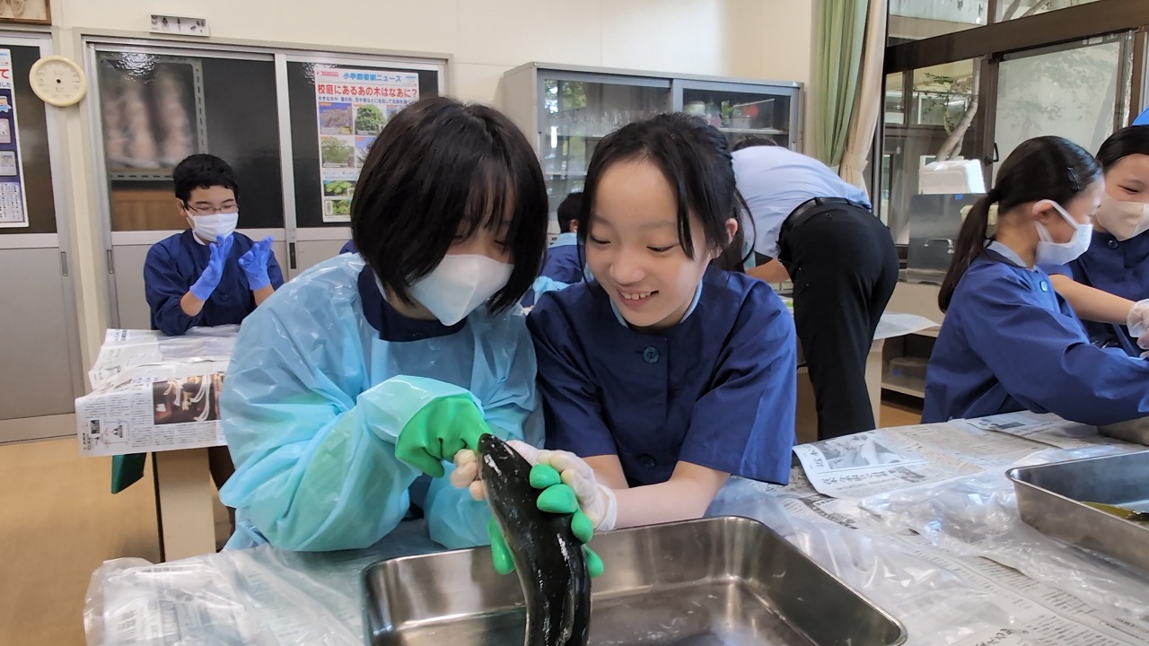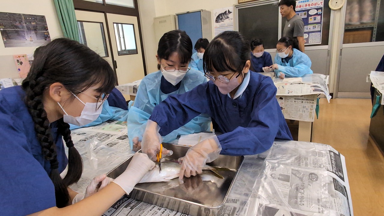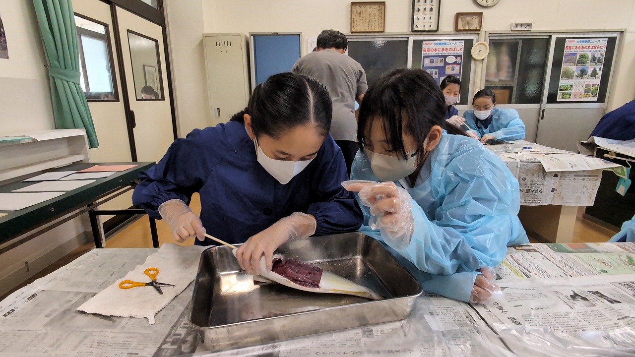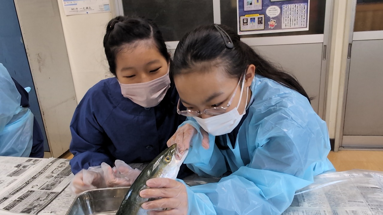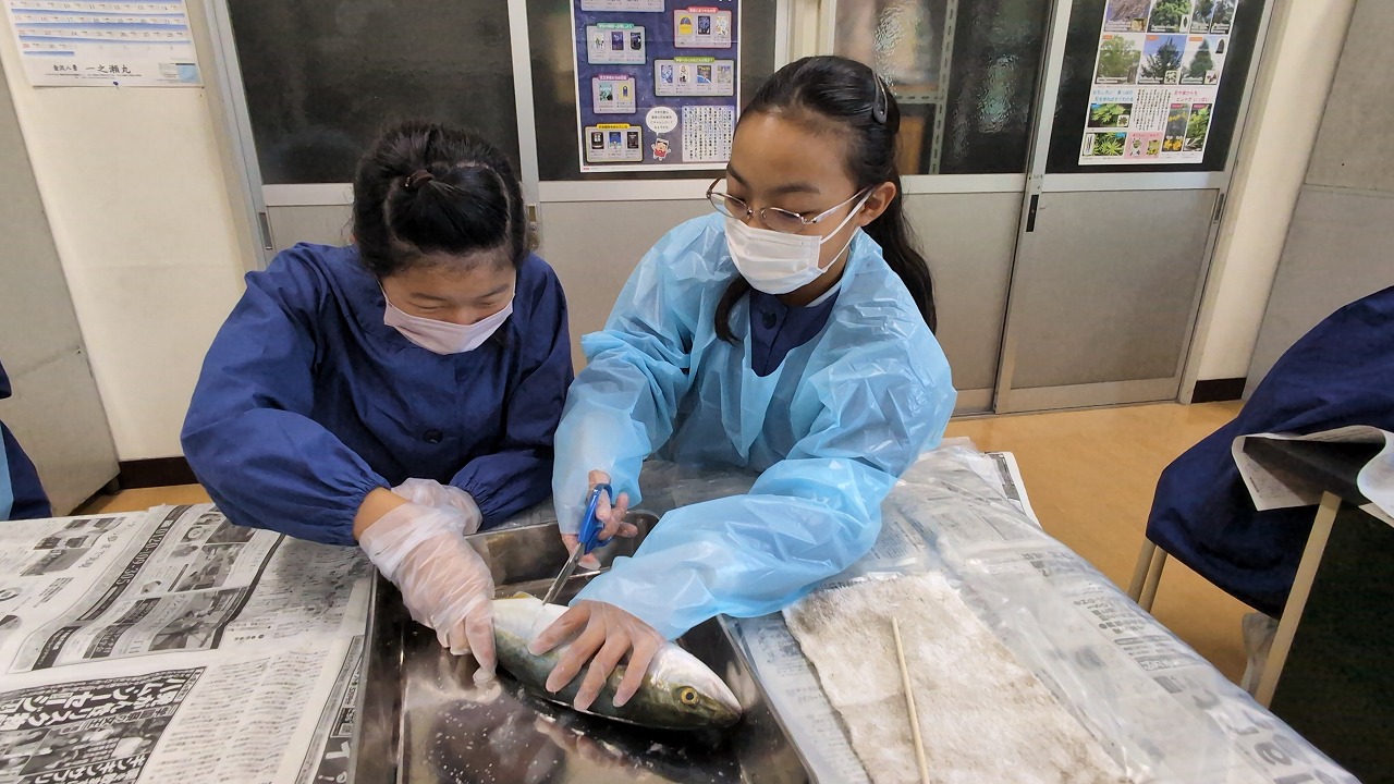 6年生が理科の学習の一環で「魚の観察」を行いました。校長先生の名物授業で、毎年この授業のために、校長先生自ら船に乗って相模湾でイナダを釣ってきます。