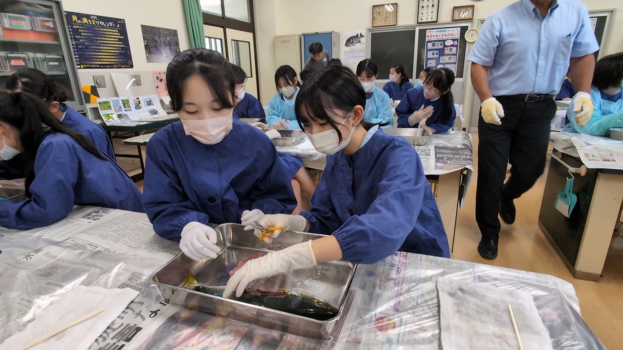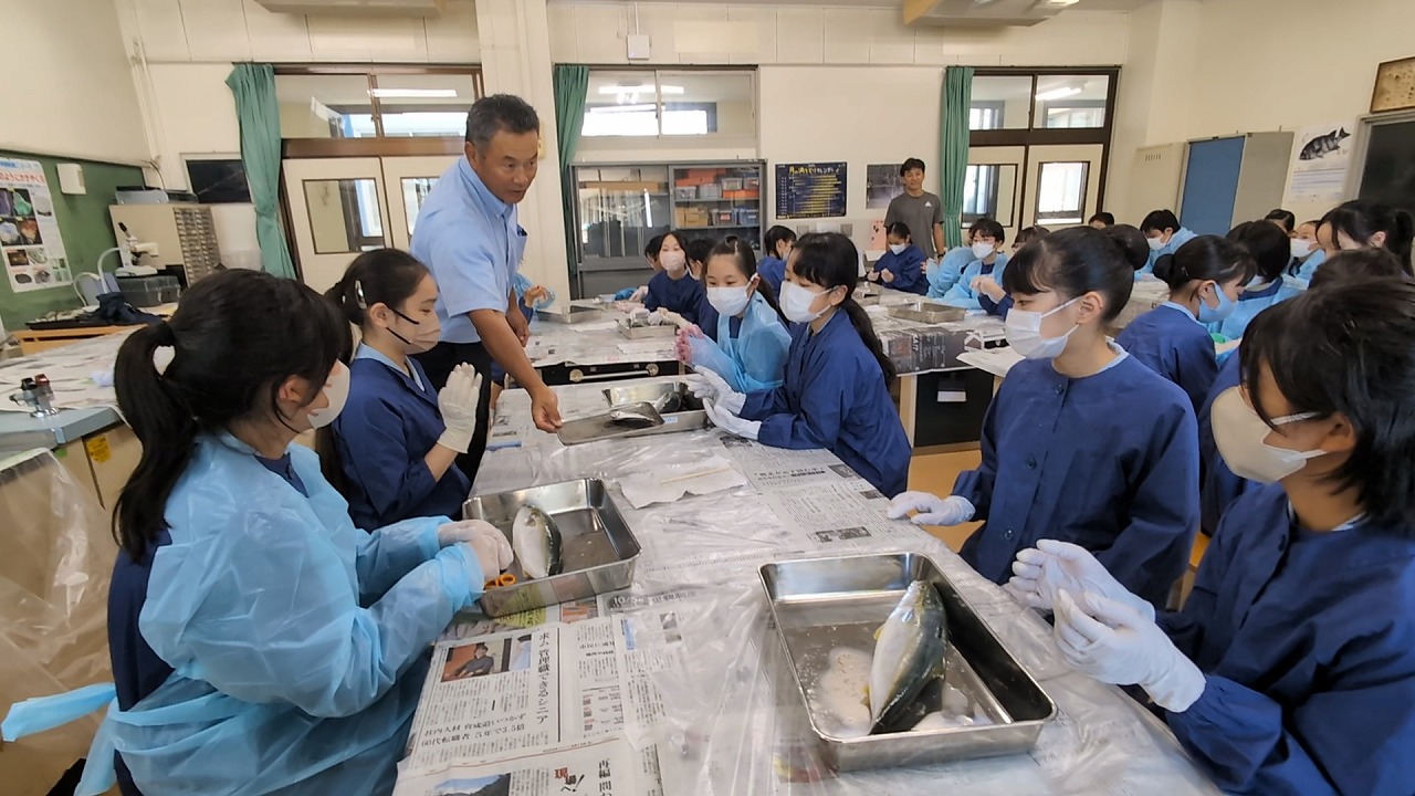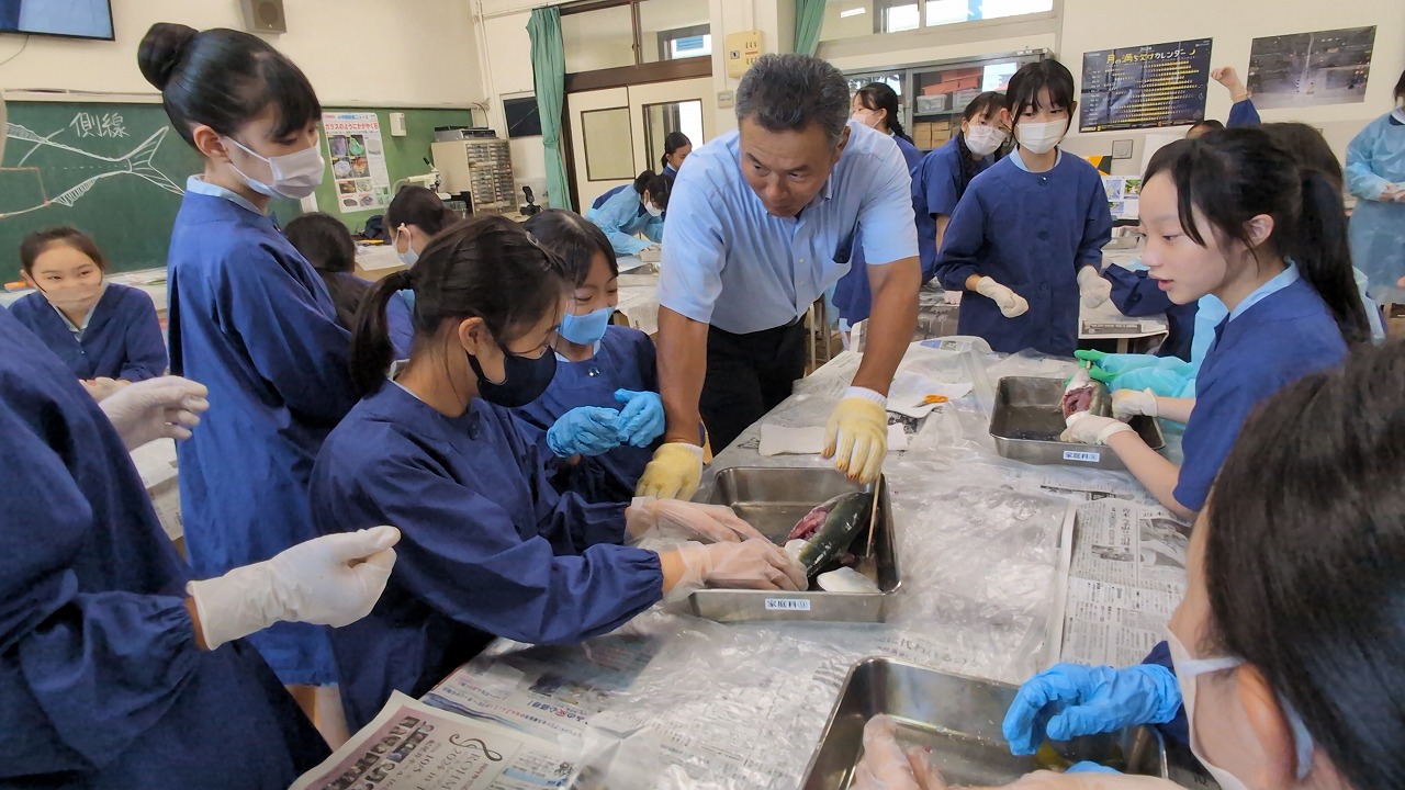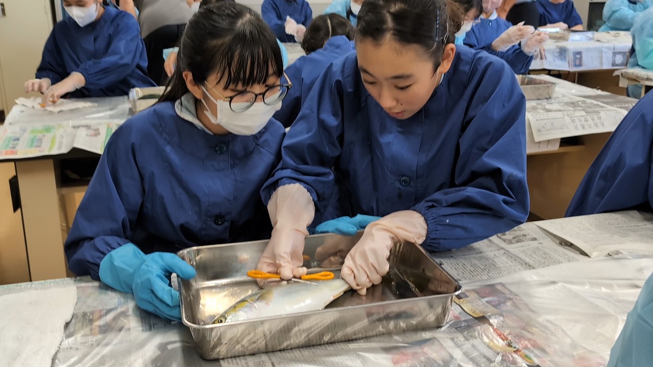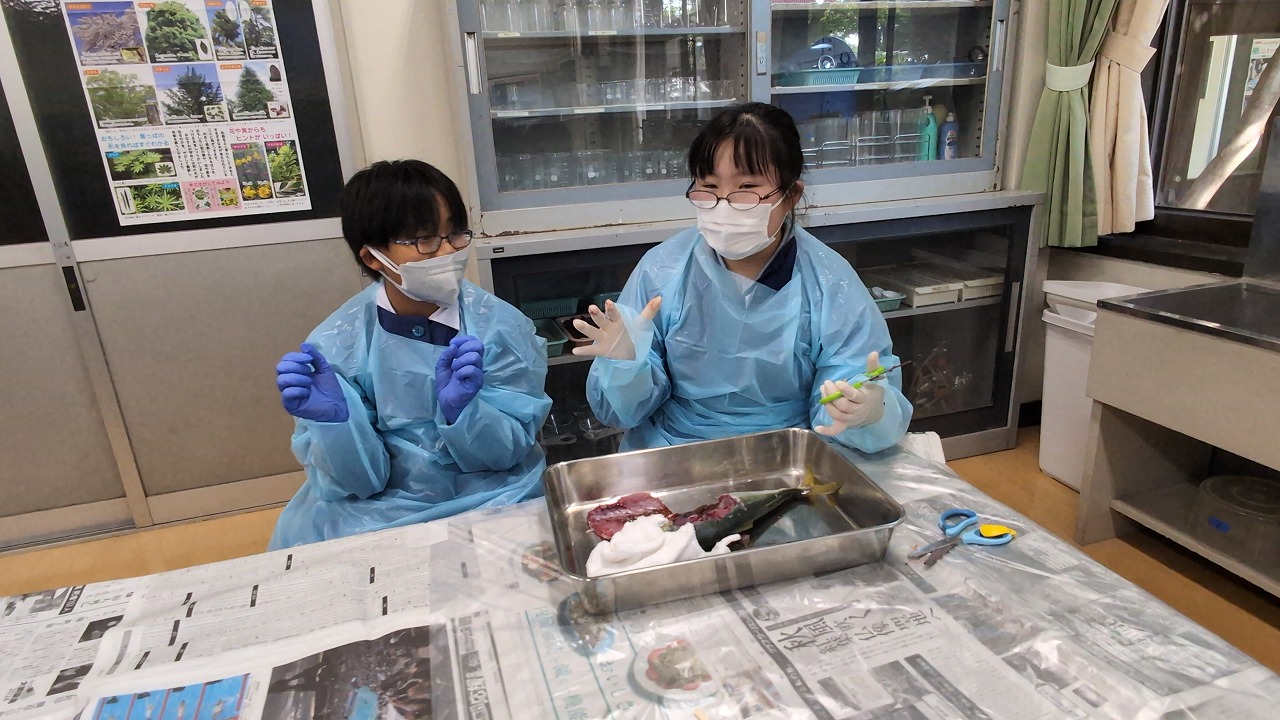 6年生が理科の学習の一環で「魚の観察」を行いました。校長先生の名物授業で、毎年この授業のために、校長先生自ら船に乗って相模湾でイナダを釣ってきます。