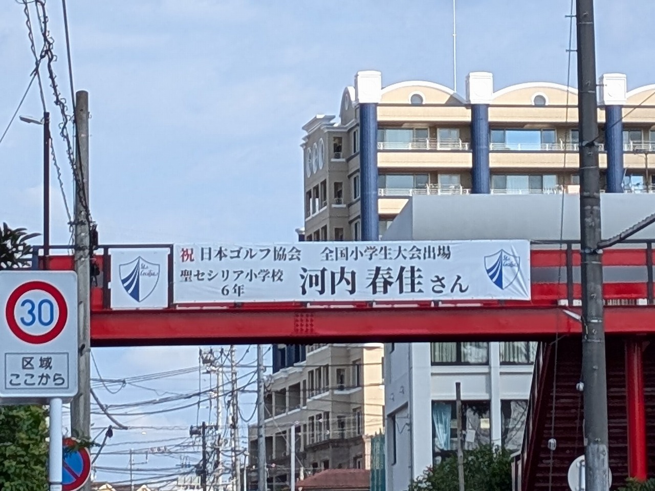 本校の6年生が神奈川県や関東地区の予選を勝ち抜き、ゴルフの「全国大会」に出場することが決まりました。それをお祝いして、校内に応援バナーを設置しました。皆さん、応援よろしくお願いします。