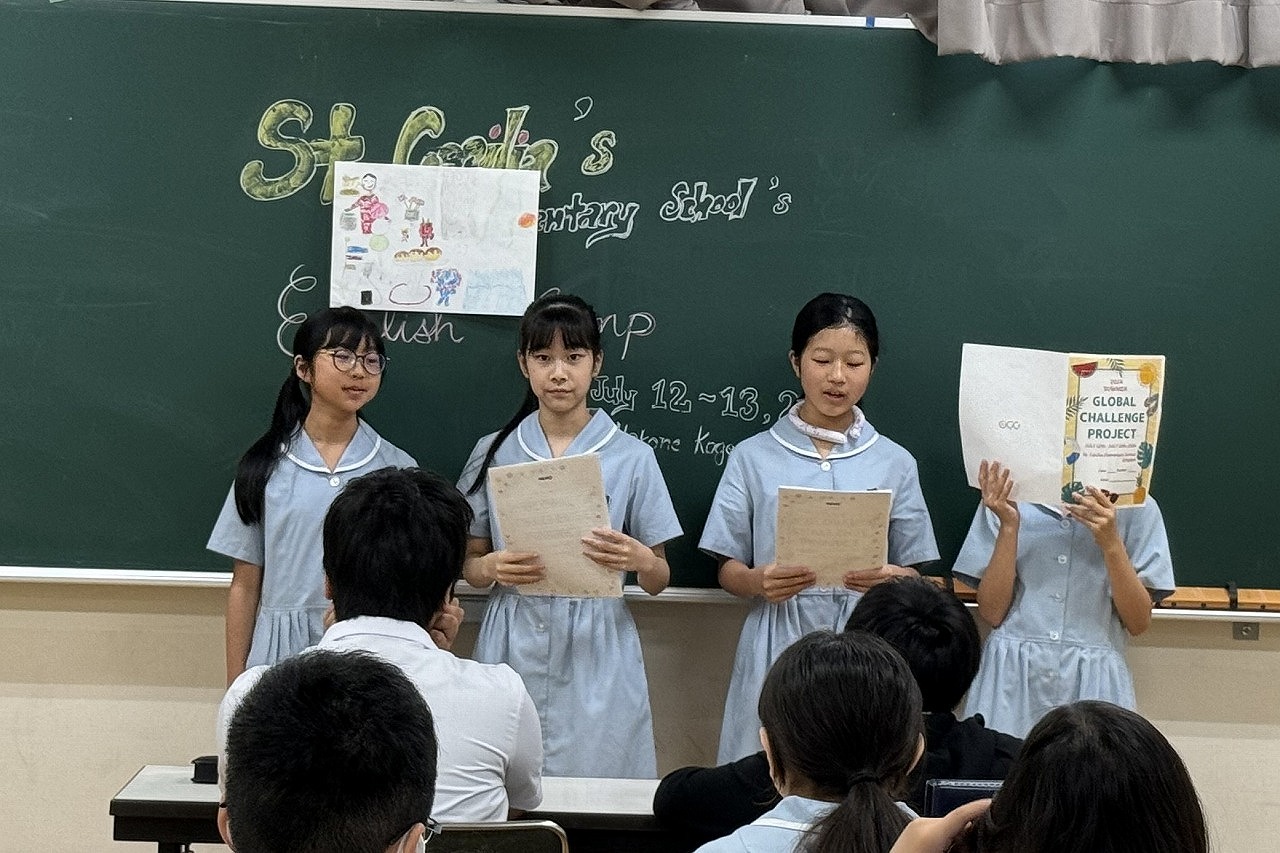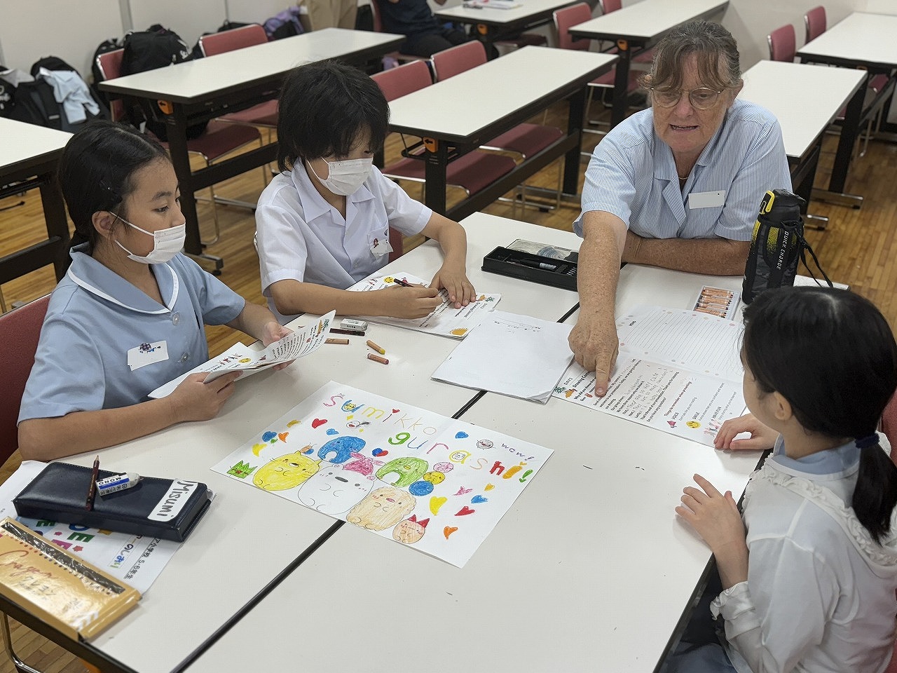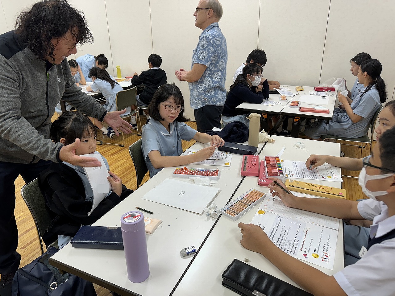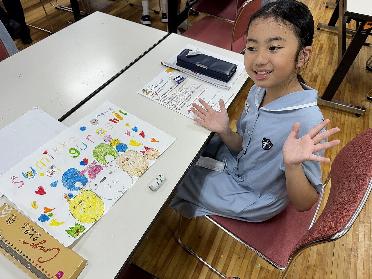 今日も、オールイングリッシュの環境で、様々な英語活動を行っています。先生方ともすっかりうちとけて、アートコンテストをしたり、プレゼンテーションをしたりしました。修了式の頃には、名残惜しそうな子も・・・。心を込めて作ったThank You Cardを渡して、感謝の気持ちを伝えました。