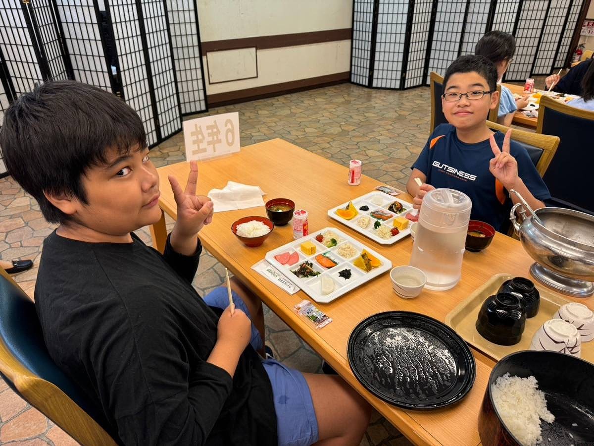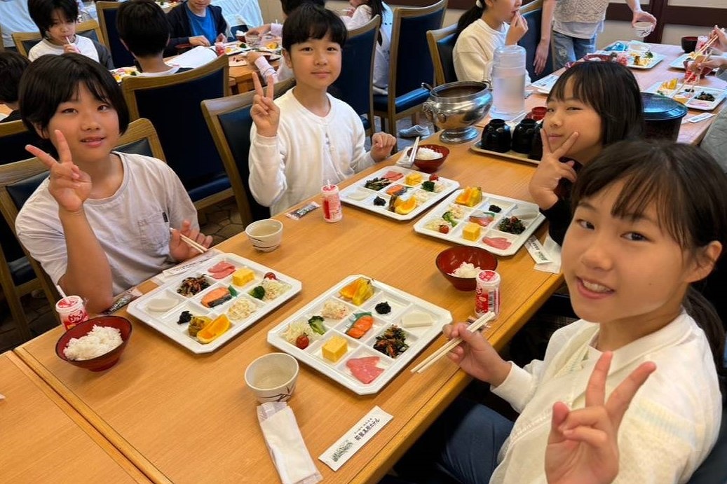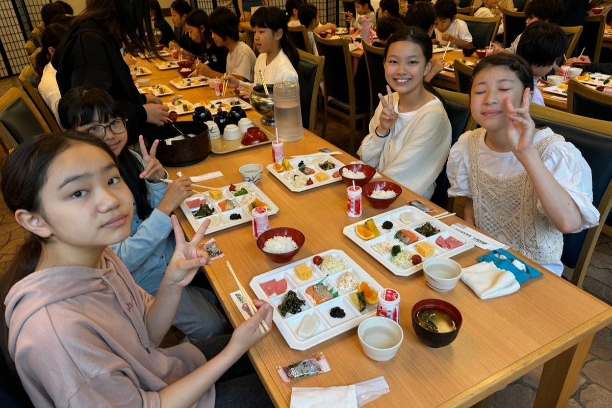 5~6年生は、English Tourで朝食をとっています。みんな元気です。