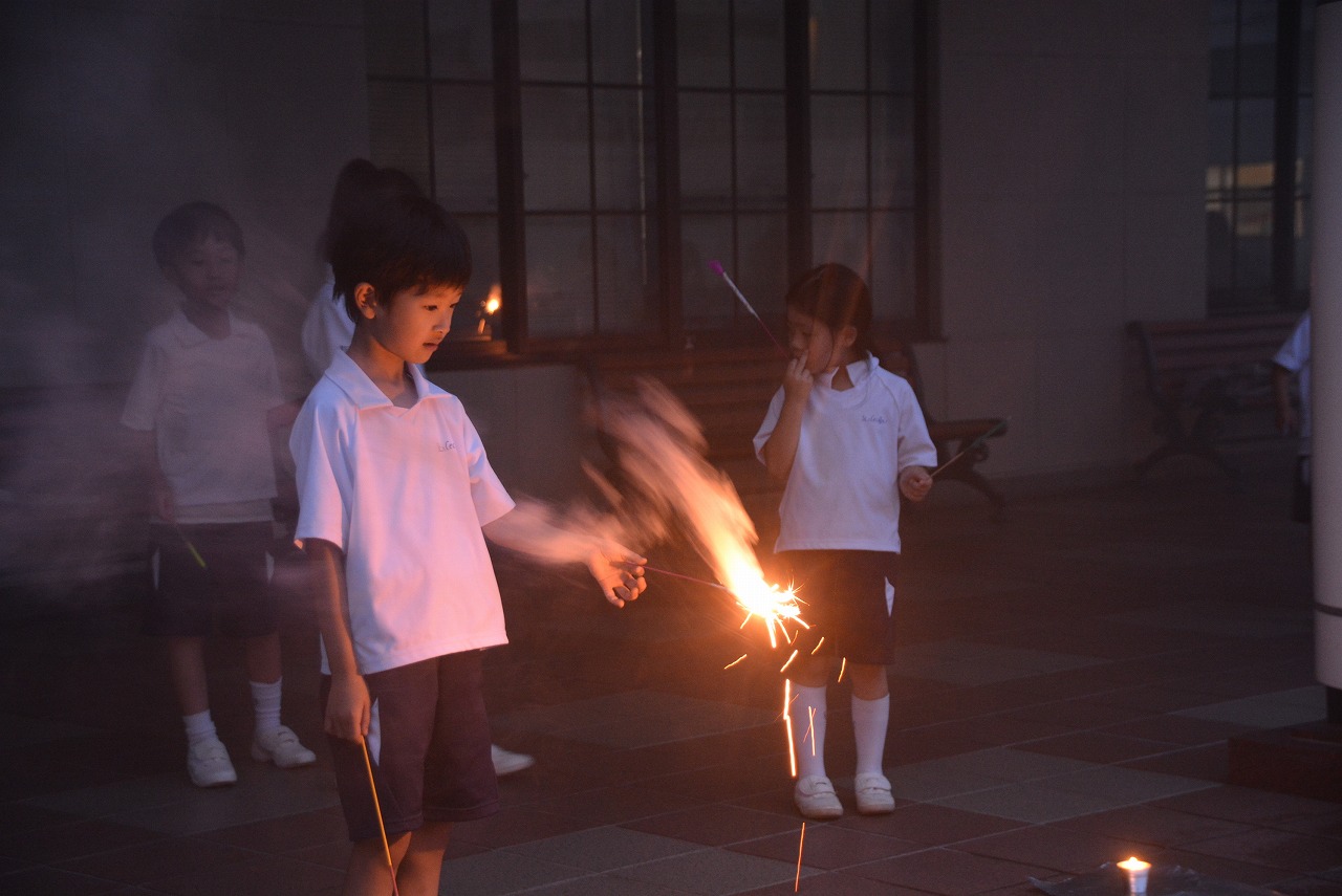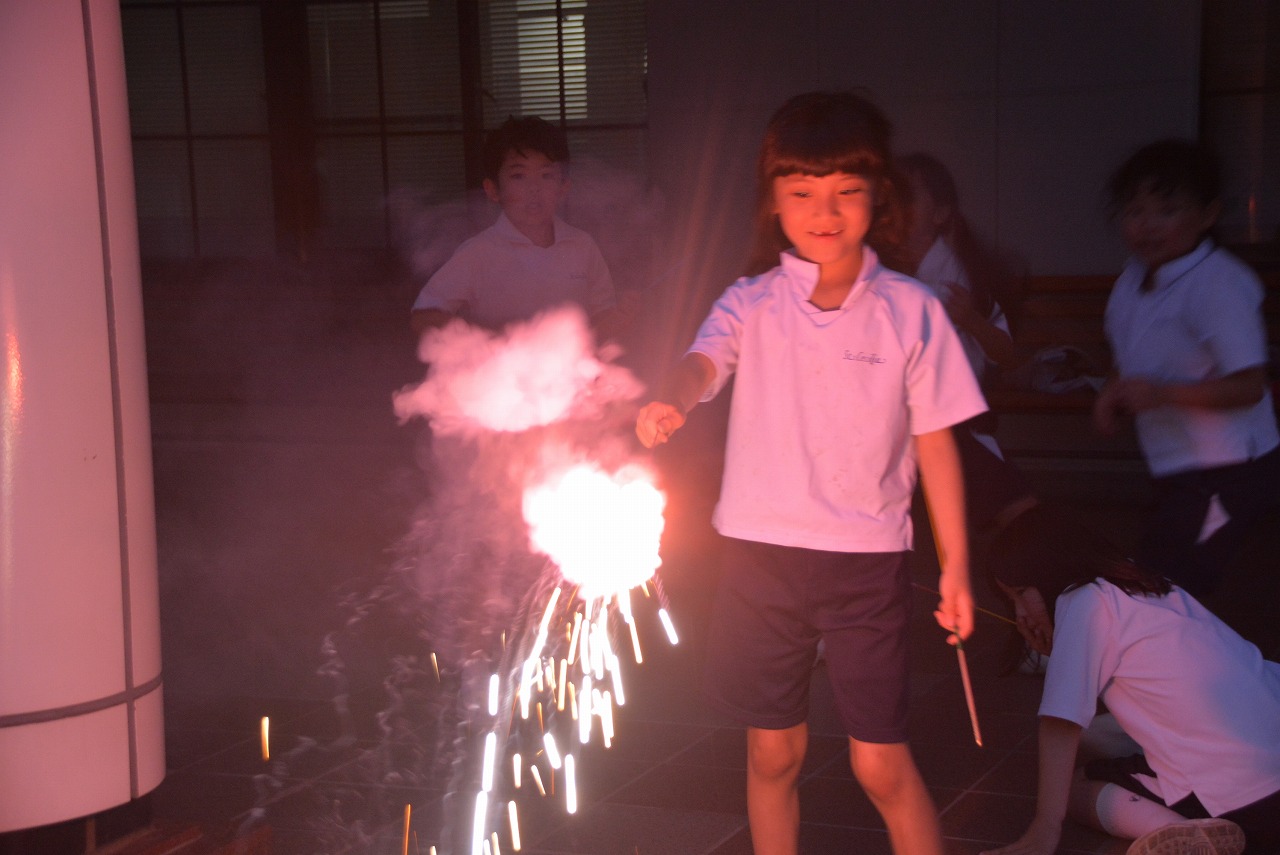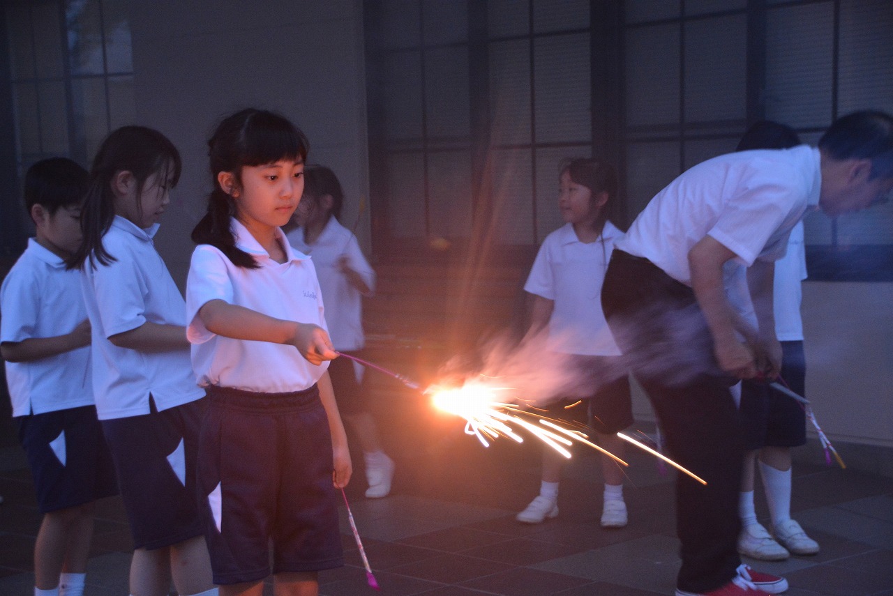 2年生は、夕食のあとも、夜の学校を楽しんでいます。いつもとは違う学校の風景にドキドキしながらも、花火をしたり、ナイトプールをしたりと、特別な体験の数々に心を躍らせていました。