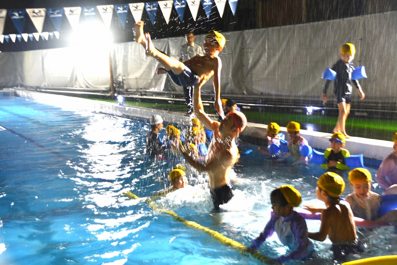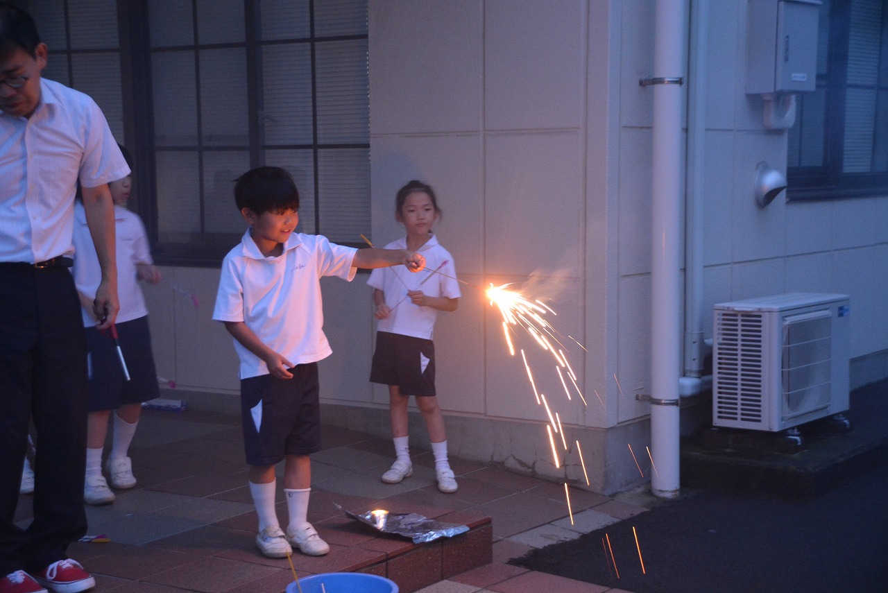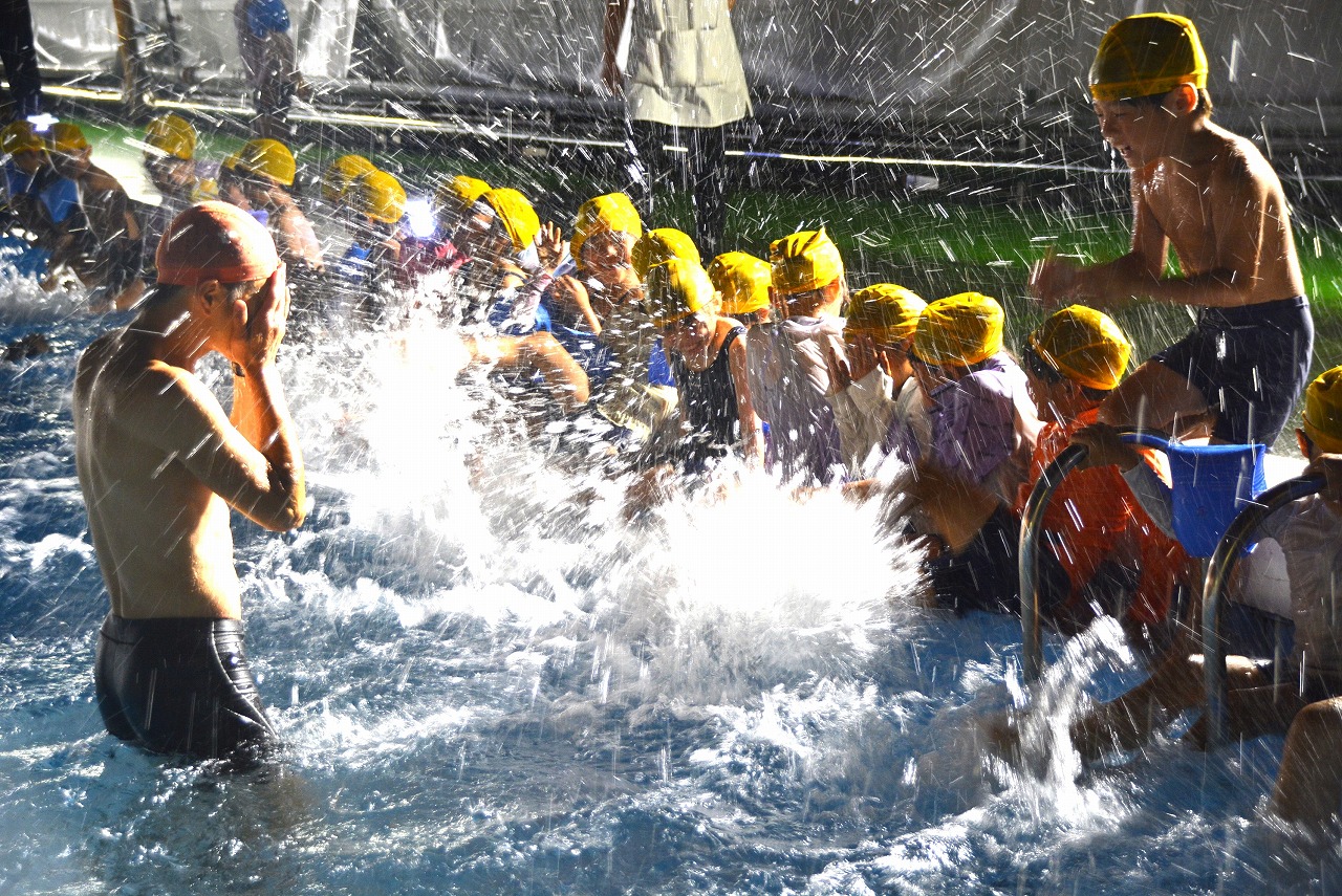 2年生は、夕食のあとも、夜の学校を楽しんでいます。いつもとは違う学校の風景にドキドキしながらも、花火をしたり、ナイトプールをしたりと、特別な体験の数々に心を躍らせていました。