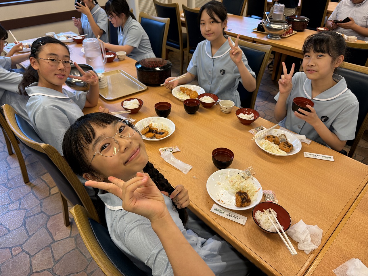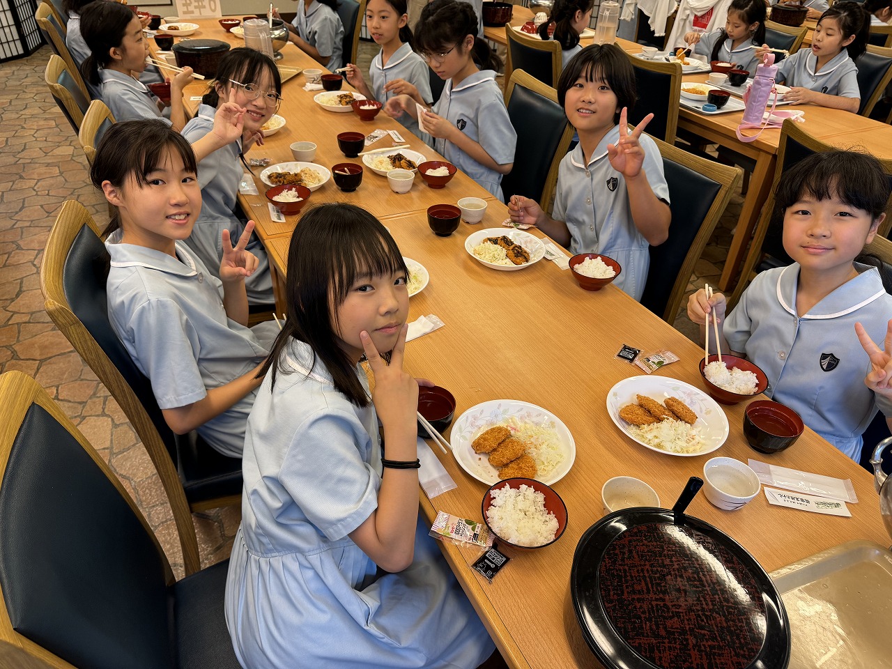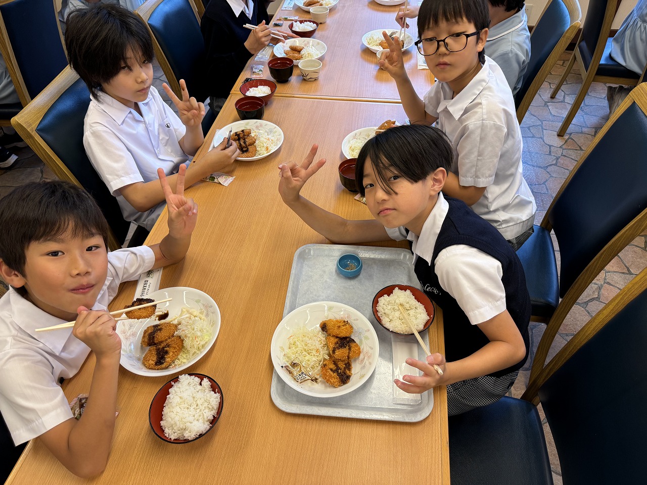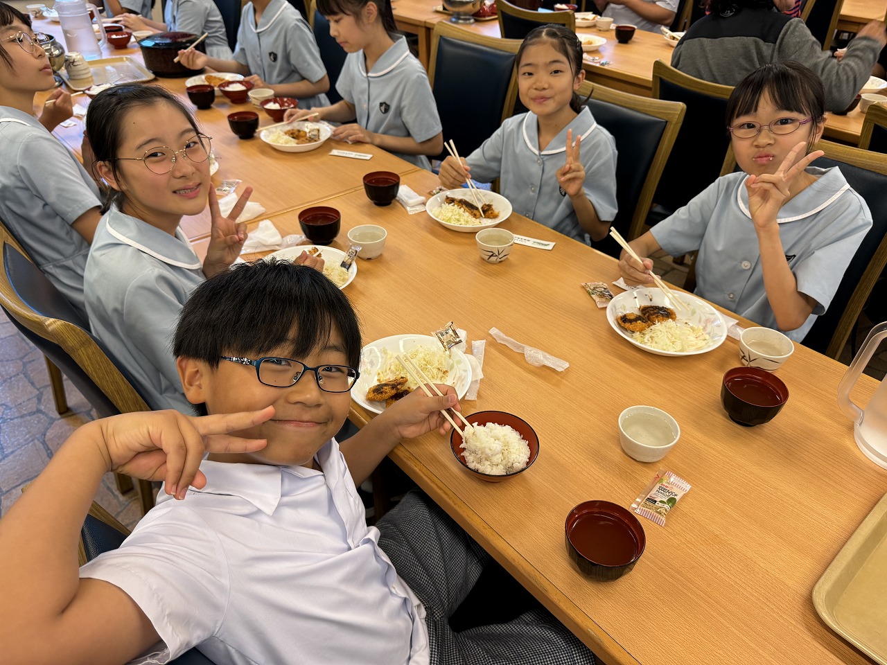 5~6年生は、English Tourに出かけました。行きのバスからネイティブ講師と一緒になって、楽しく向かい、到着先で、早速、昼食をいただきました。
