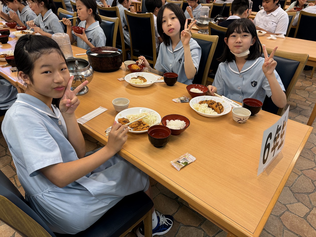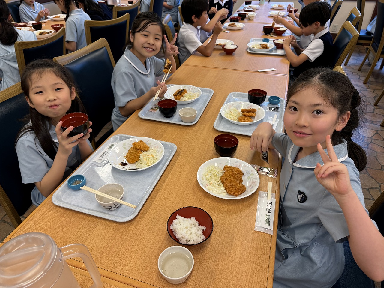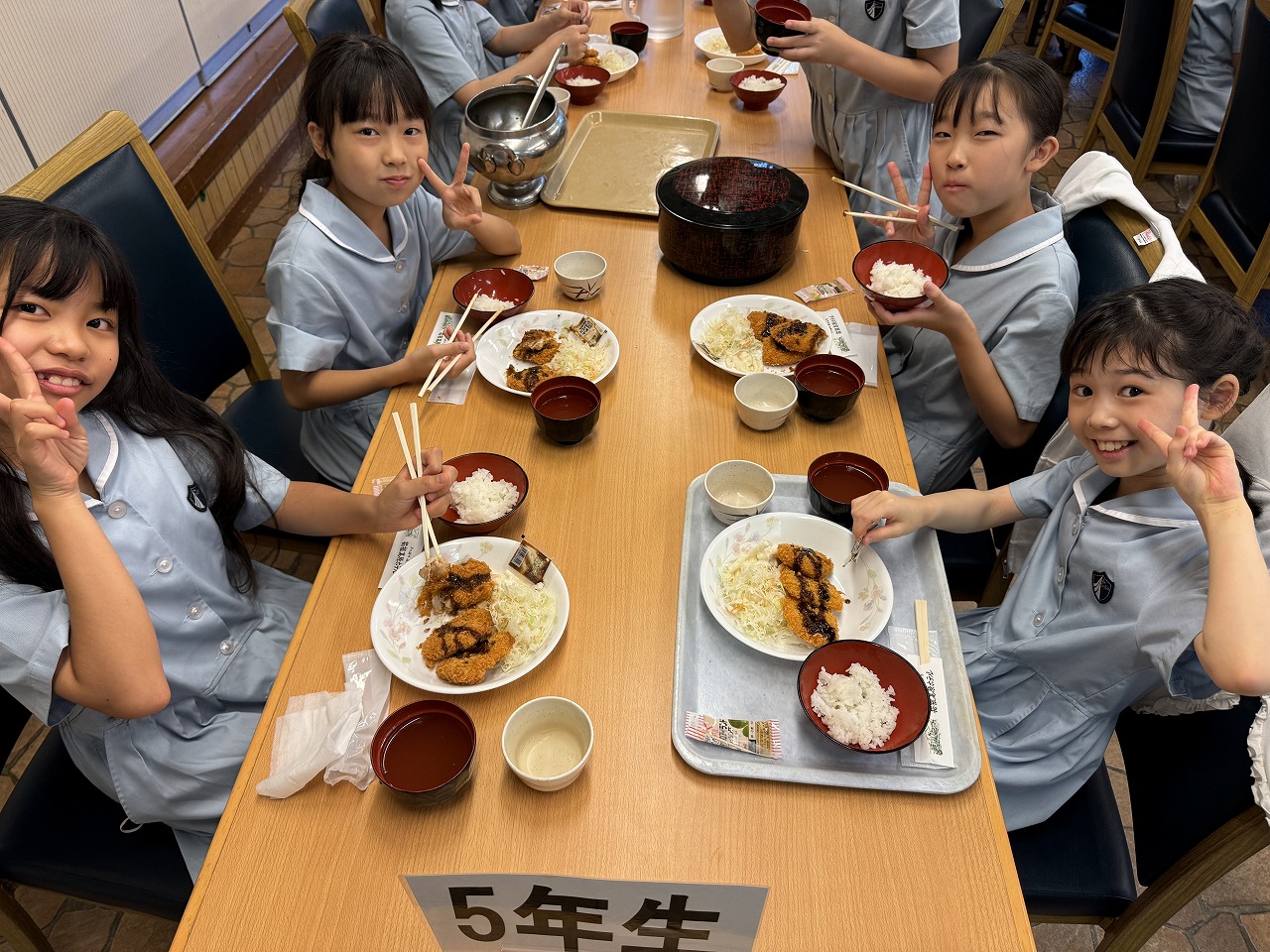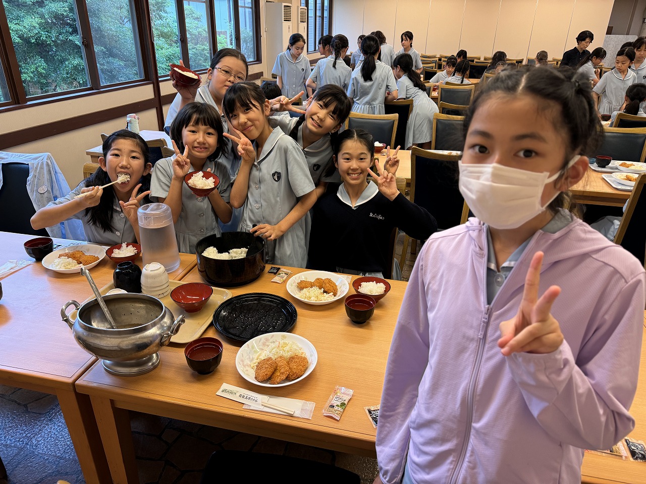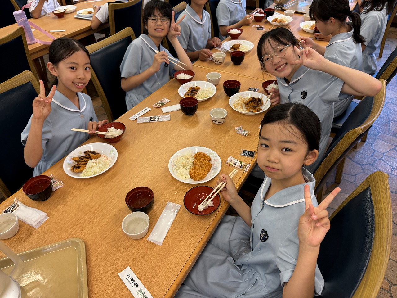 5~6年生は、English Tourに出かけました。行きのバスからネイティブ講師と一緒になって、楽しく向かい、到着先で、早速、昼食をいただきました。