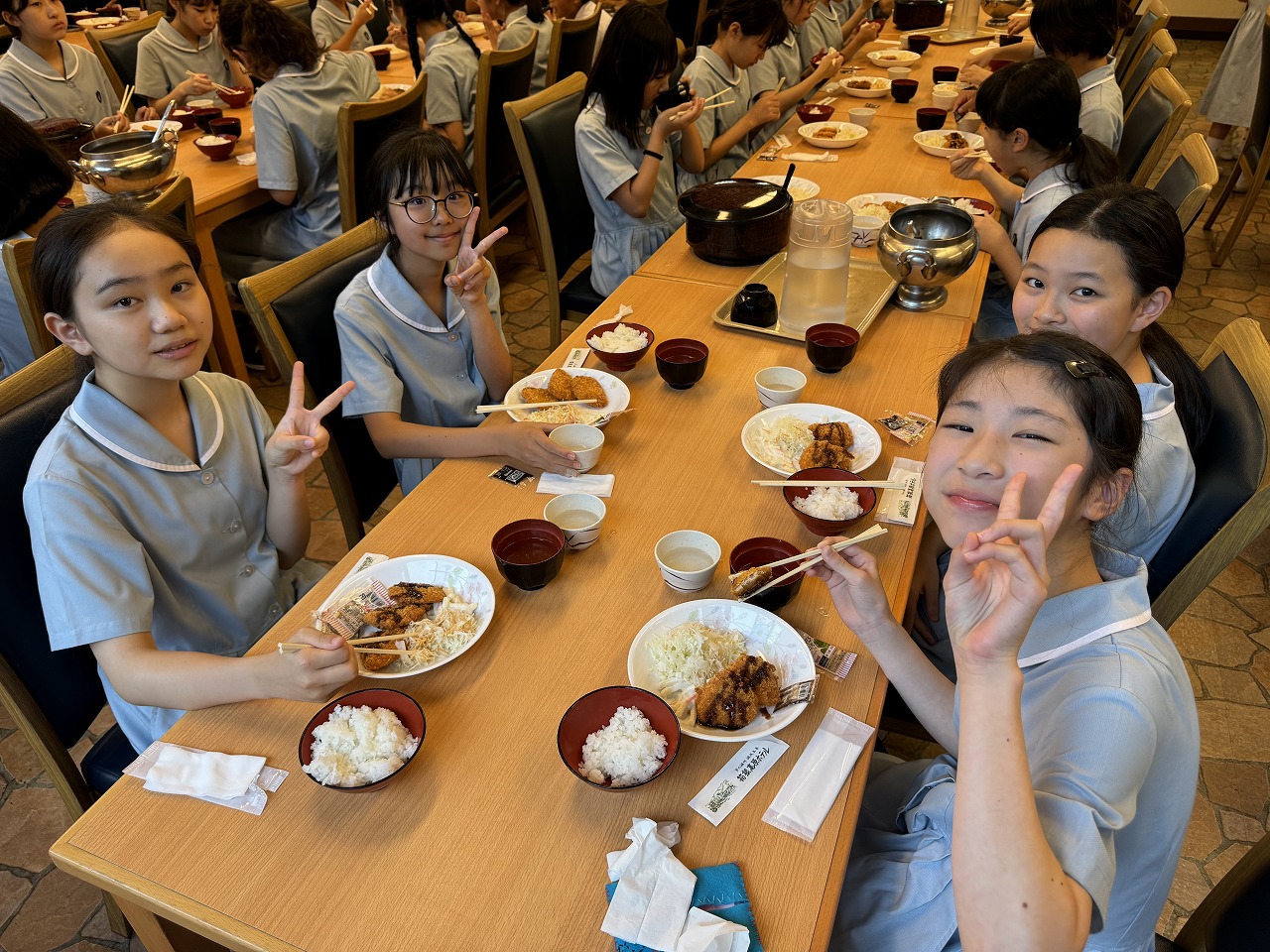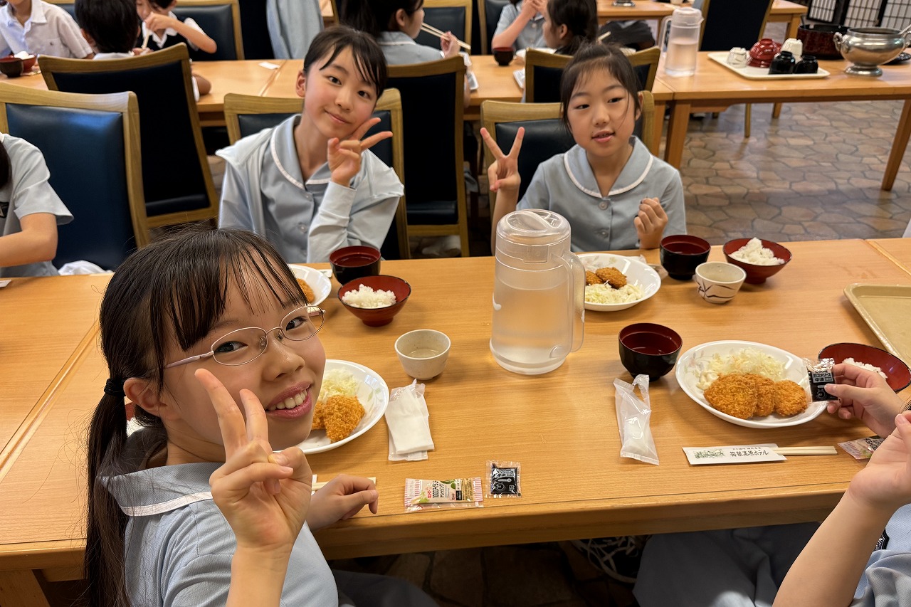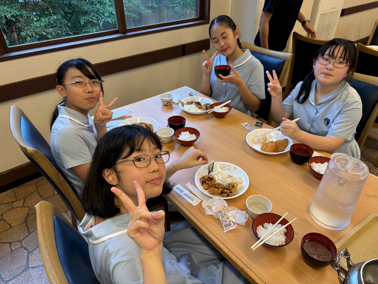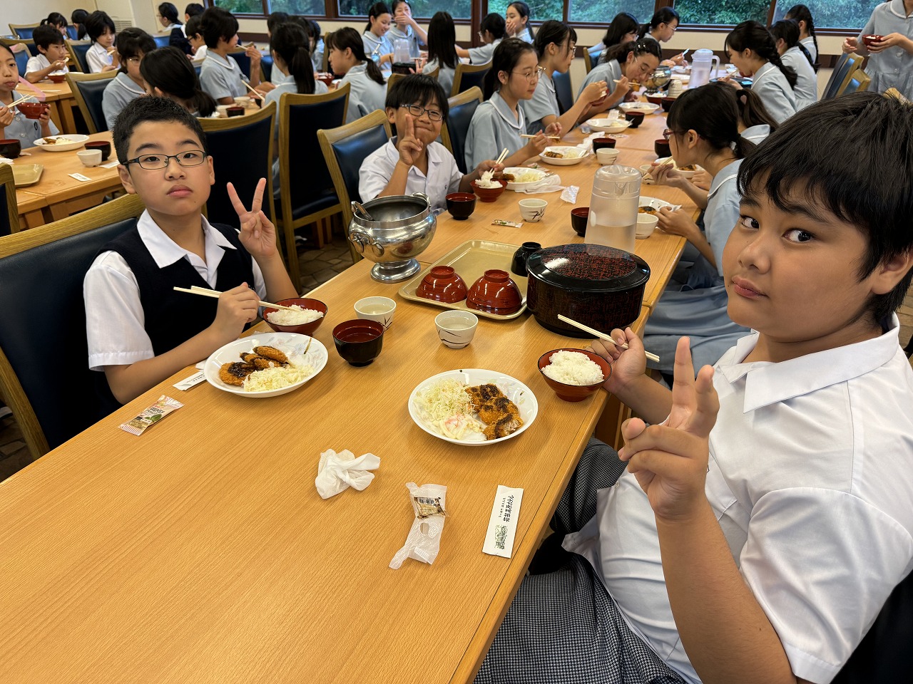 5~6年生は、English Tourに出かけました。行きのバスからネイティブ講師と一緒になって、楽しく向かい、到着先で、早速、昼食をいただきました。