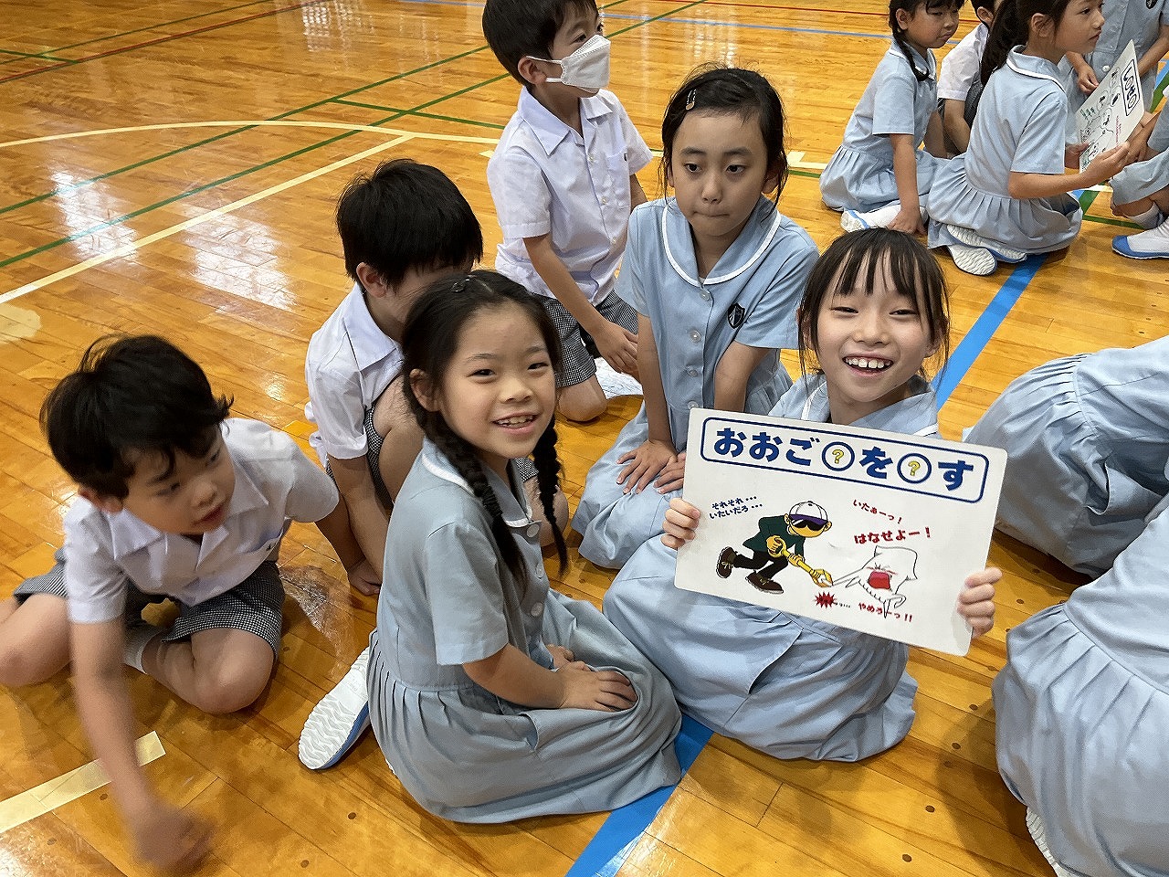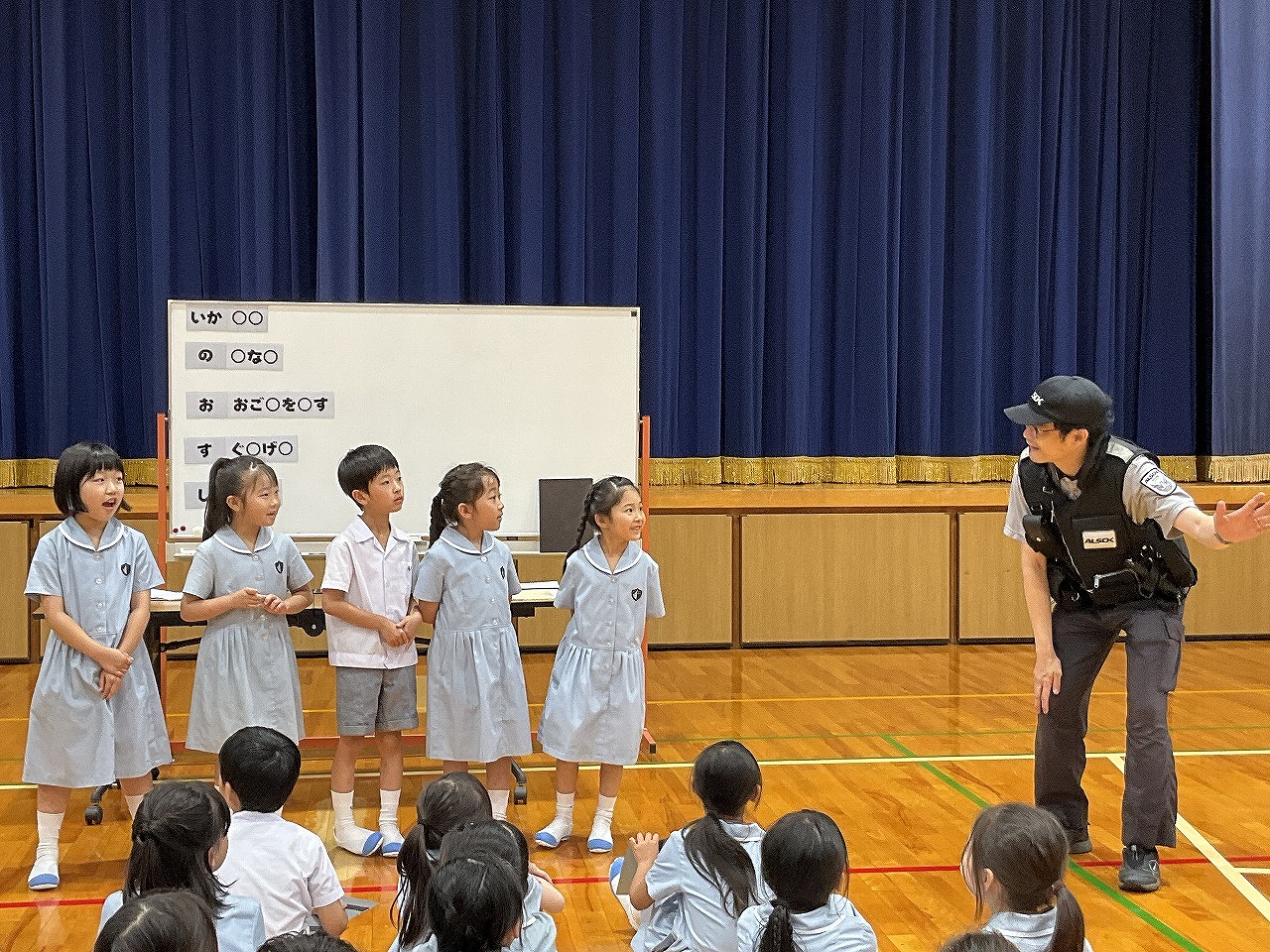 ALSOKの方に学校に来ていただき、「あんしん教室」を行いました。1・2年生は「いかのおすし」というキーワードをもとに、登下校中の自分の身を自分で守る術を学びました。3・4年生は「いいゆだな」をいうキーワードをもとに、留守番を始める前の防犯の心構えを学びました。防犯ブザーの使い方について確認したり、不審な電話に受け答えする体験をしたりと、初めて知ることもたくさんありました。自分の身を自分で守ることの大切さを学ぶよい機会となったようです。