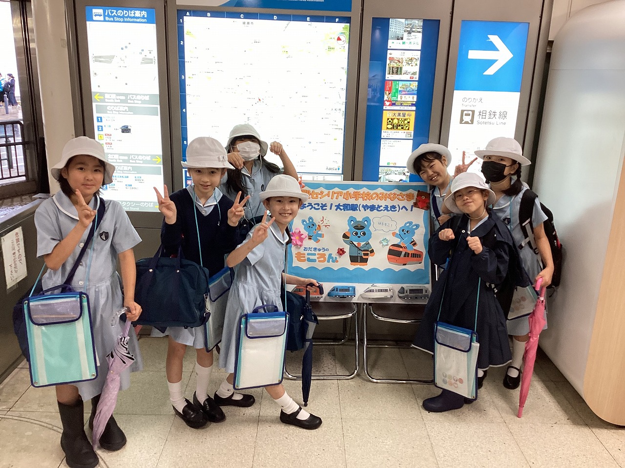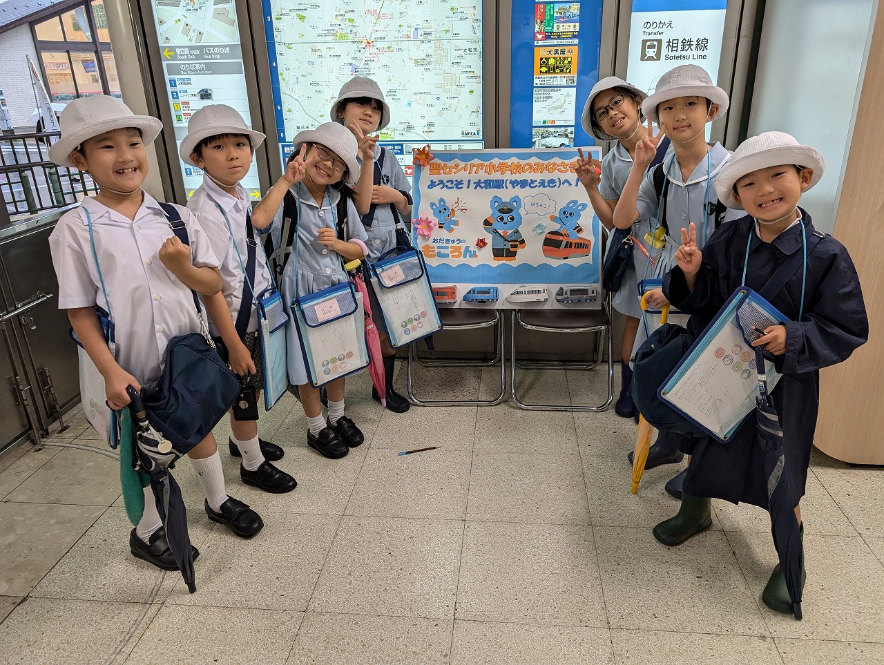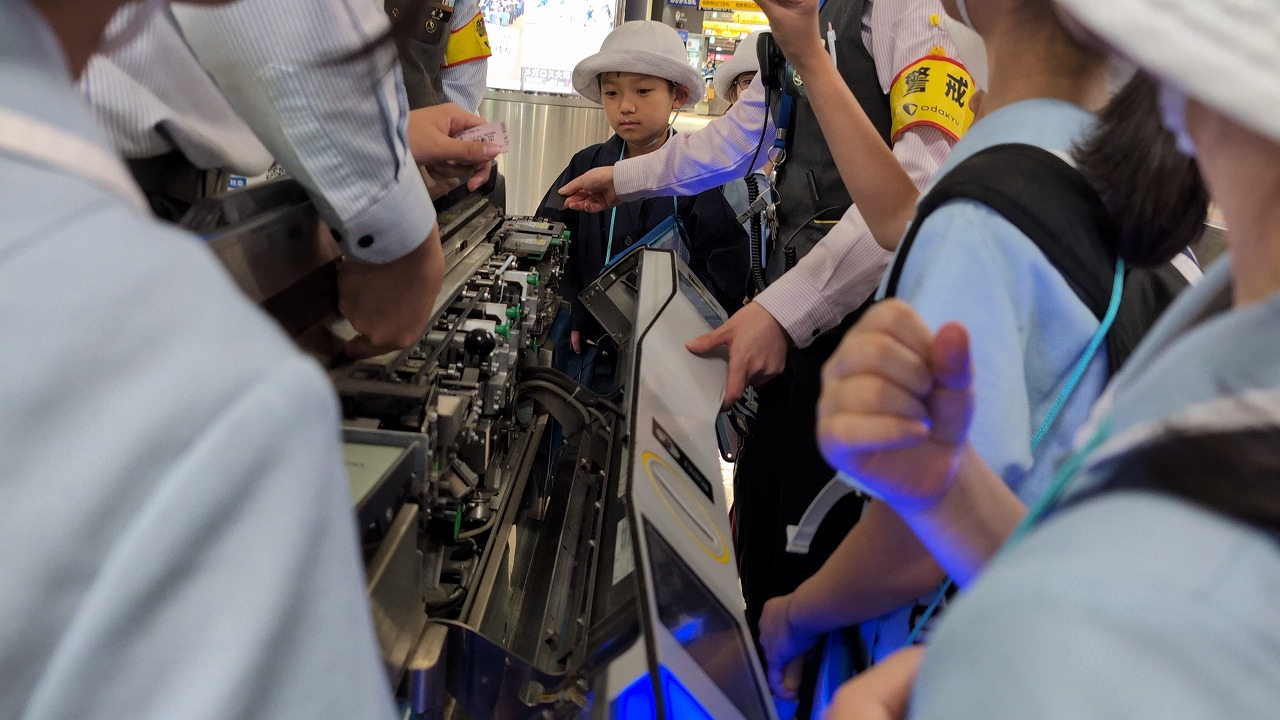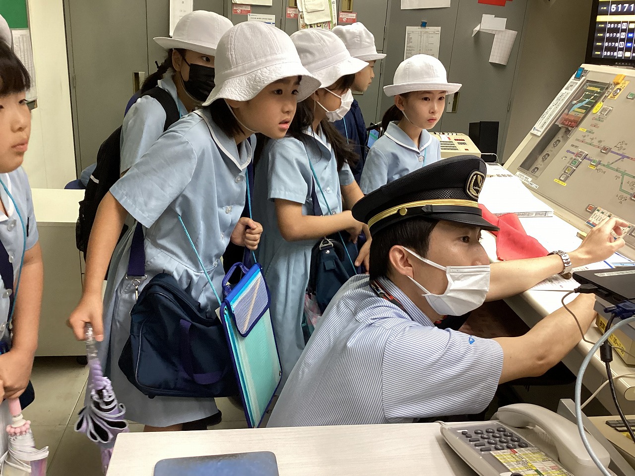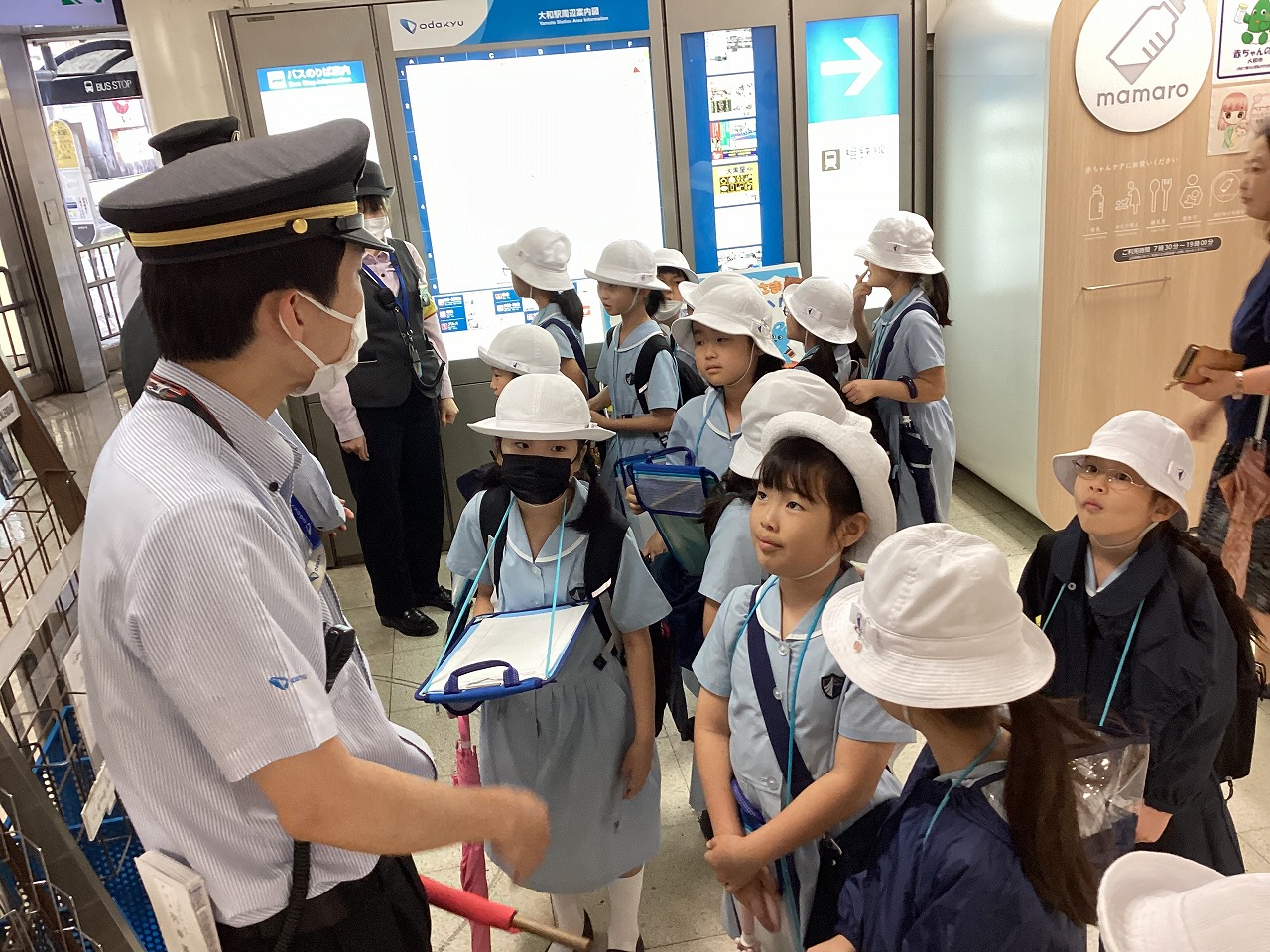 3年生が社会科見学で、『大和駅』に行きました。小田急電鉄の駅員さんが、手作りの看板で出迎えてくださり、鉄道会社の方のお仕事や、様々な安全の工夫について教えてくださいました。自動改札機の内側や自動券売機の裏側、列車運行確認パネルなど、普段は見ることのできない場所もたくさん見せてくださって、子どもたちは興味津々。見学終了後も、運転士さんや車掌さん、駅員さんのお仕事について話し合っていました。