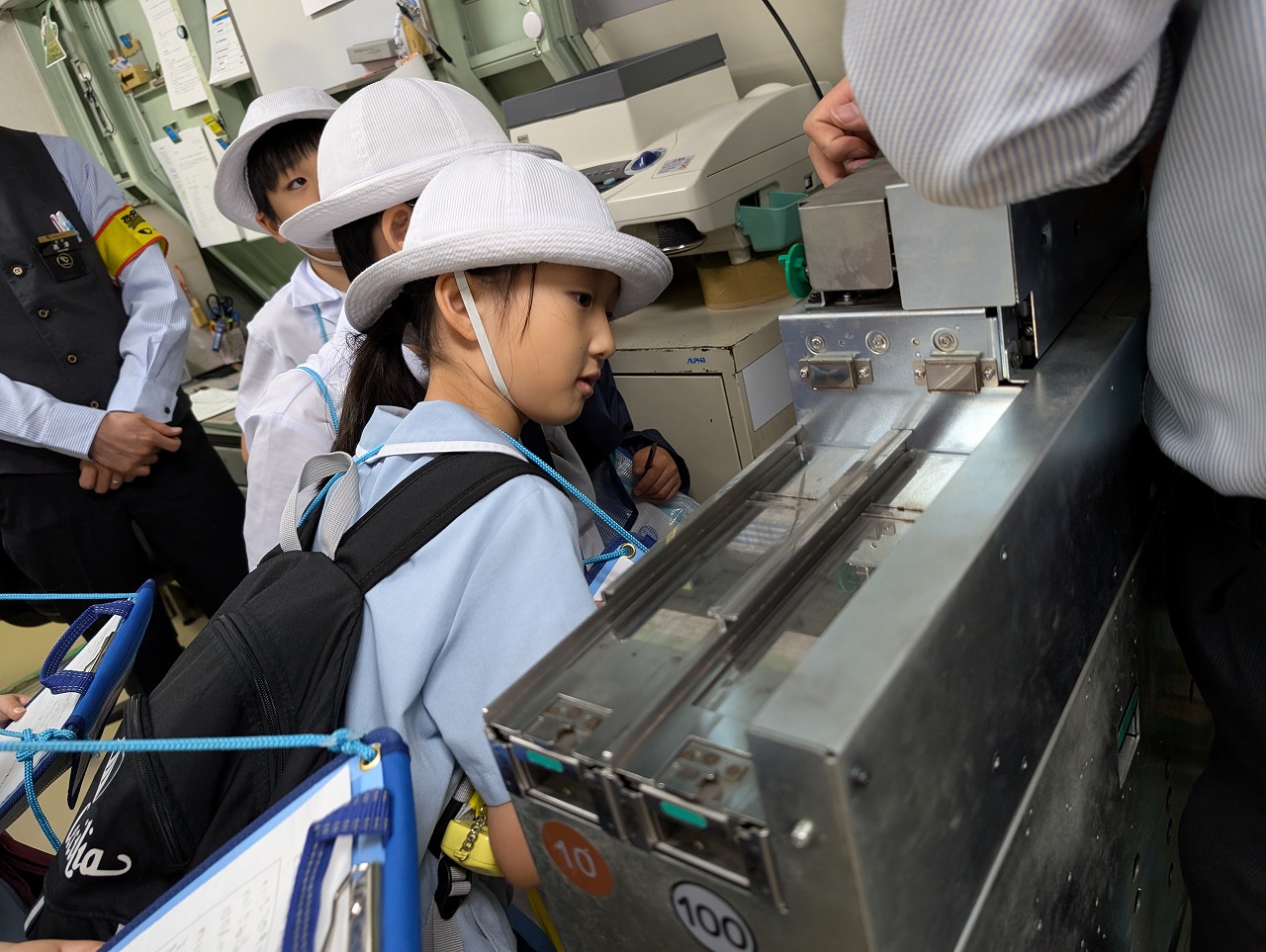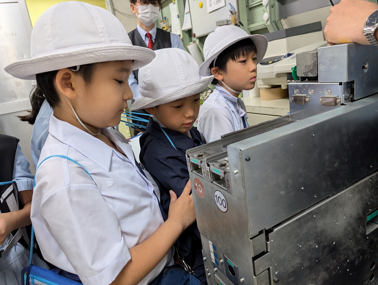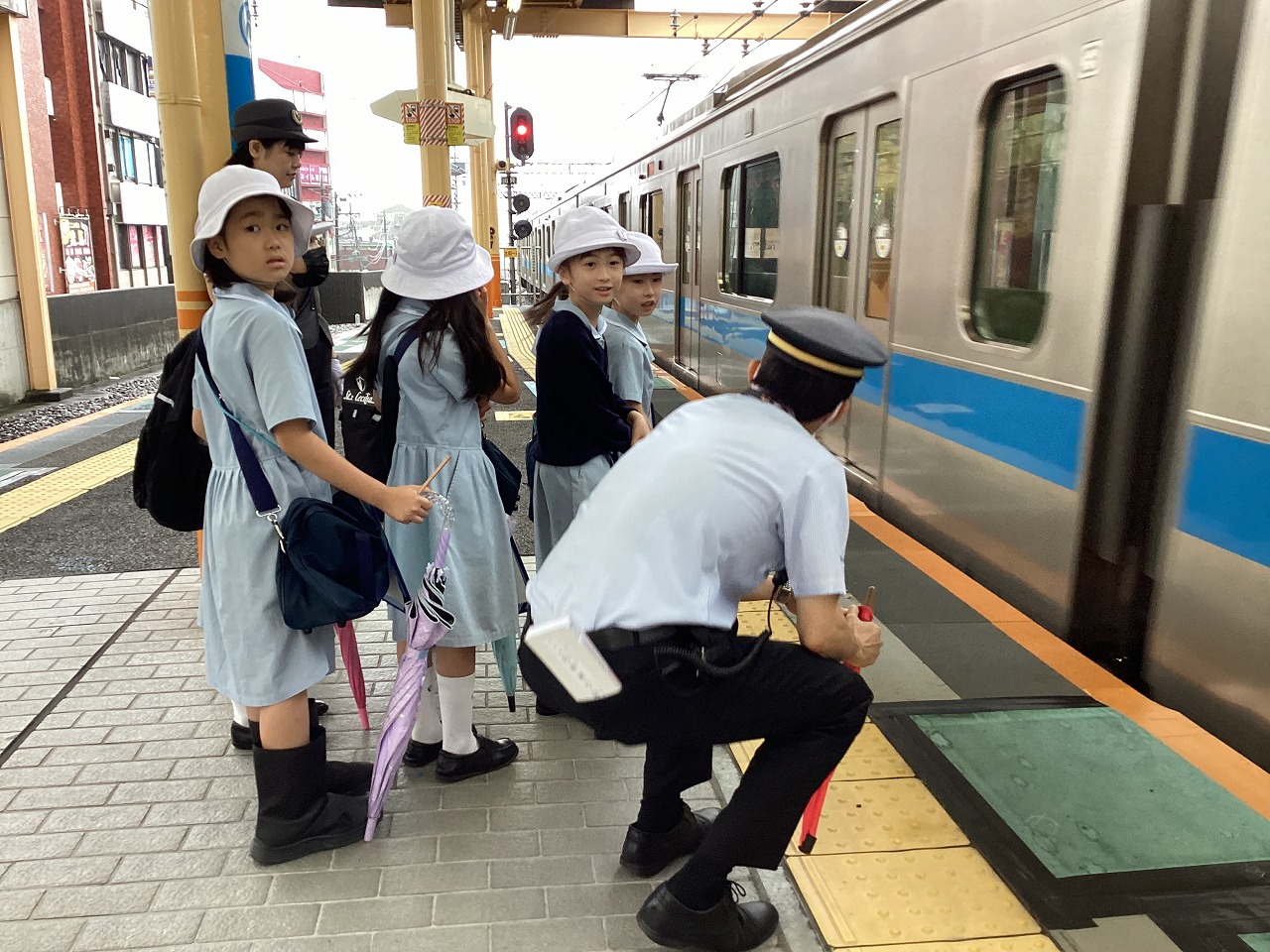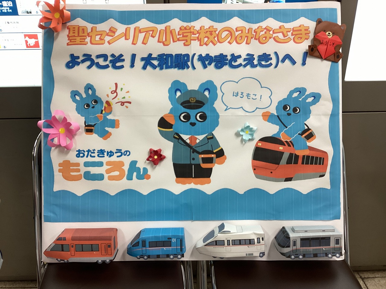 3年生が社会科見学で、『大和駅』に行きました。小田急電鉄の駅員さんが、手作りの看板で出迎えてくださり、鉄道会社の方のお仕事や、様々な安全の工夫について教えてくださいました。自動改札機の内側や自動券売機の裏側、列車運行確認パネルなど、普段は見ることのできない場所もたくさん見せてくださって、子どもたちは興味津々。見学終了後も、運転士さんや車掌さん、駅員さんのお仕事について話し合っていました。