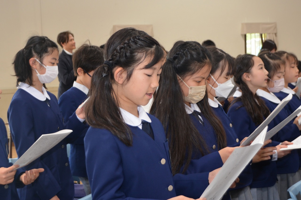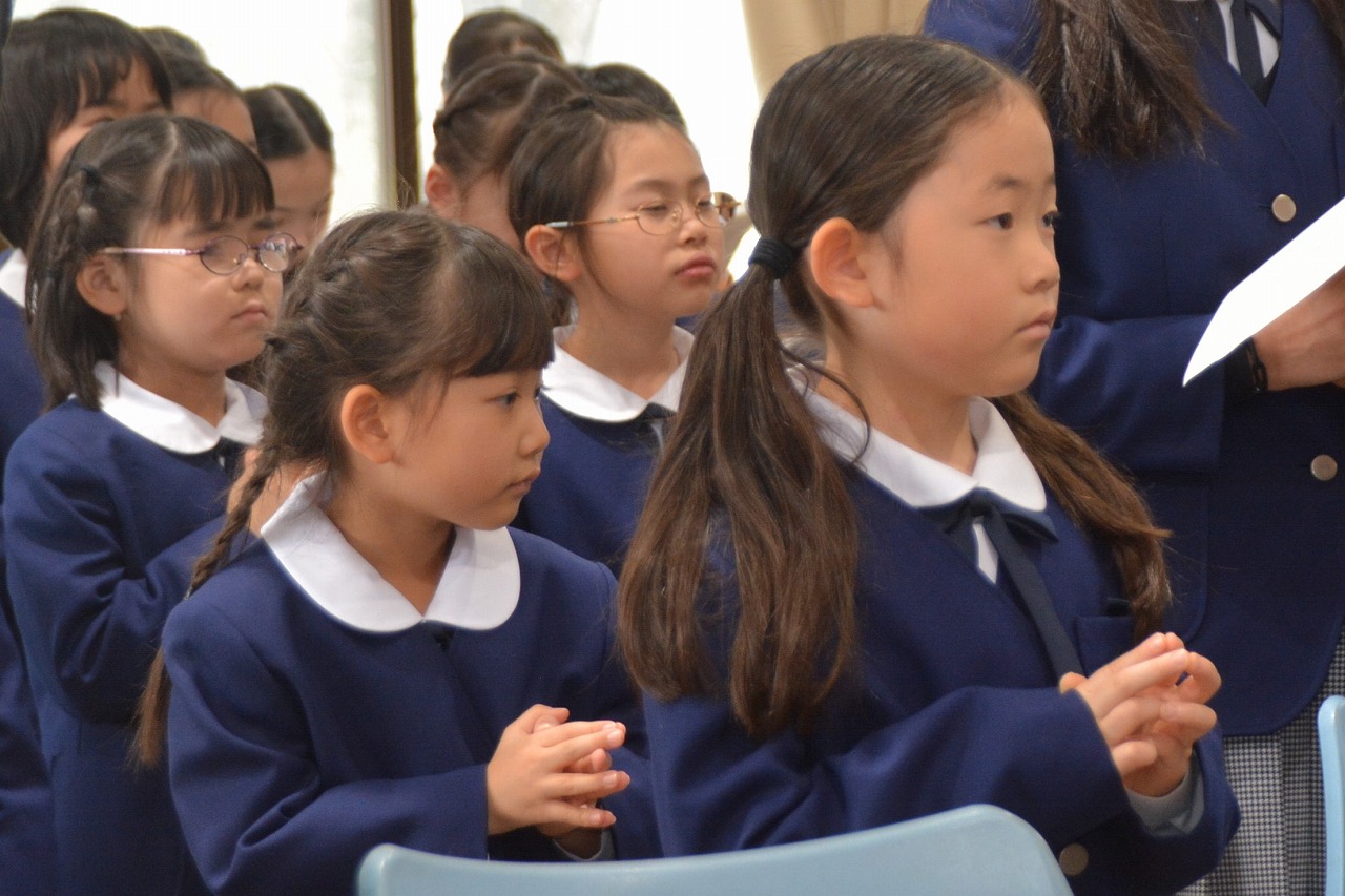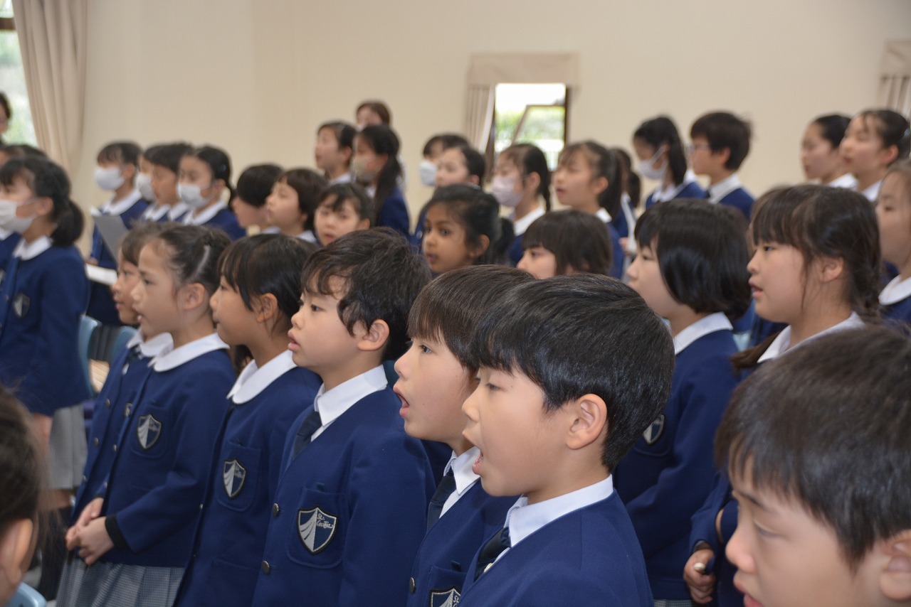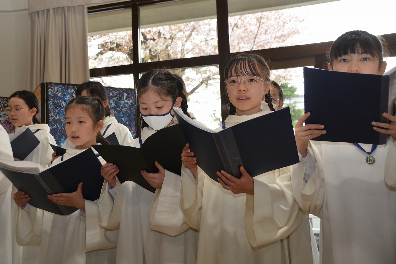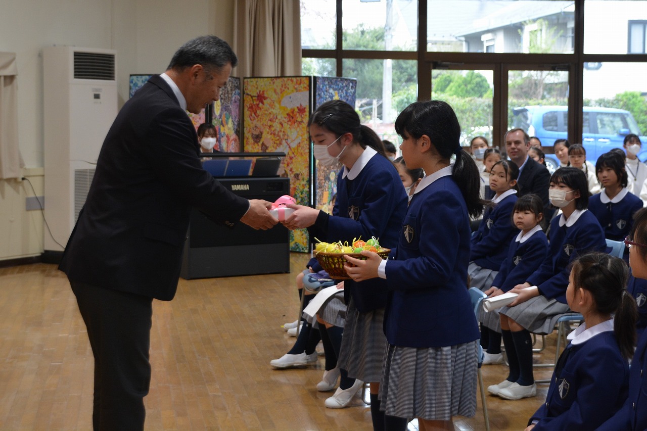 新1年生の入学をお祝いする入学感謝ミサに与りました。イエス・キリストの復活を喜ぶとともに、入学・進級した児童が希望のうちに1年間を過ごすことができるように祈りをささげました。1年生は初めてのミサなので、6年生にミサのことを教えてもらいながら、神父様のお話を聞きました。校長先生からは、かわいいイースターエッグと、うさぎの絵のついたクッキー、そして卵の形のカードもいただきました。