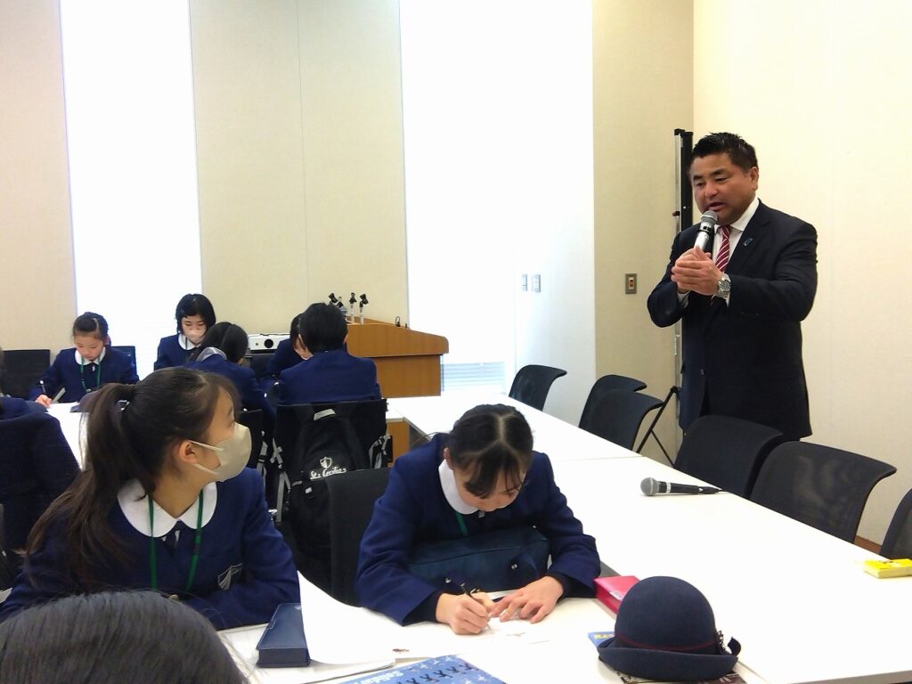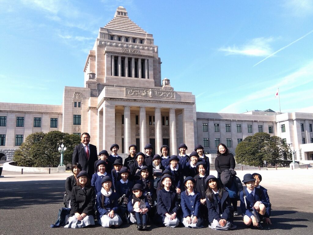 国会議事堂では、板垣退助・大隈重信・伊藤博文の銅像を熱心に眺めたり、社会科資料集の写真と同じ角度で国会議事堂を見上げたりと、社会科の授業で学習した知識を本物で確かめる姿が見られました。また、地元の政治家太ひでしさんから、政治家の仕事のことや国会議事堂の中のことなども丁寧に教えていただきました。「自分たちが人のために何ができるかを考える」という政治家としての姿勢は、子どもたちにも響き、嬉しい学びとなりました。