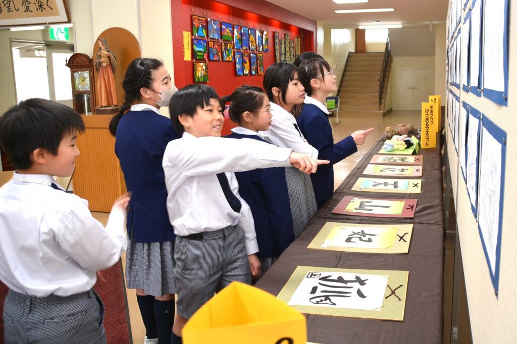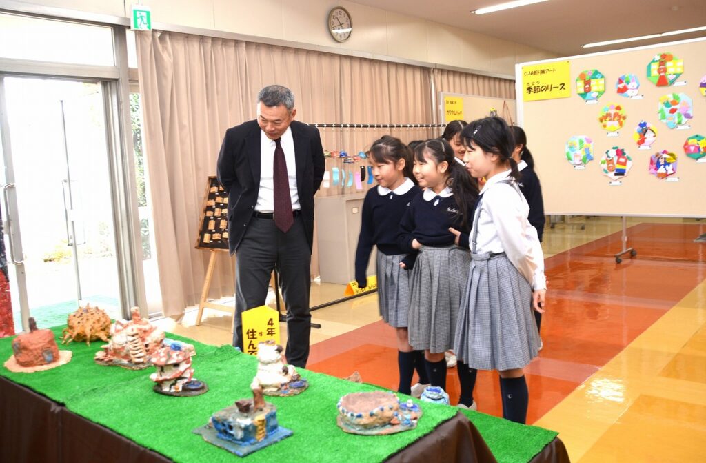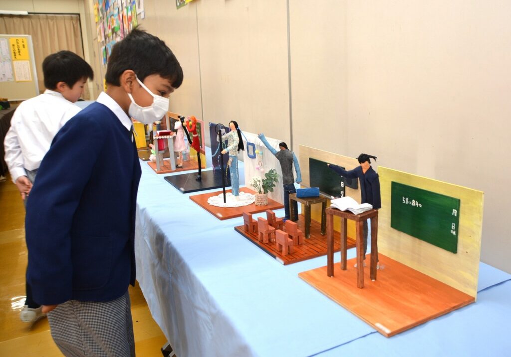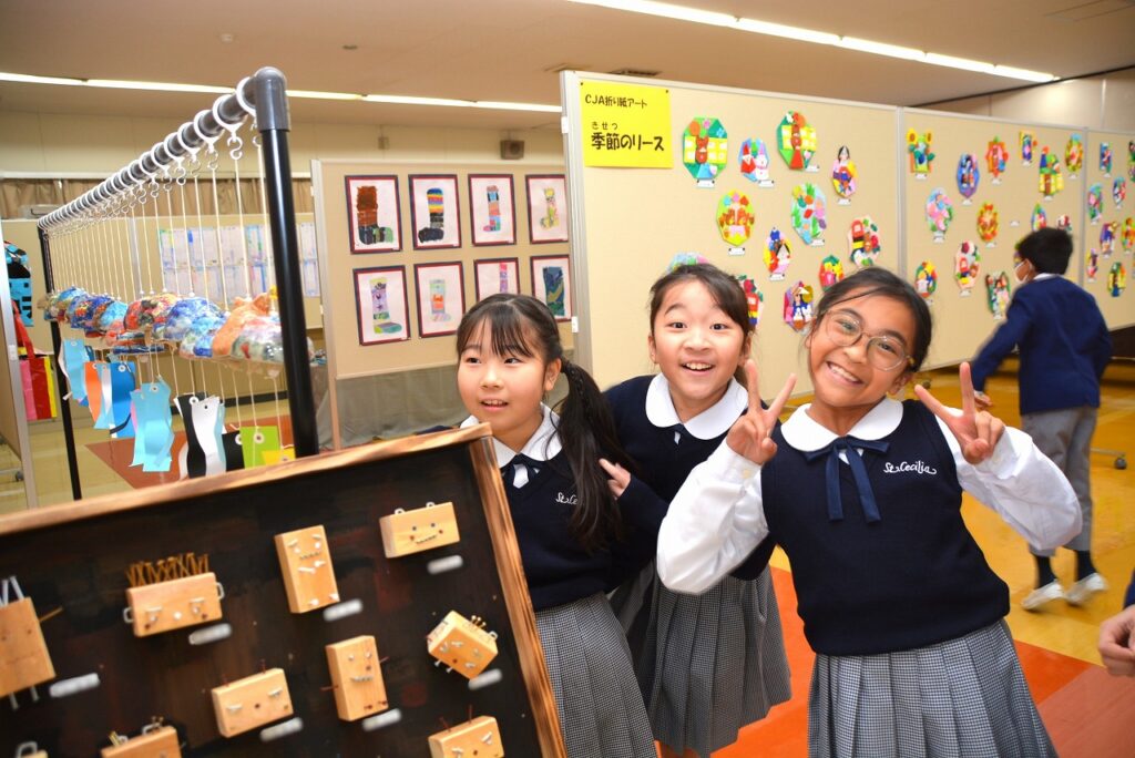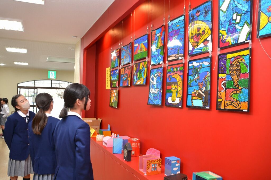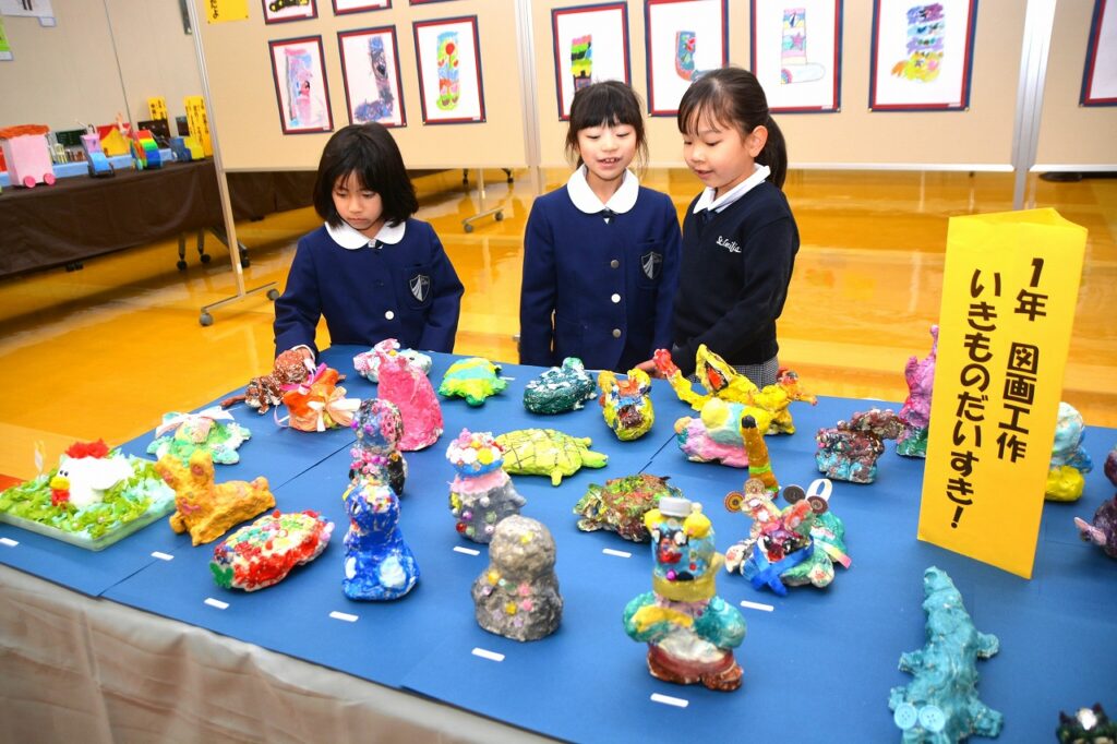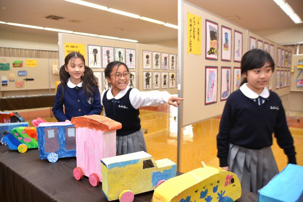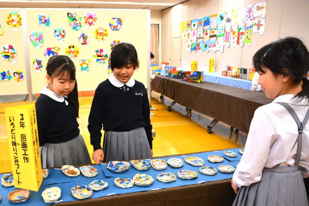 全校児童の作品を展示する「学習発表会 ~展示の部~」を行いました。1年間の学習成果として、図画工作の作品を中心に、国語や家庭科などの教科、クラブ活動やセシリアジュニアアカデミーでの作品も含めて展示しました。子どもたちは、お友だちの作品の良いところを見つけたり、上級生の素晴らしい作品に感心したり、自分の作品を見てもらって喜んだりと、作品を通して様々なコミュニケーションが生まれていました。