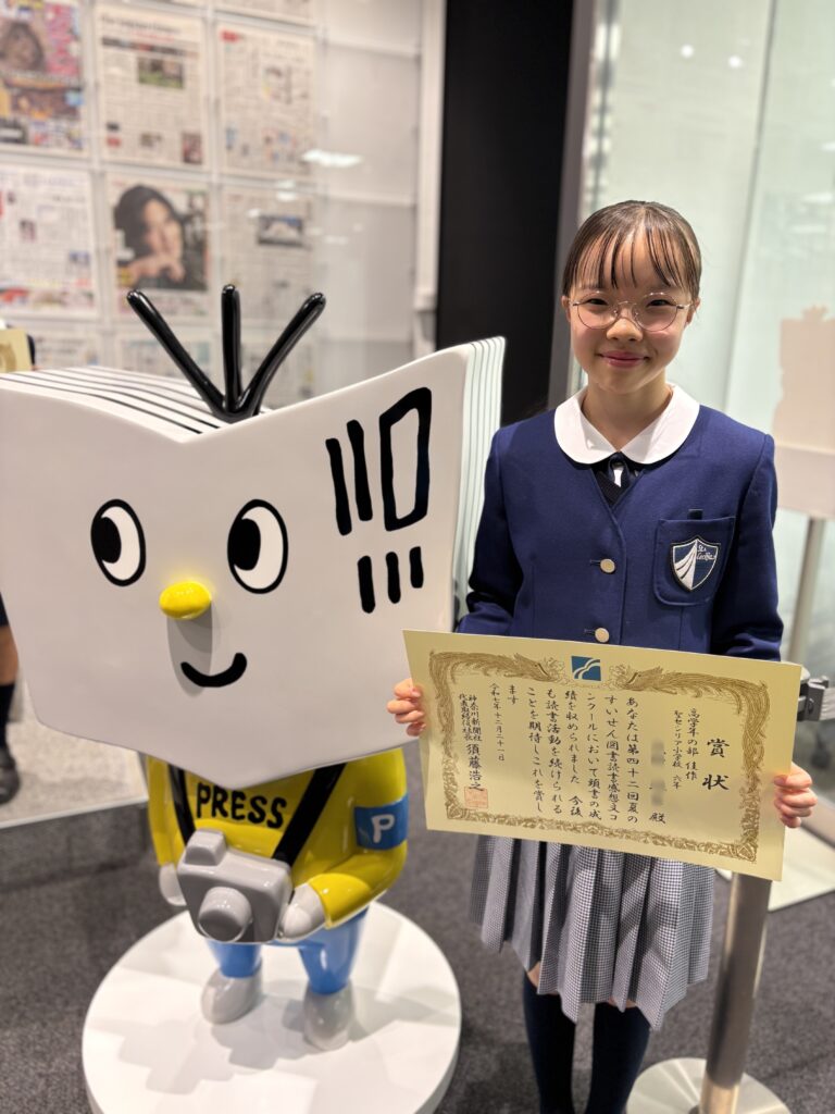 本校の6年生の感想文が、神奈川県第42回夏のすいせん図書読書感想コンクールの高学年部で佳作に入賞しました。その感想文では「ラベンダーとソプラノ」(額賀澪作、岩崎書店)を読み、自身が所属している聖歌隊での活動で感じたことを書きました。