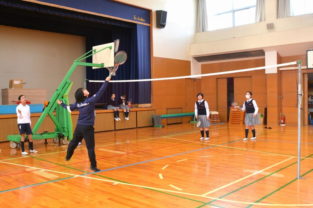 バスケットボールクラブ・バドミントンクラブ・バレーボールクラブの6年生たちが、卒業を前に、教員と対決を行いました。どの競技もなかなかの接戦でしたが、6年生たちは、それまでのクラブ活動での成果を大いに発揮して、よい笑顔を見せてくれました。