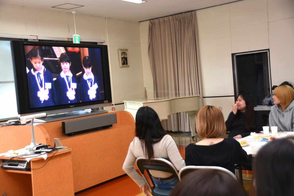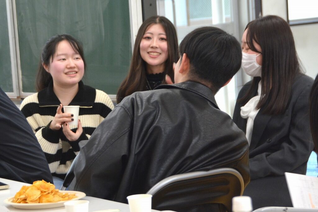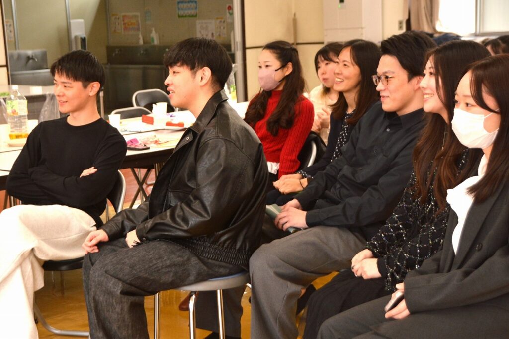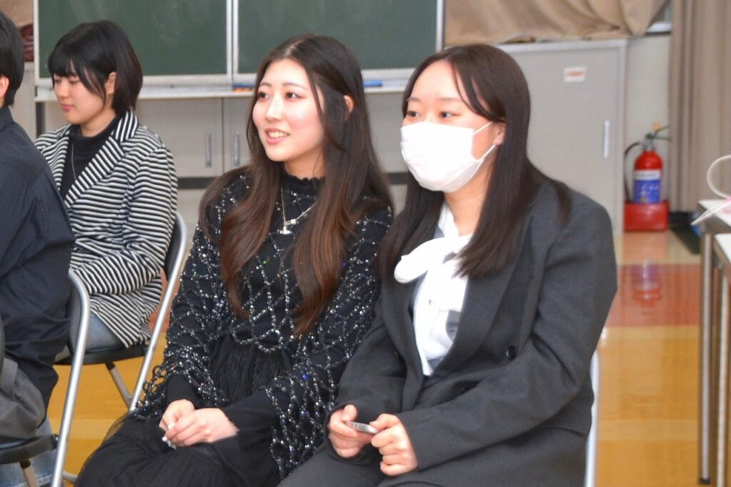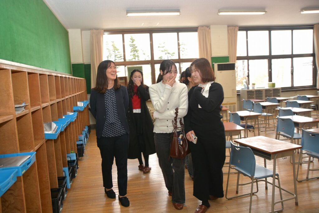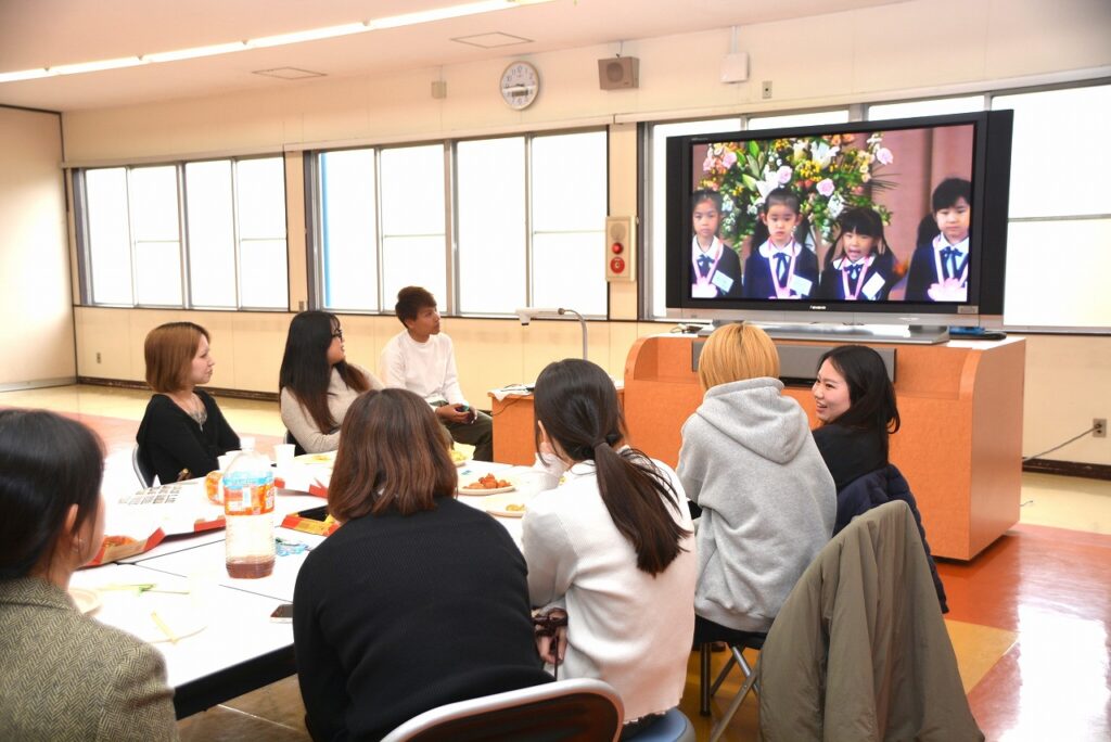 大学を卒業し、春から社会人になる人、春からも専門学校・大学・大学院で学ぶ人など、それぞれの道を進んでいる卒業生たちは、久しぶりに会う友だちや先生との話に盛り上がったり、懐かしい教室の椅子に座ってみたり、小さかった頃の写真や動画を見たりして、小学校の頃と変わらない楽しいひとときを過ごしていました。