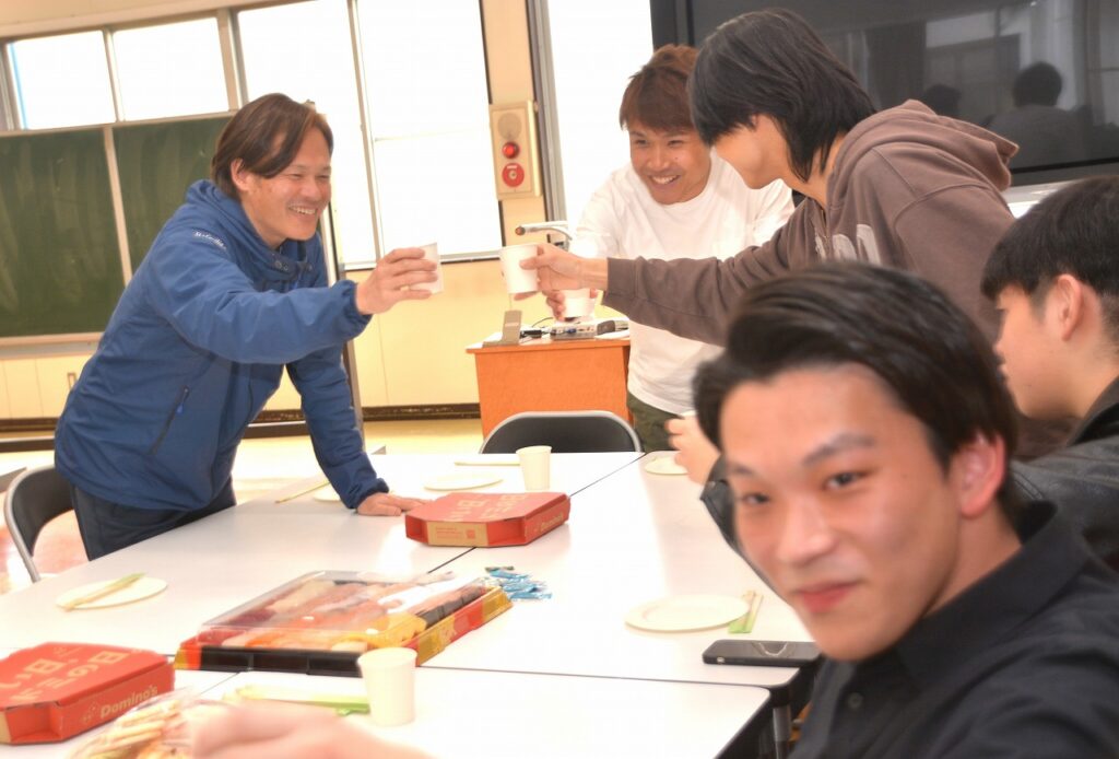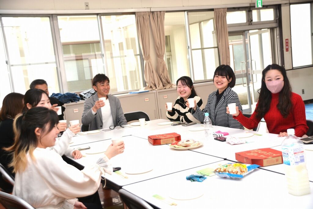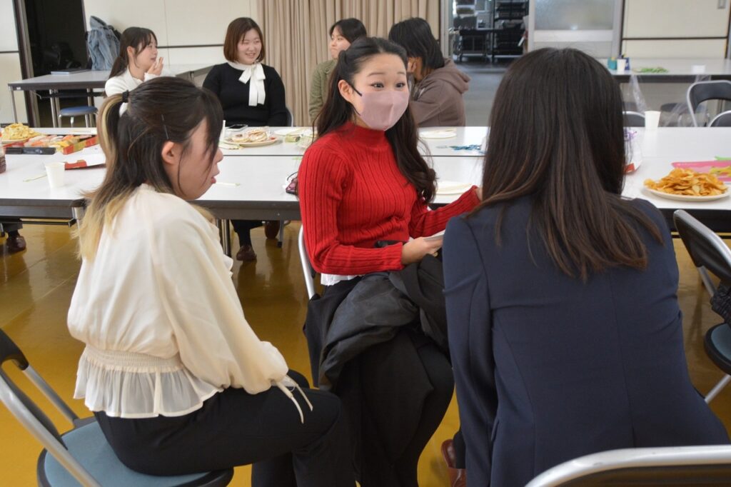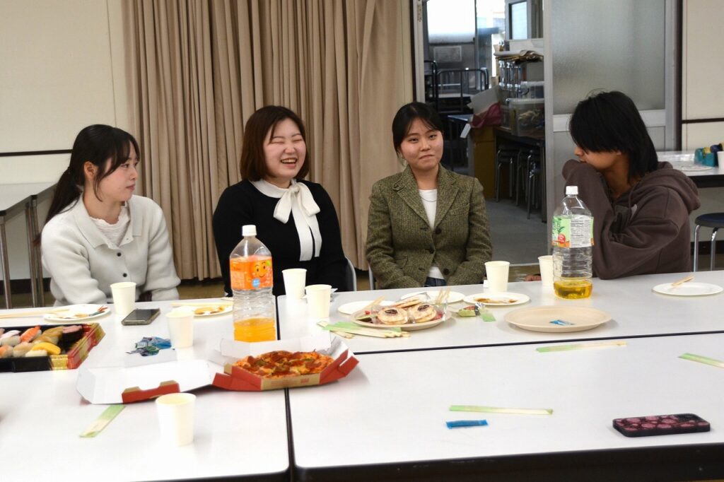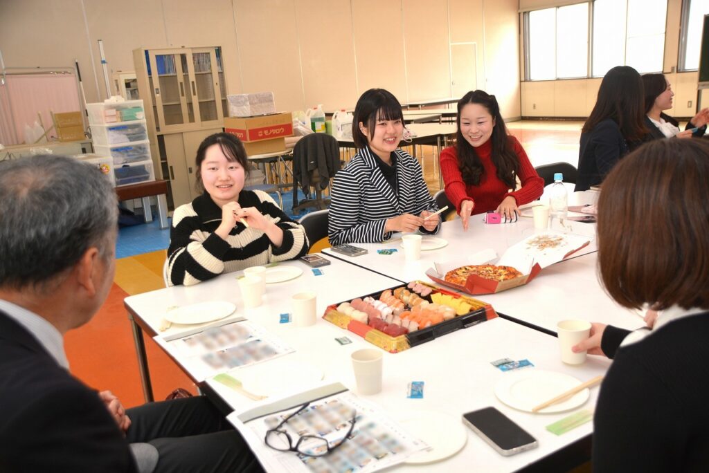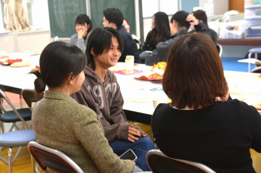 大学を卒業し、春から社会人になる人、春からも専門学校・大学・大学院で学ぶ人など、それぞれの道を進んでいる卒業生たちは、久しぶりに会う友だちや先生との話に盛り上がったり、懐かしい教室の椅子に座ってみたり、小さかった頃の写真や動画を見たりして、小学校の頃と変わらない楽しいひとときを過ごしていました。