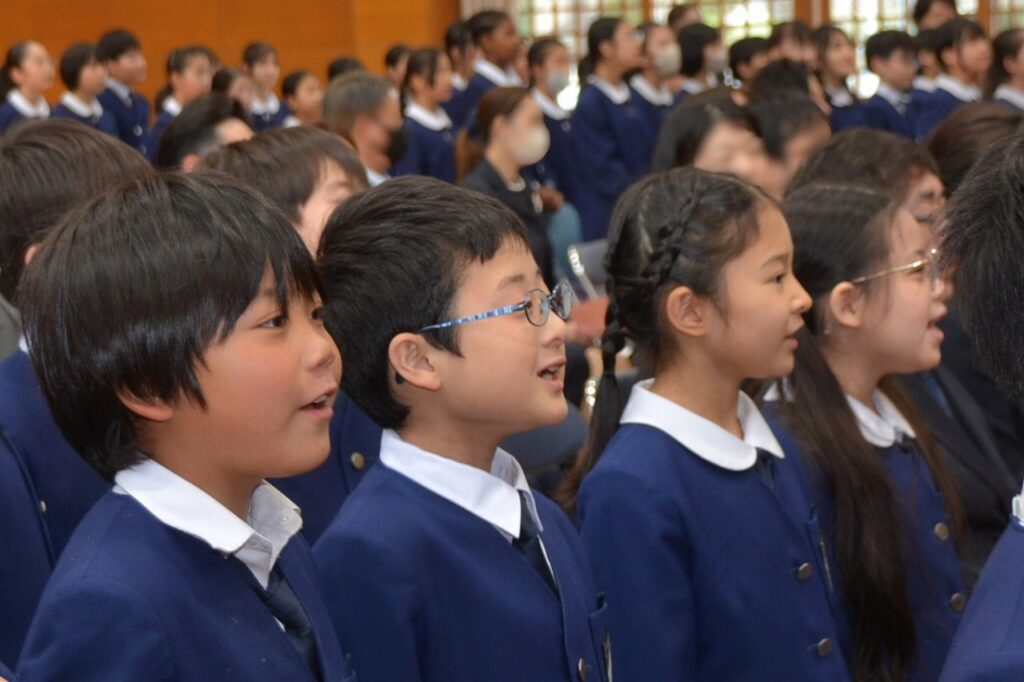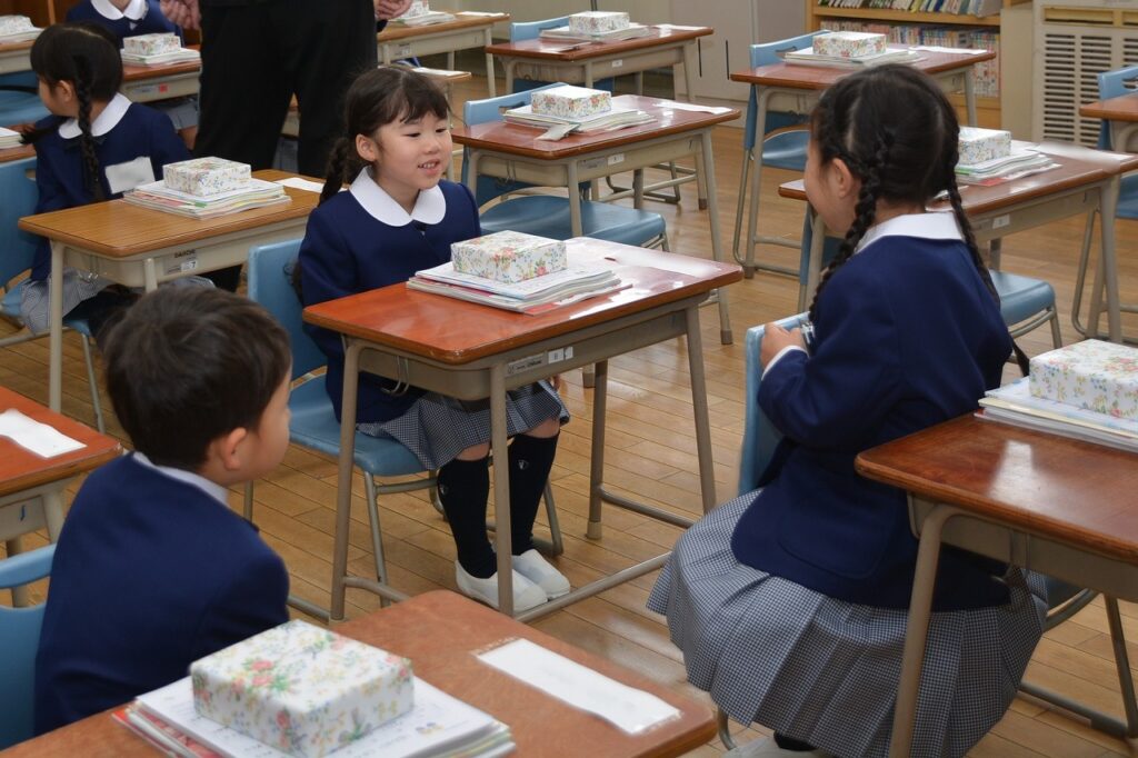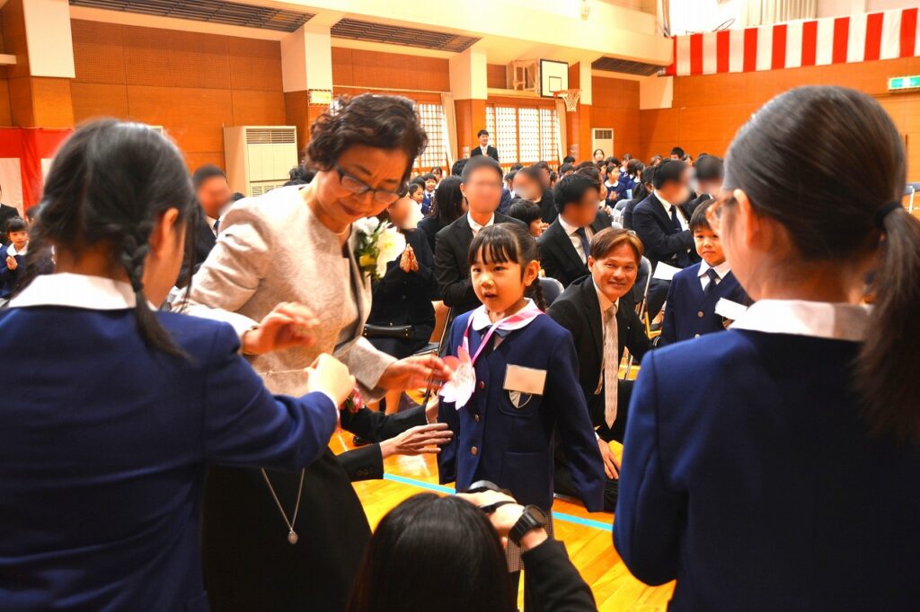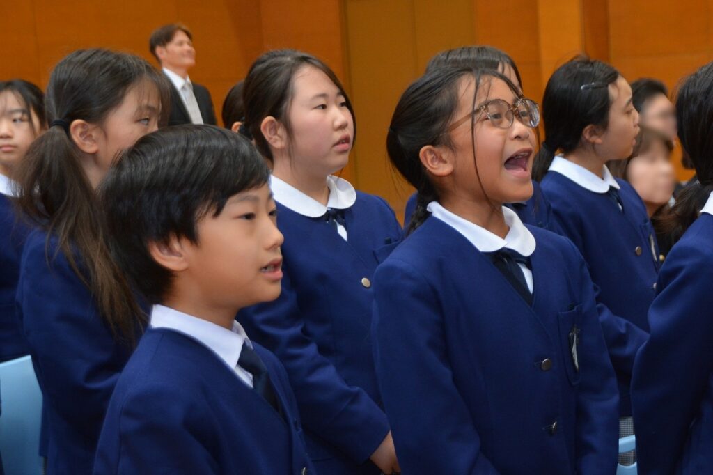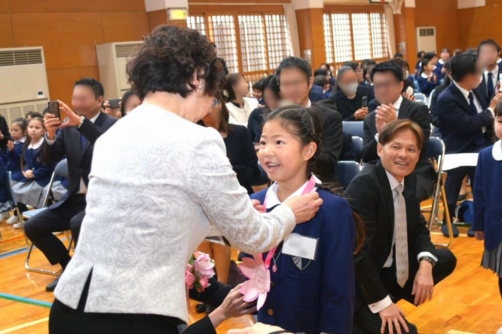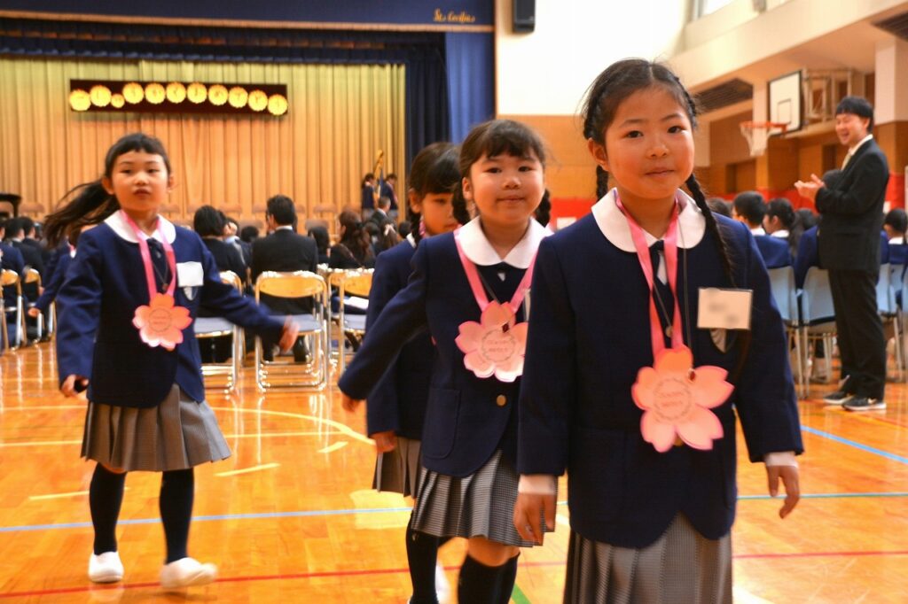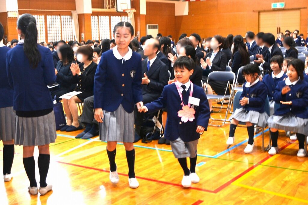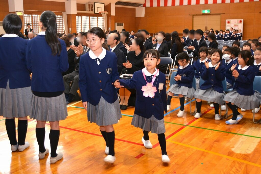 2026年度の入学式が行われ、かわいい新1年生をお迎えしました。6年生が玄関でお出迎えし、ひとりひとり手をつないで教室に連れていってくれました。お兄さんお姉さんにランドセルをしまうお手伝いをしてもらったり、机の場所を教えてもらったりすると、小さな子どもたちは、すっかり緊張もほぐれていきました。入学式では、校長先生から手作りのレイやおメダイを首にかけていただいたり、壇上でお名前を呼んでいただいたり、初めてのお祈りをしたりしました。在校生たちも、4年生の歓迎の言葉や、2~6年生の聖歌で、新1年生のご入学をお祝いしました。