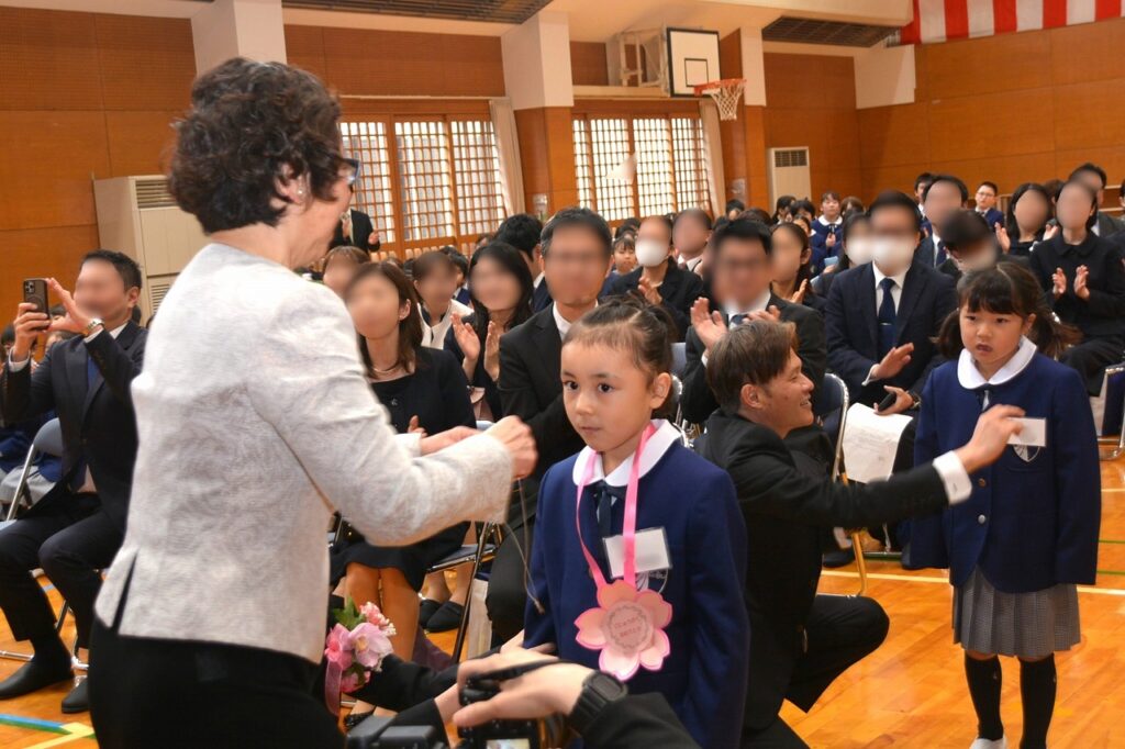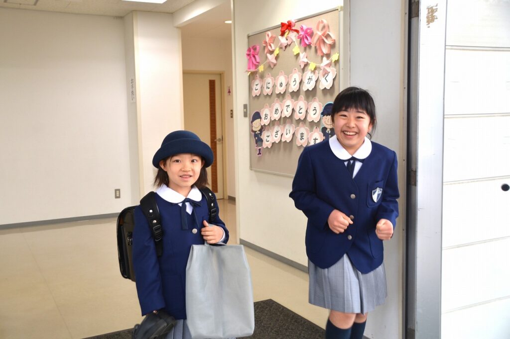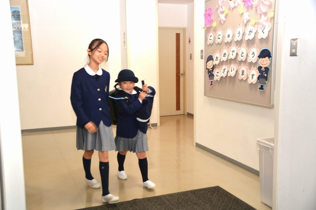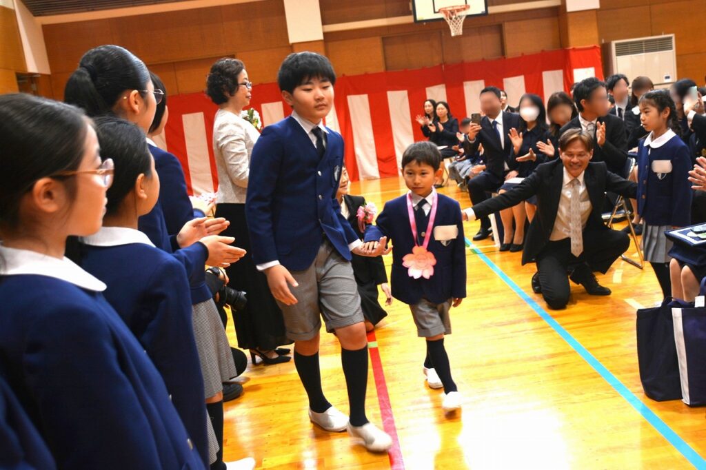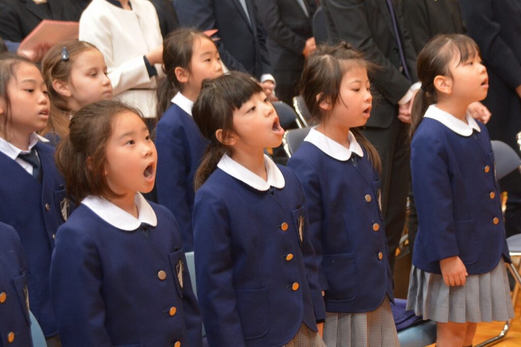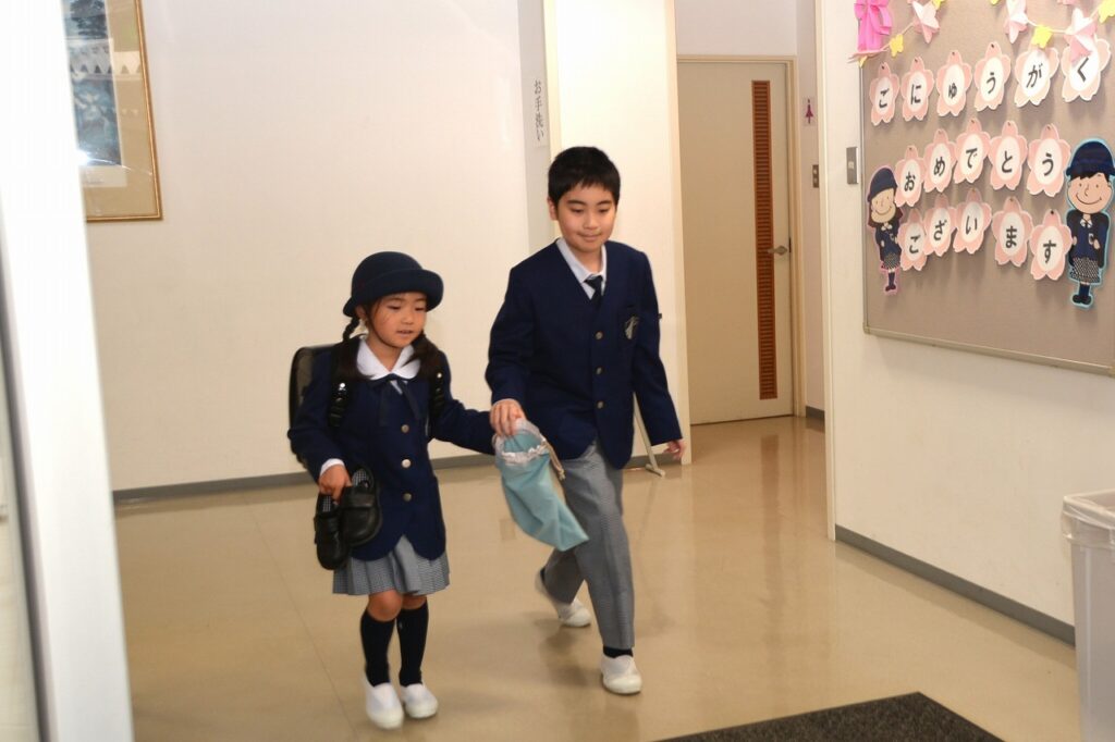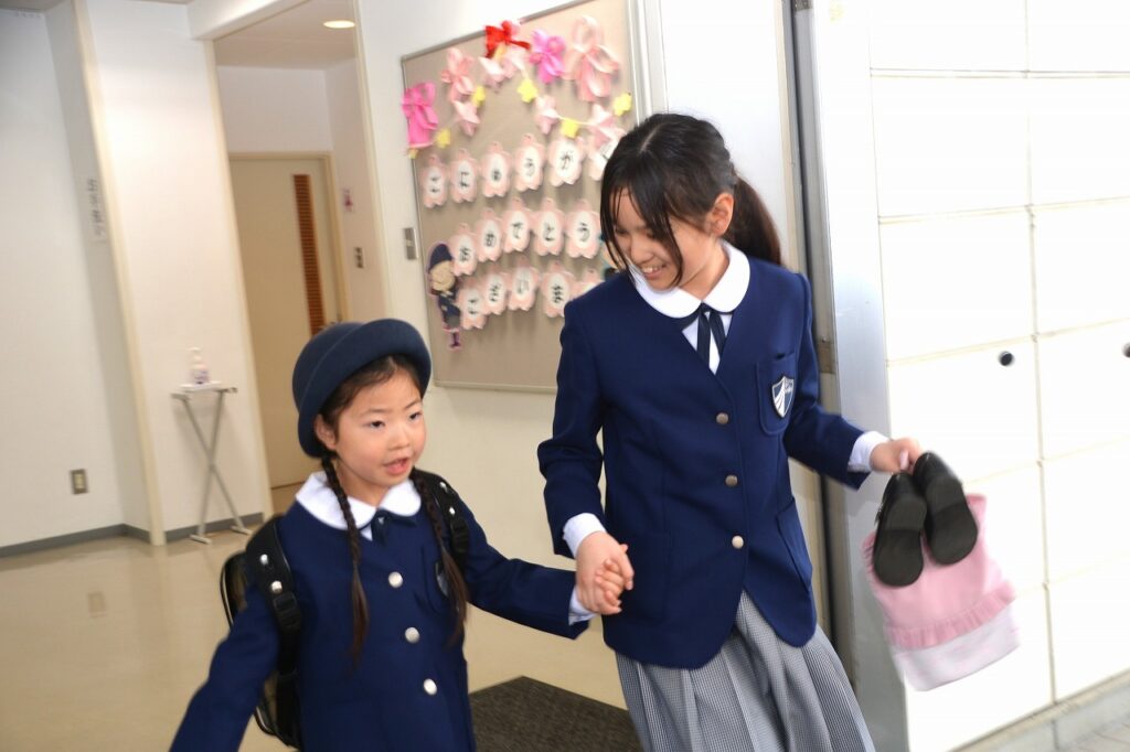 2026年度の入学式が行われ、かわいい新1年生をお迎えしました。6年生が玄関でお出迎えし、ひとりひとり手をつないで教室に連れていってくれました。お兄さんお姉さんにランドセルをしまうお手伝いをしてもらったり、机の場所を教えてもらったりすると、小さな子どもたちは、すっかり緊張もほぐれていきました。入学式では、校長先生から手作りのレイやおメダイを首にかけていただいたり、壇上でお名前を呼んでいただいたり、初めてのお祈りをしたりしました。在校生たちも、4年生の歓迎の言葉や、2~6年生の聖歌で、新1年生のご入学をお祝いしました。