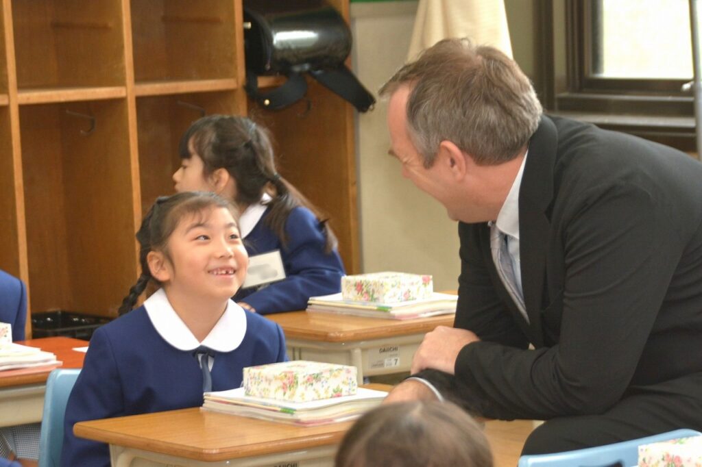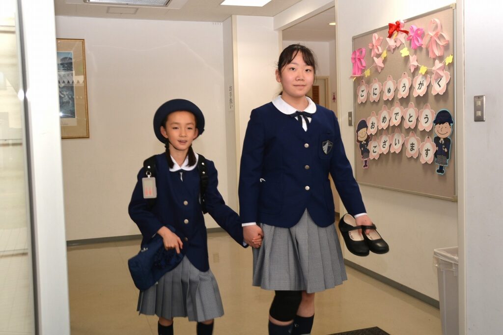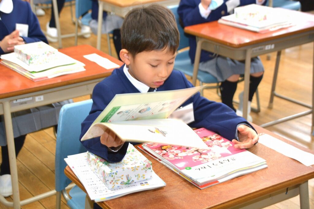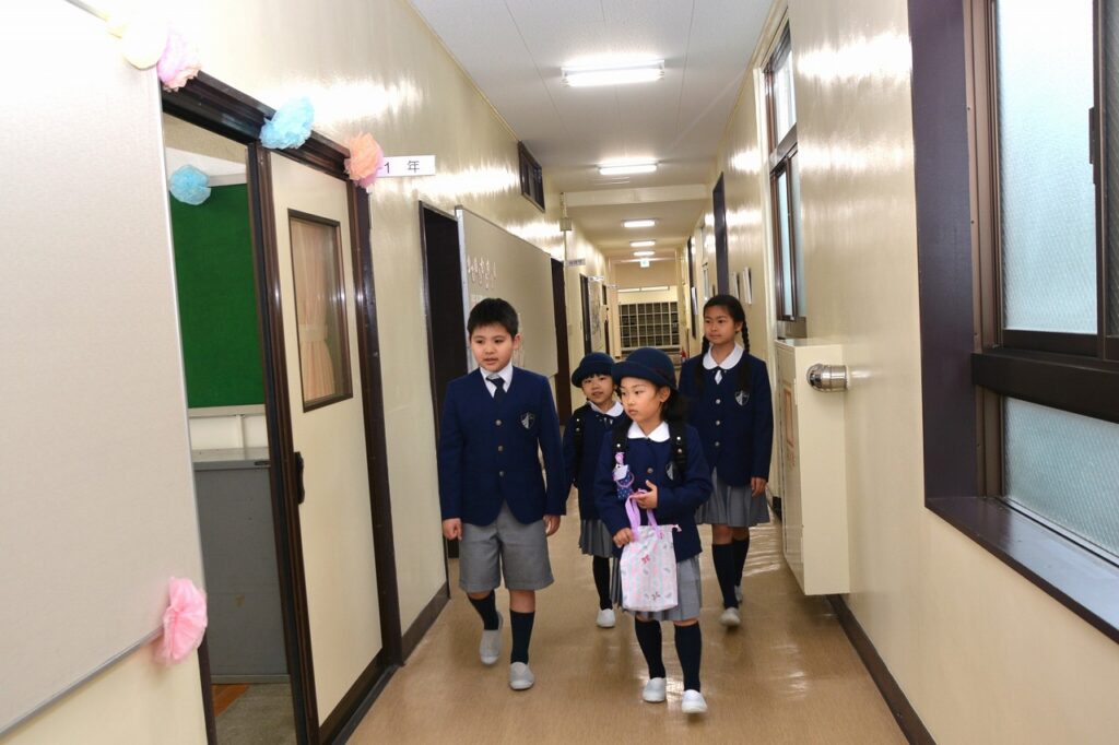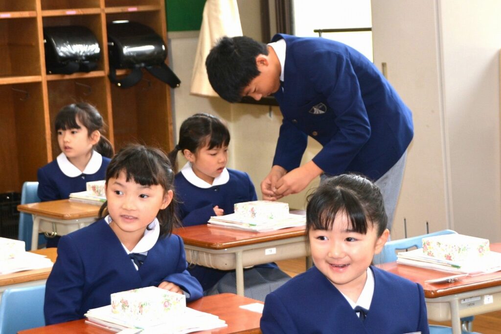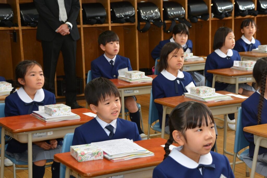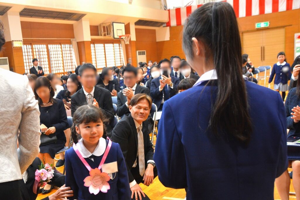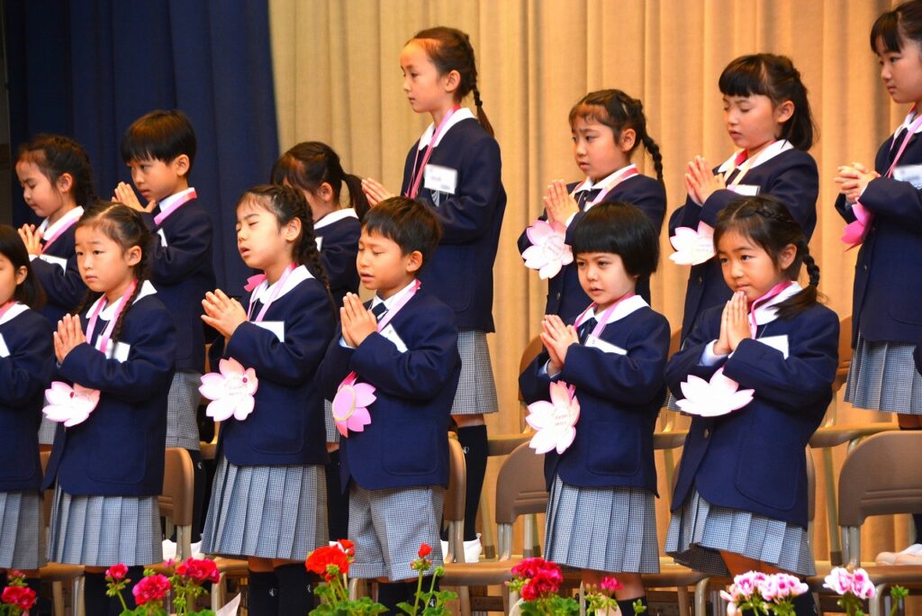 2026年度の入学式が行われ、かわいい新1年生をお迎えしました。6年生が玄関でお出迎えし、ひとりひとり手をつないで教室に連れていってくれました。お兄さんお姉さんにランドセルをしまうお手伝いをしてもらったり、机の場所を教えてもらったりすると、小さな子どもたちは、すっかり緊張もほぐれていきました。入学式では、校長先生から手作りのレイやおメダイを首にかけていただいたり、壇上でお名前を呼んでいただいたり、初めてのお祈りをしたりしました。在校生たちも、4年生の歓迎の言葉や、2~6年生の聖歌で、新1年生のご入学をお祝いしました。